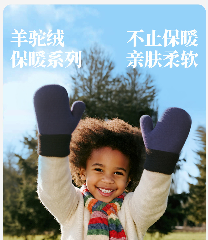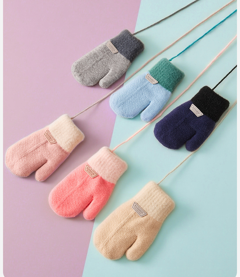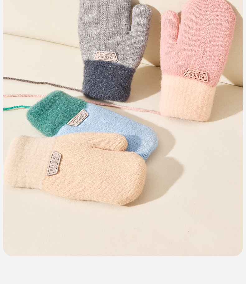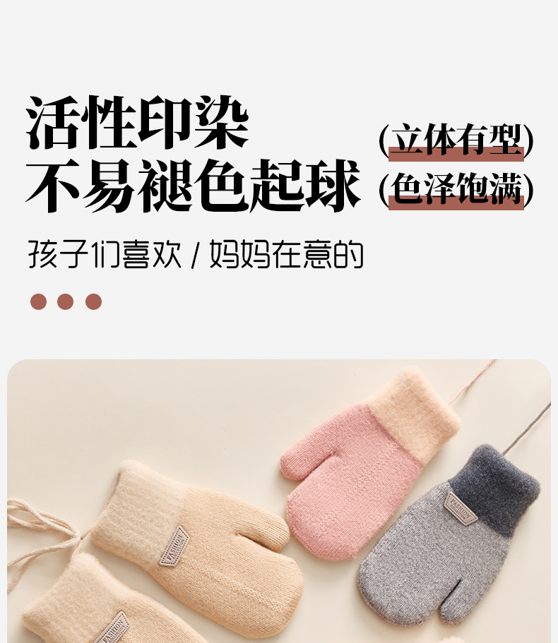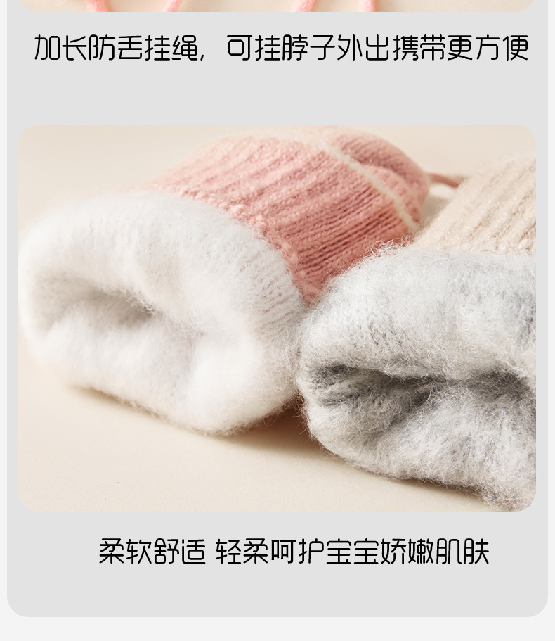 【羊驼绒柔软保暖❗️挡风透气不冷宝宝手】儿童手套秋冬加绒加厚小孩挂脖手套可爱宝宝户外防寒保暖针织手套。hb