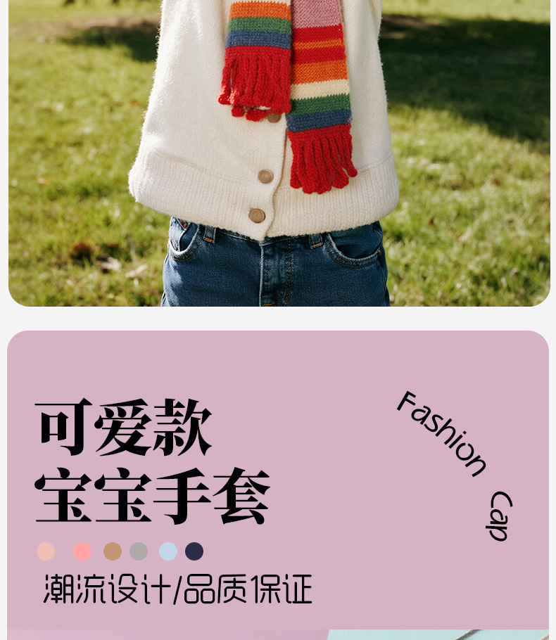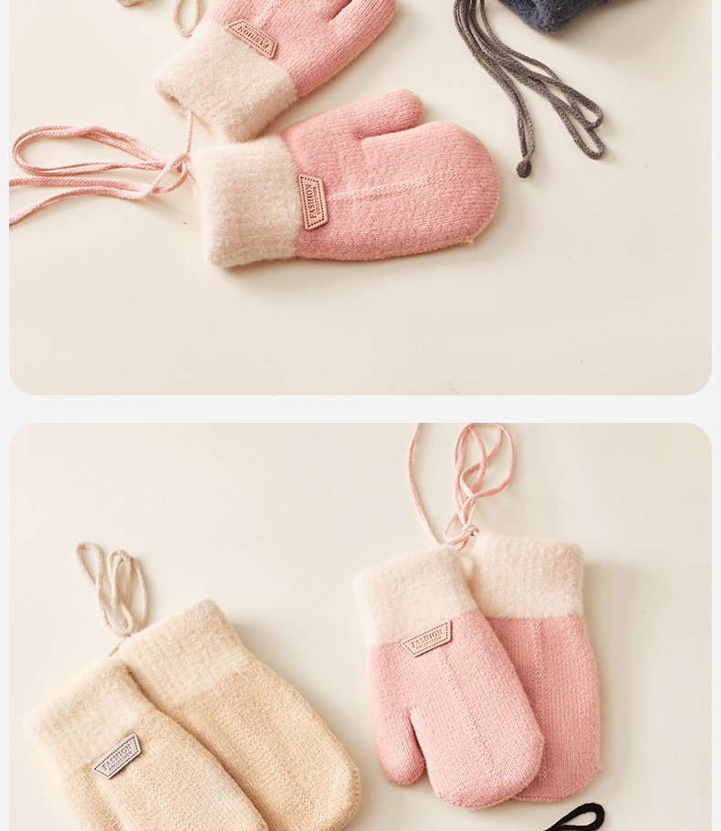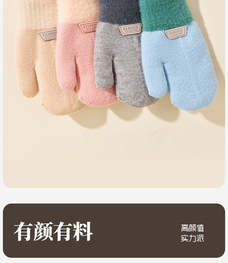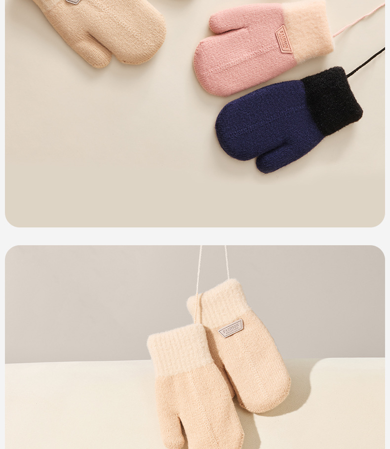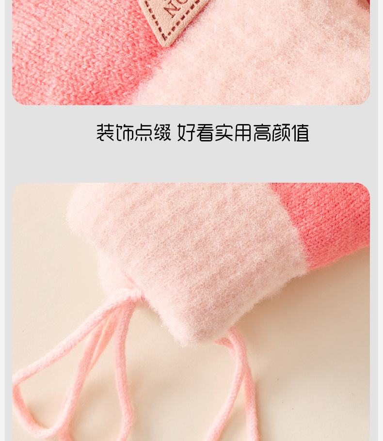 【羊驼绒柔软保暖❗️挡风透气不冷宝宝手】儿童手套秋冬加绒加厚小孩挂脖手套可爱宝宝户外防寒保暖针织手套。hb