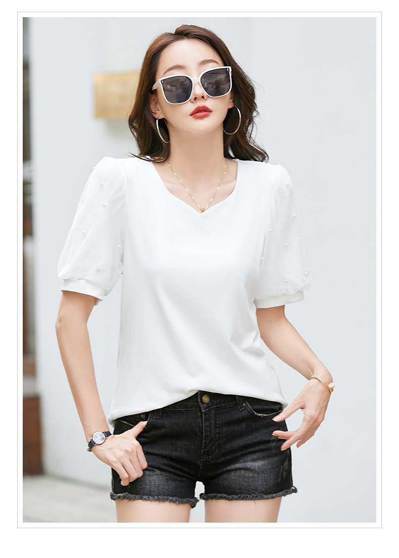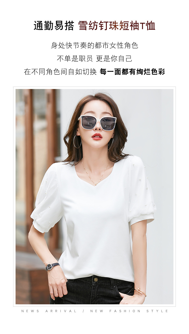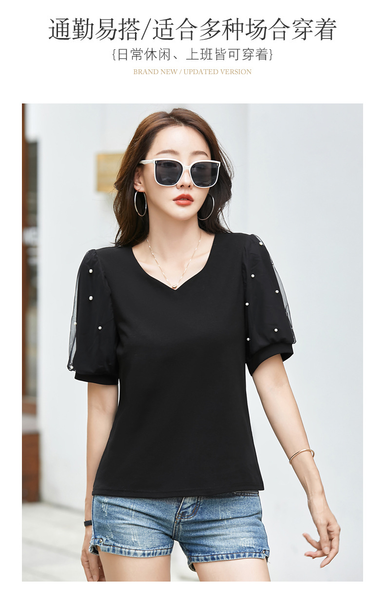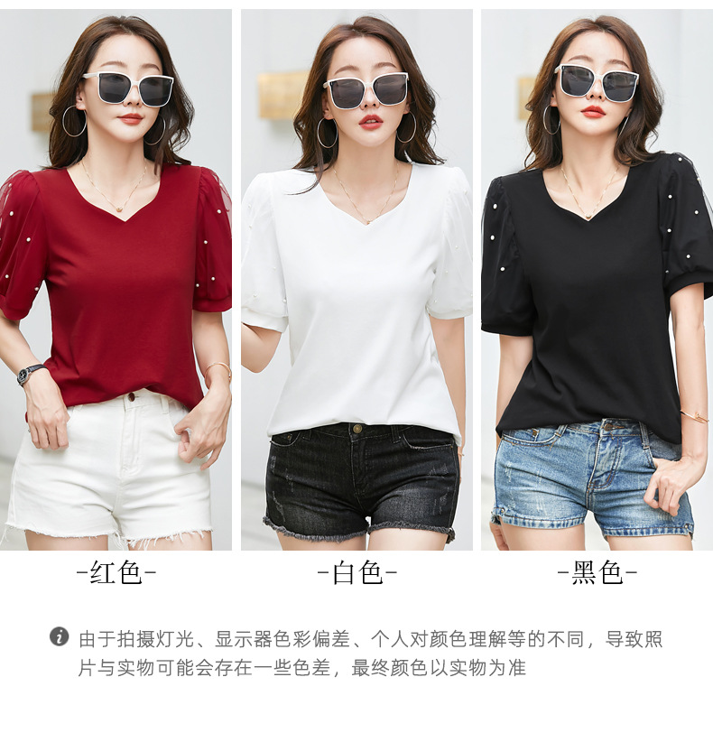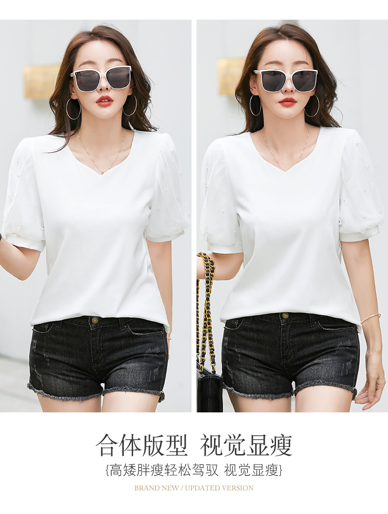 雀说新款夏季短袖纯色v领t恤宽松外穿时尚女AL82327