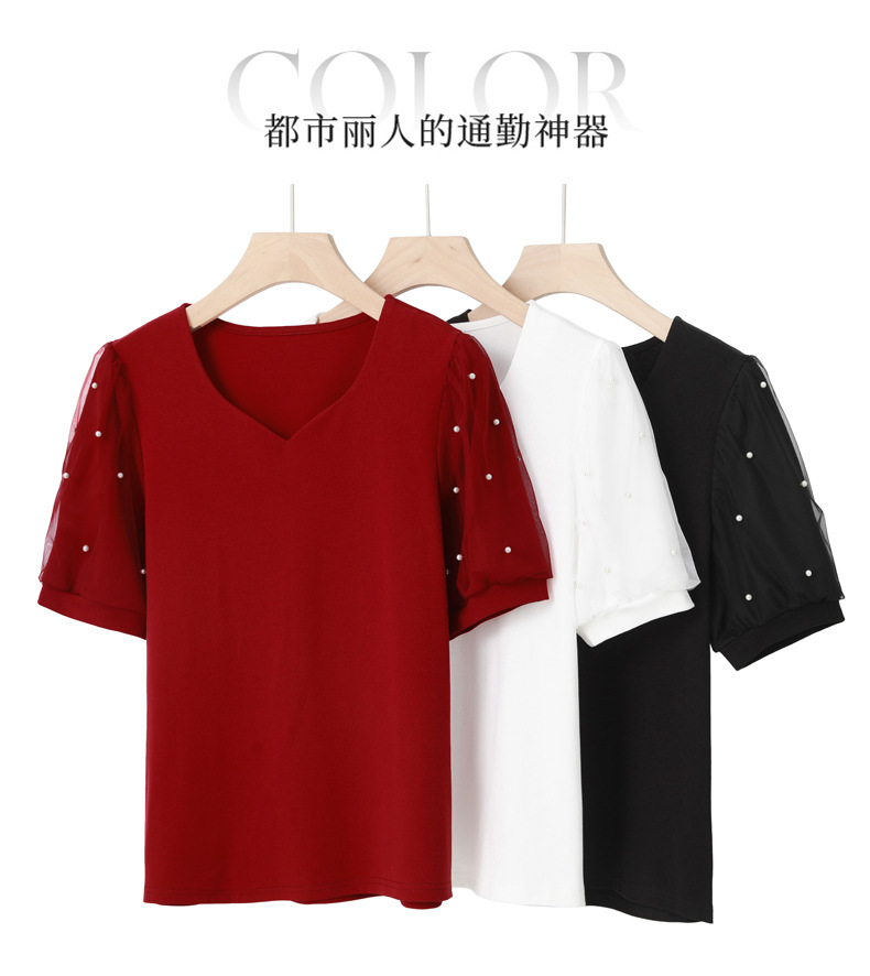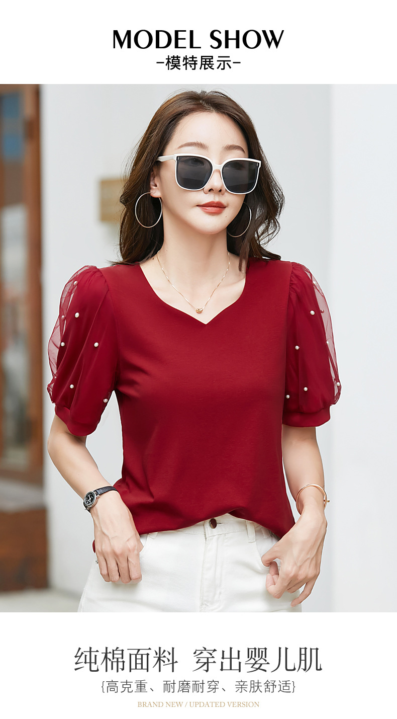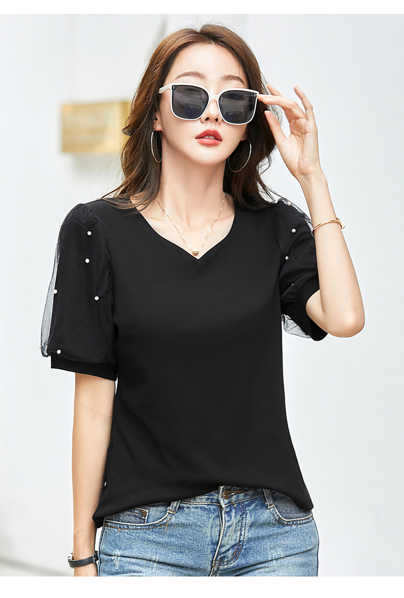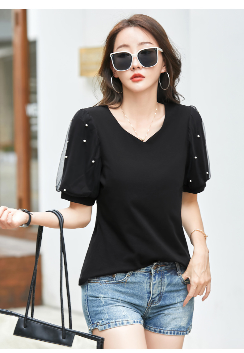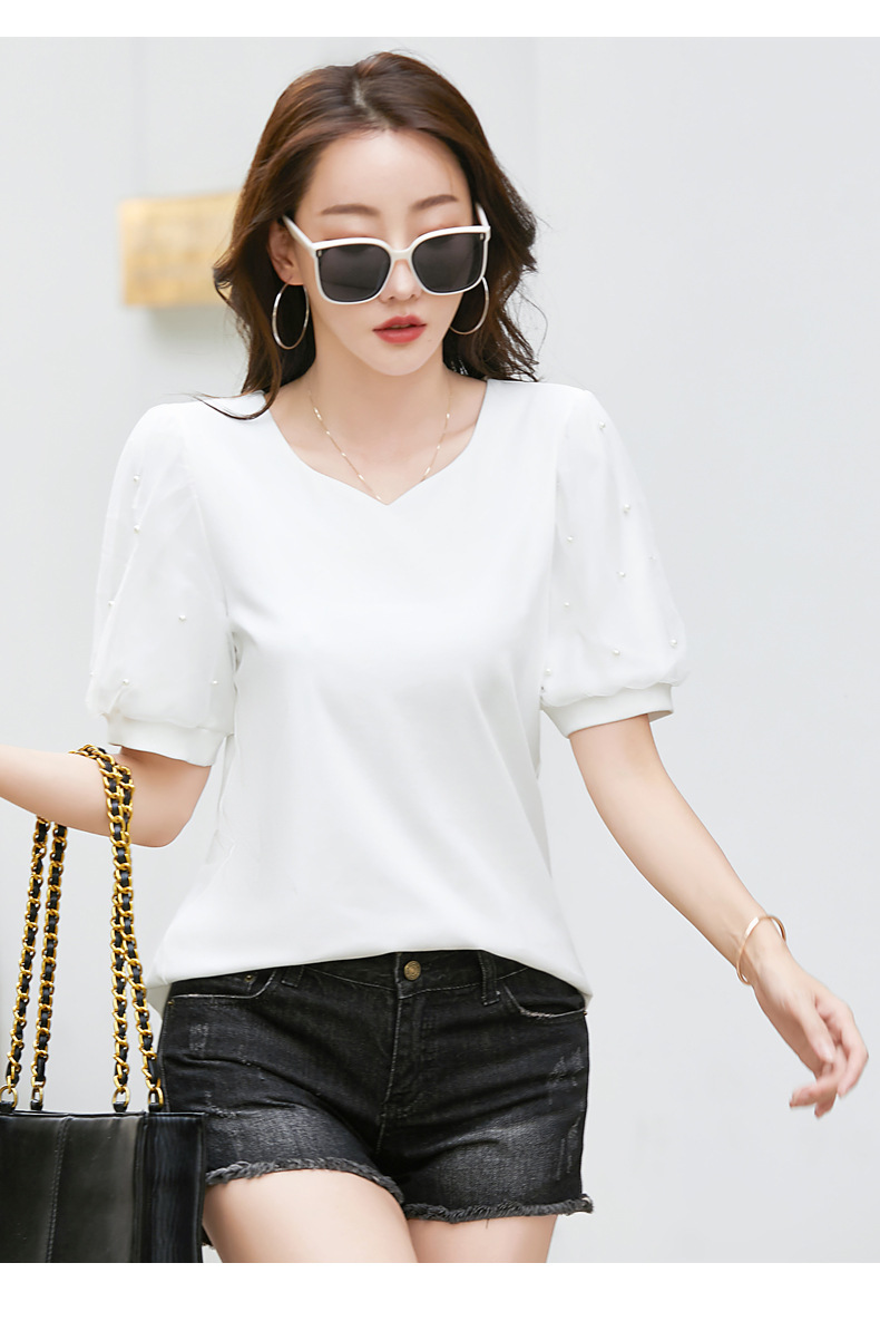 雀说新款夏季短袖纯色v领t恤宽松外穿时尚女AL82327