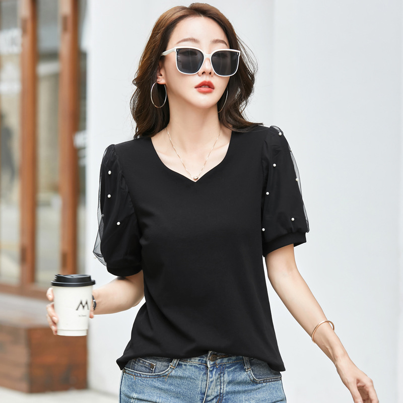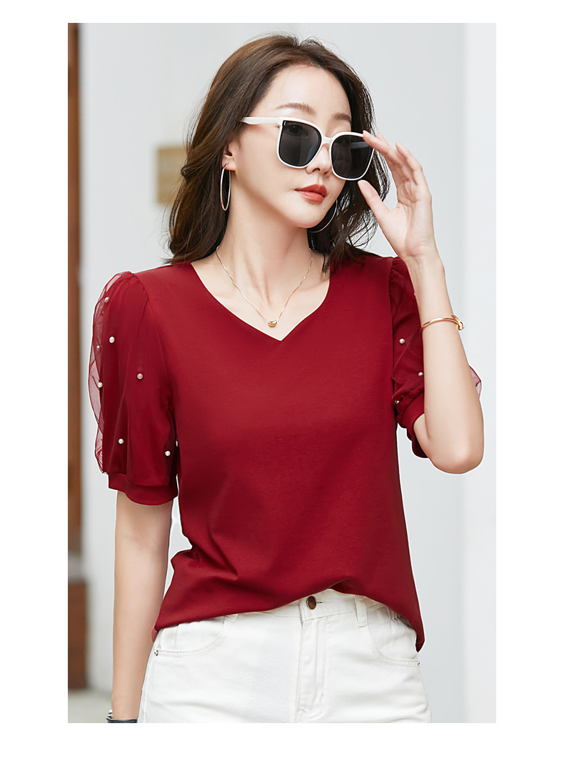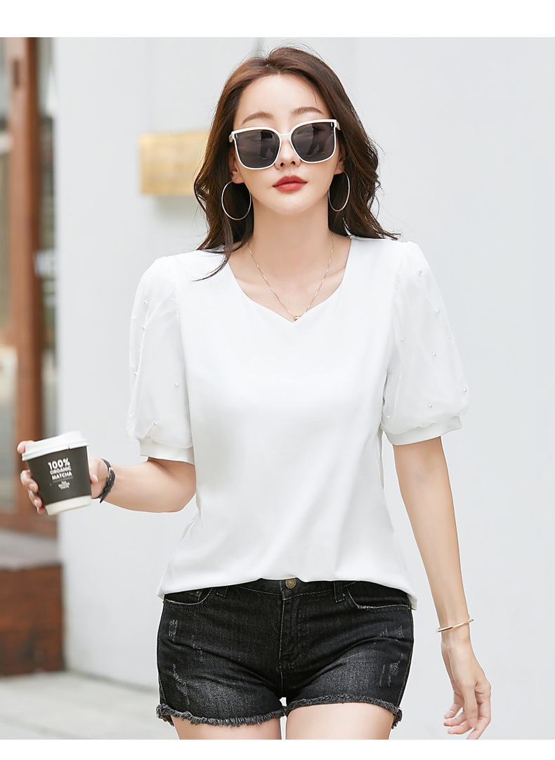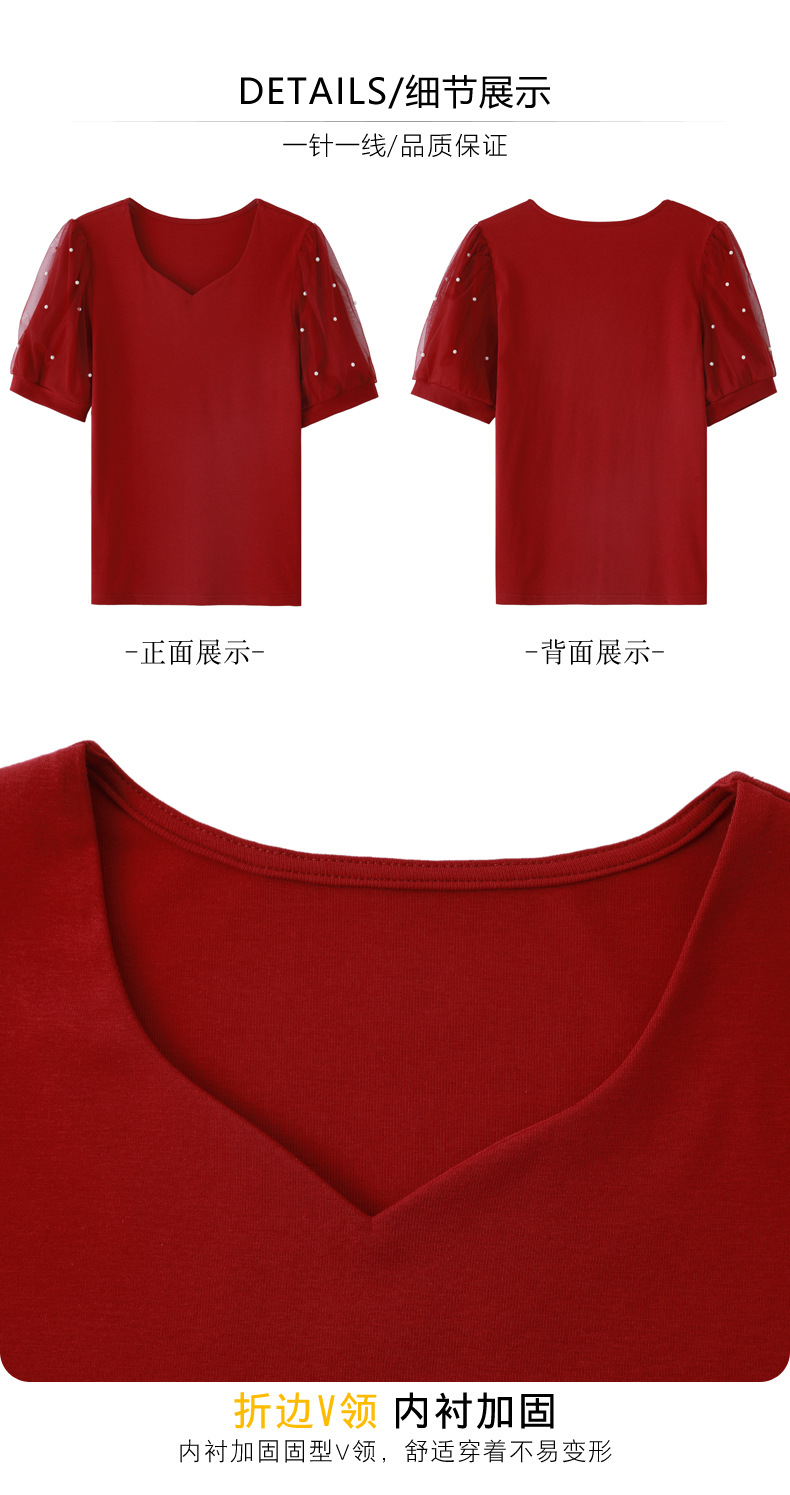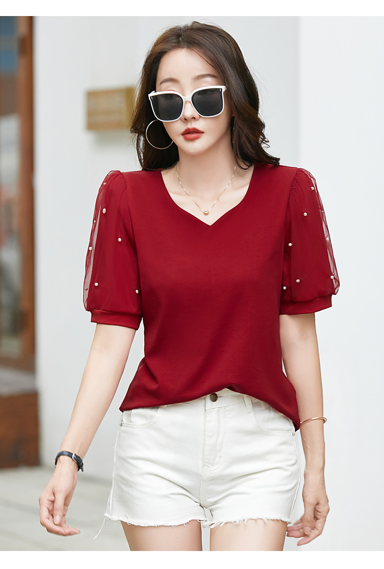 雀说新款夏季短袖纯色v领t恤宽松外穿时尚女AL82327