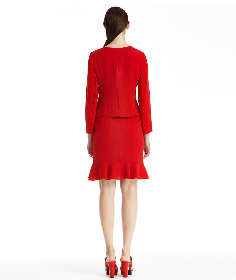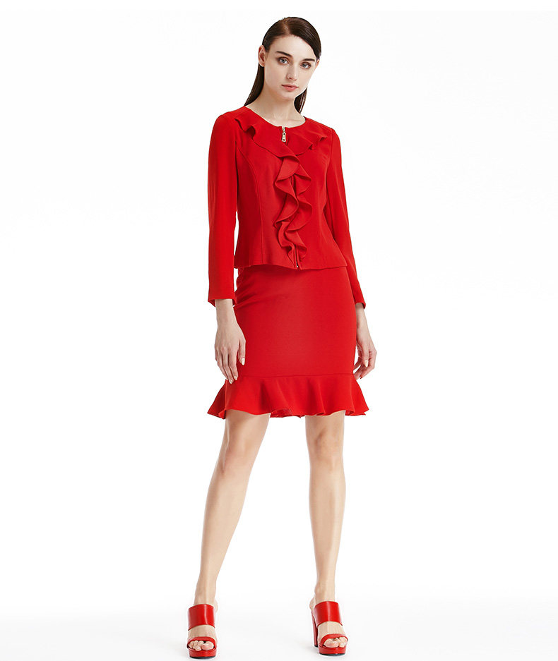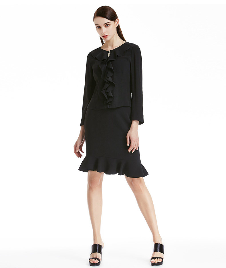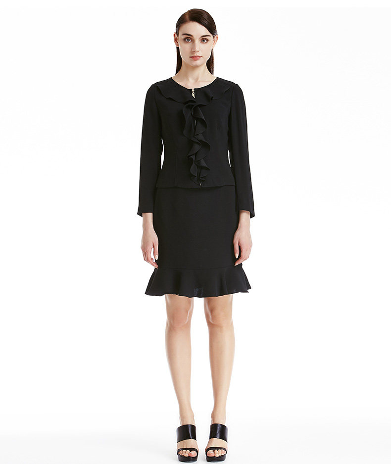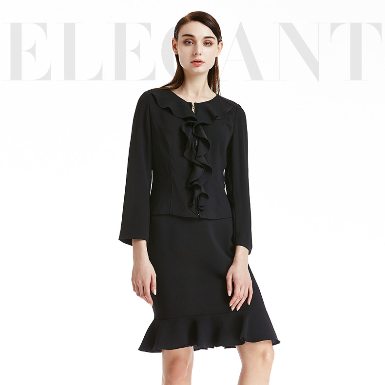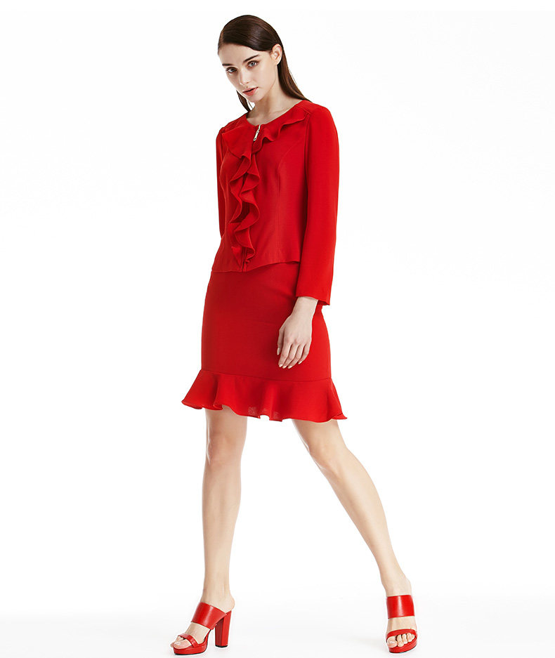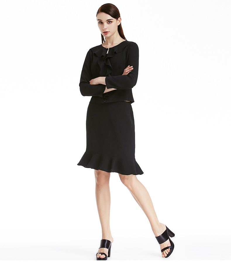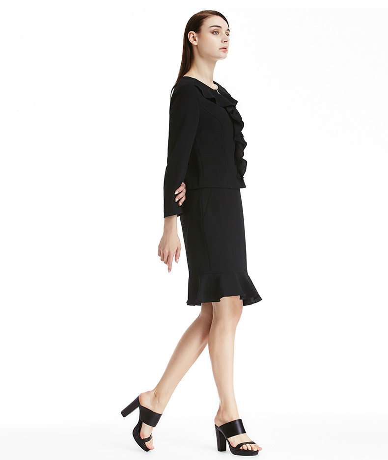 EITIE爱特爱春夏新款简约高腰百搭纯色荷叶边半身裙女包臀裙5306010