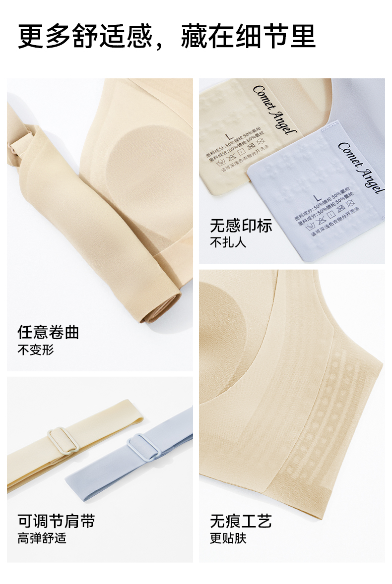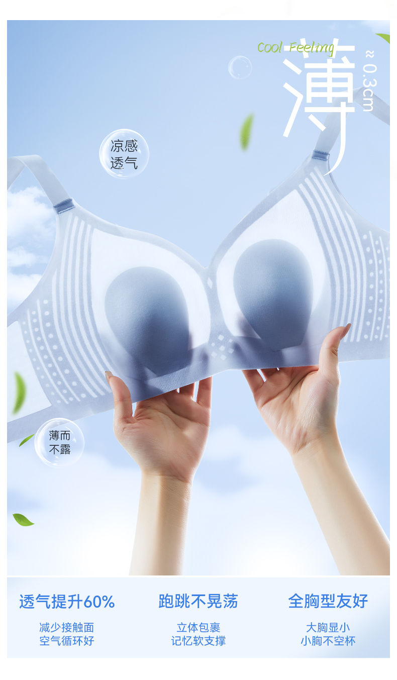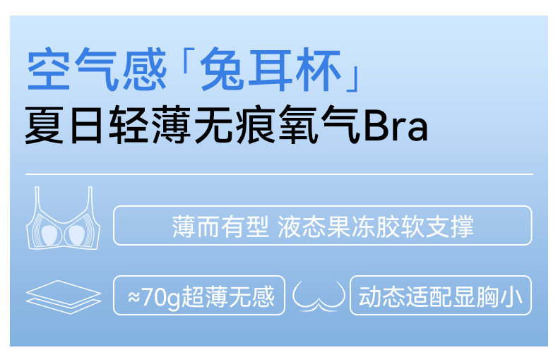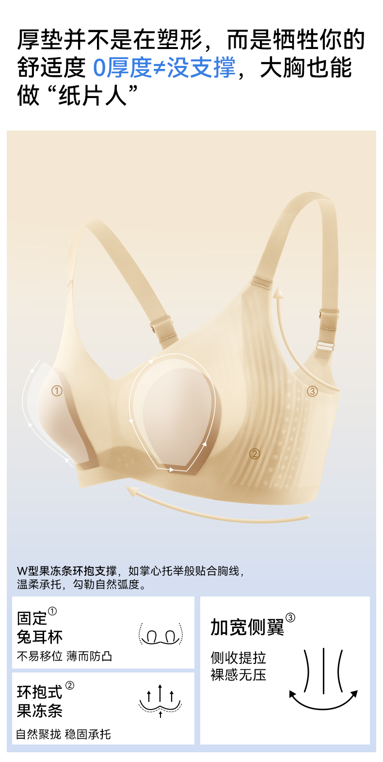 彗星天使凉感果冻速干兔耳杯无钢圈大胸显小无痕加宽固杯不跑杯内衣2881#