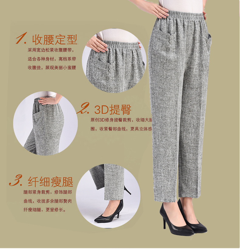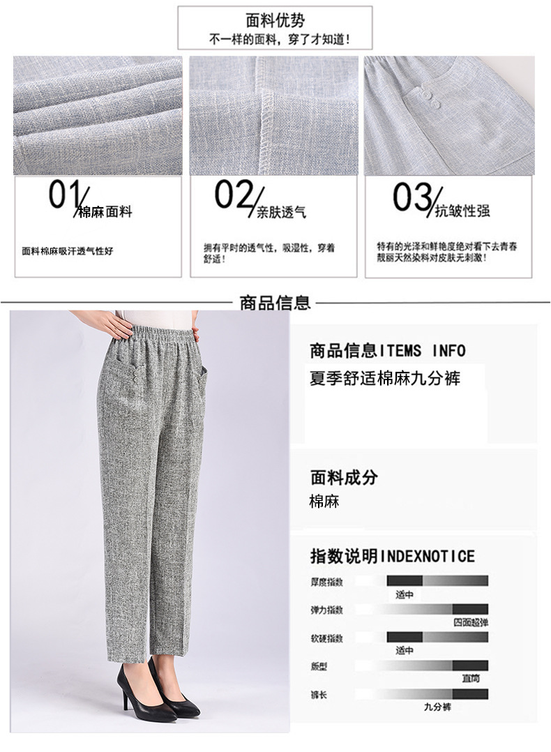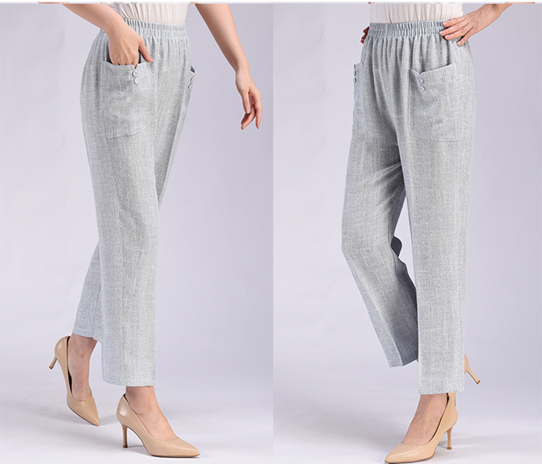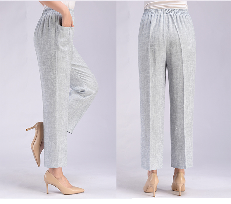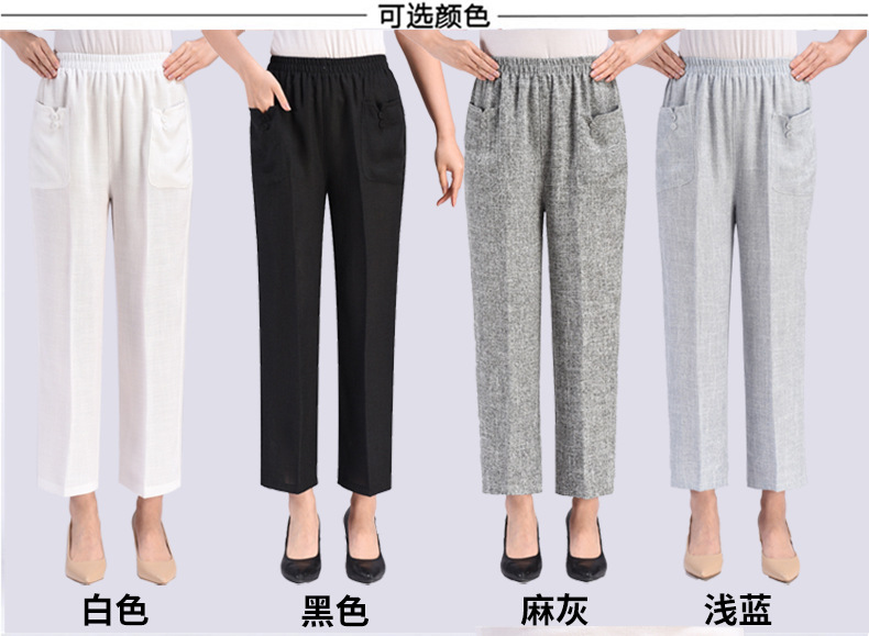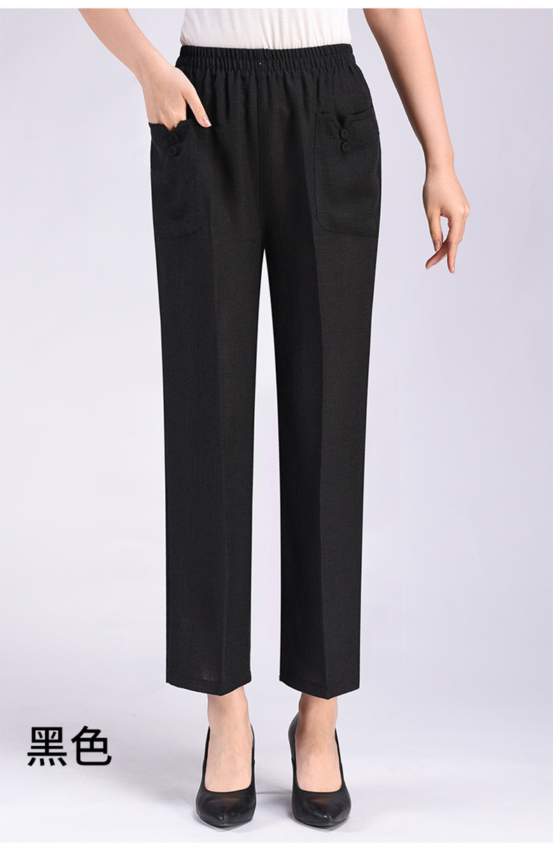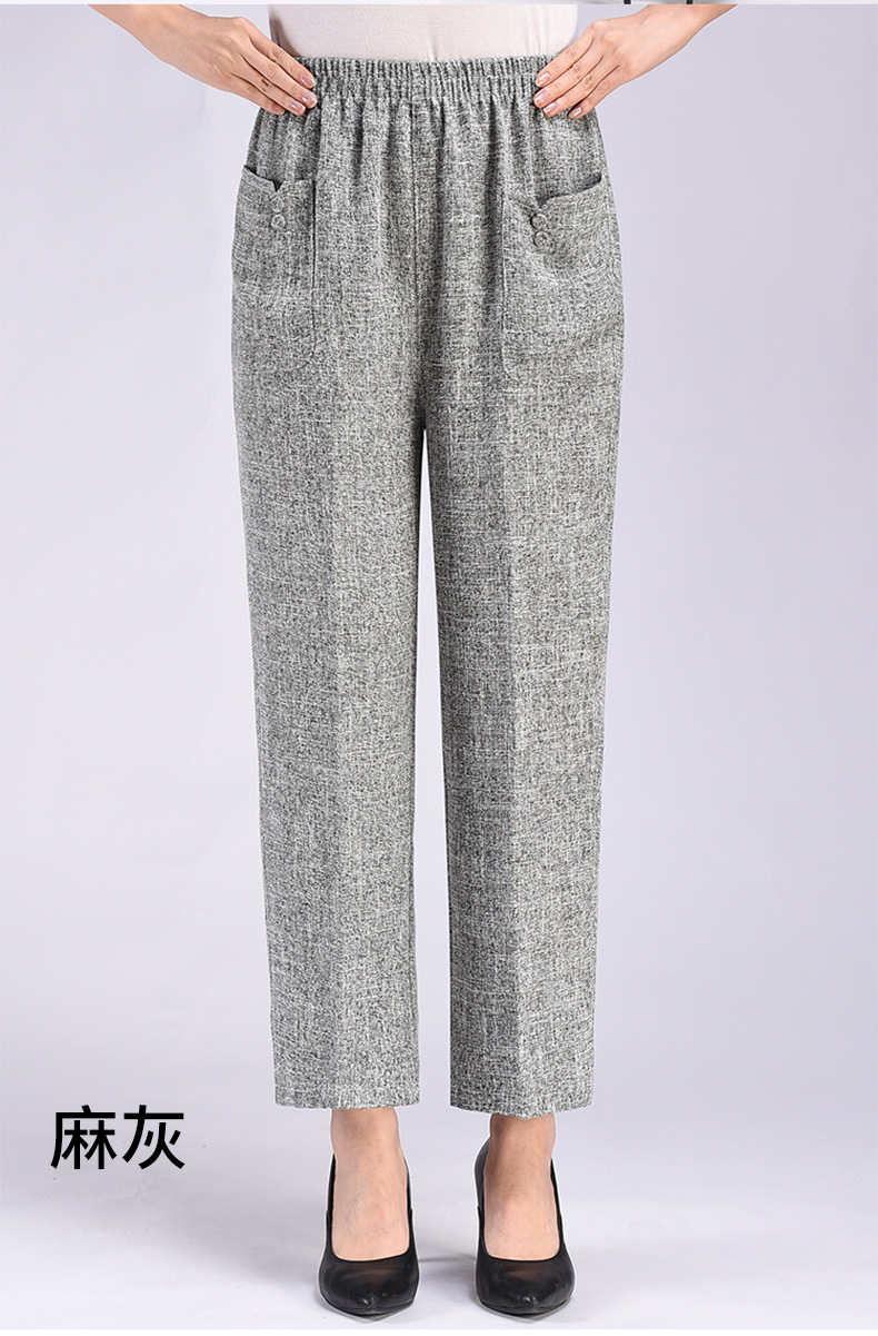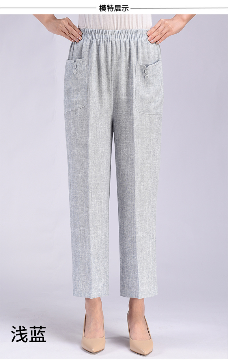 MQ-1196-2005夏薄款松紧高腰棉麻九分中老年亚麻长裤YY