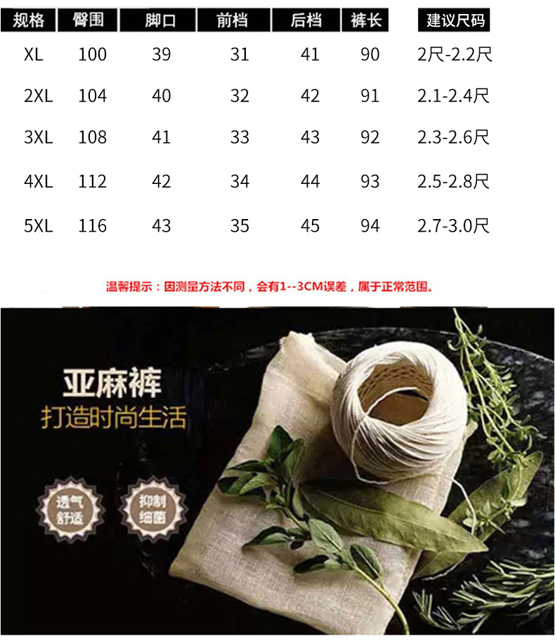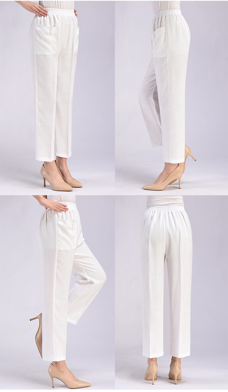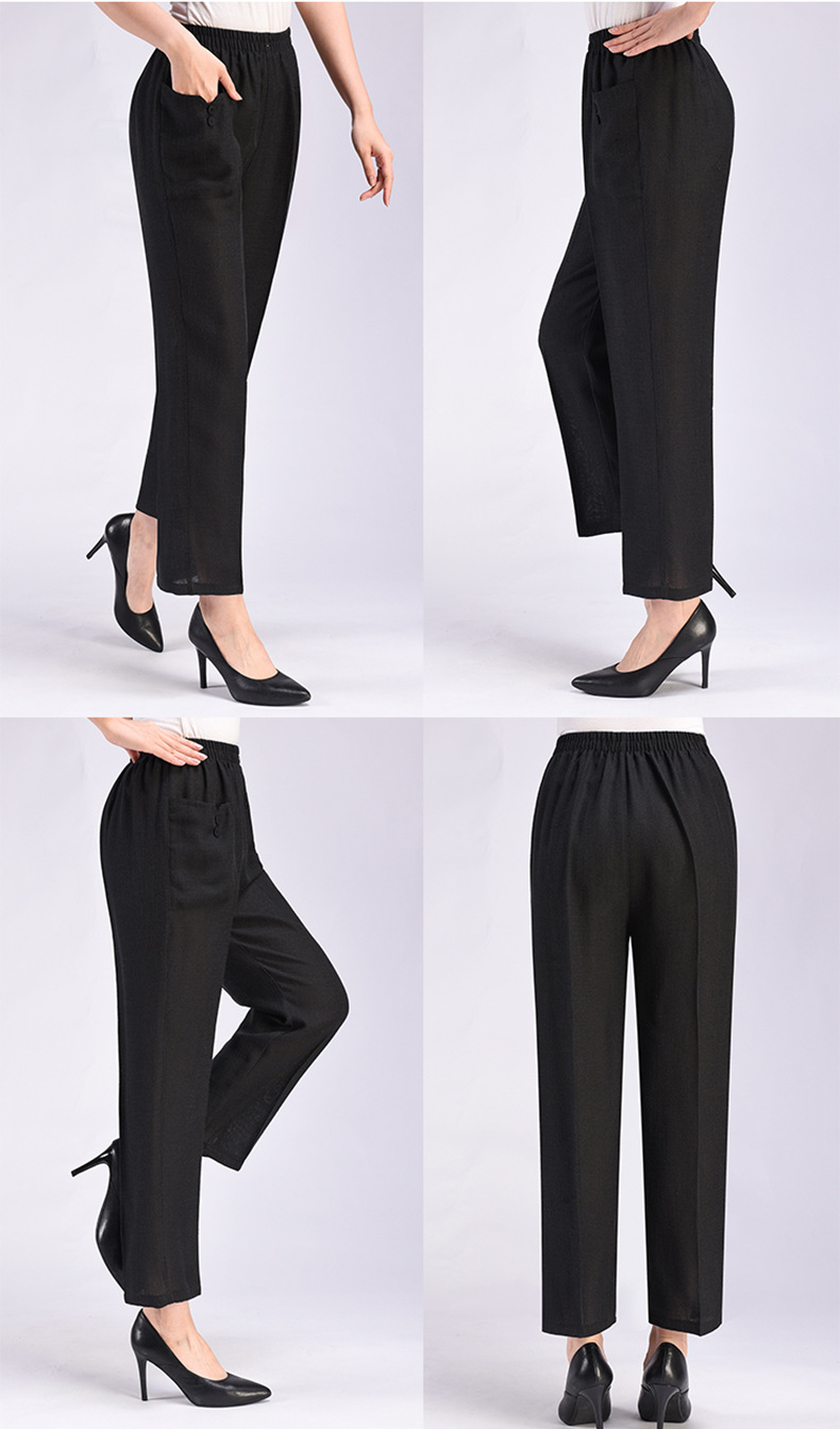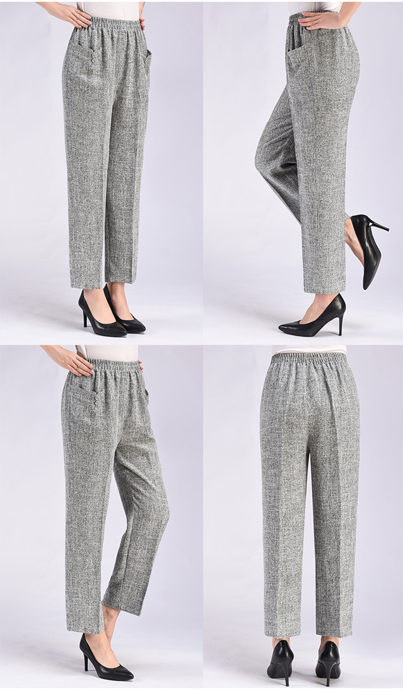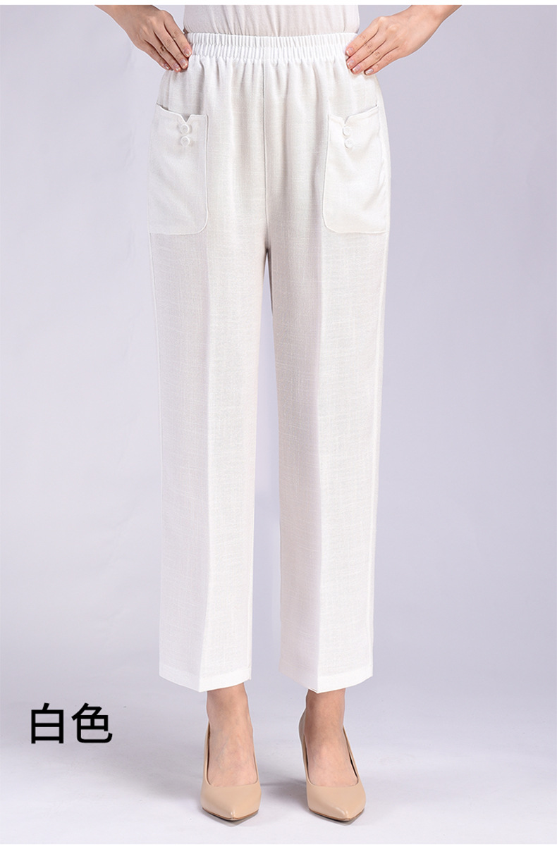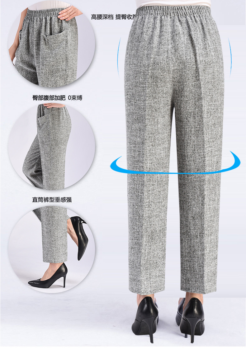 MQ-1196-2005夏薄款松紧高腰棉麻九分中老年亚麻长裤YY
