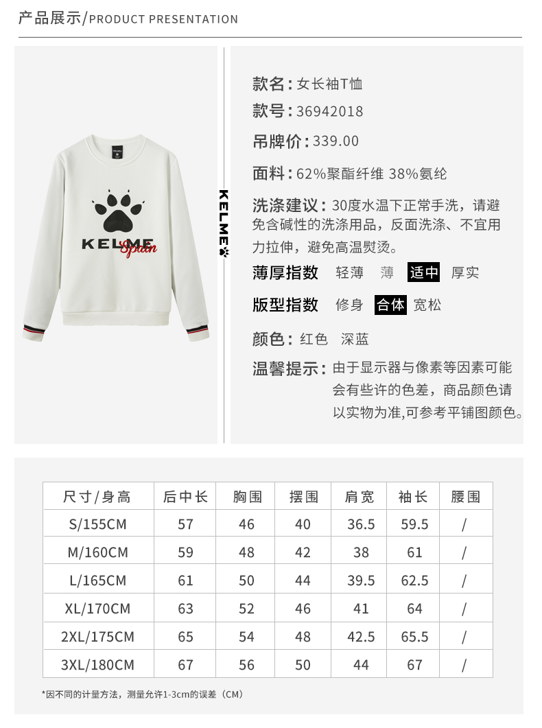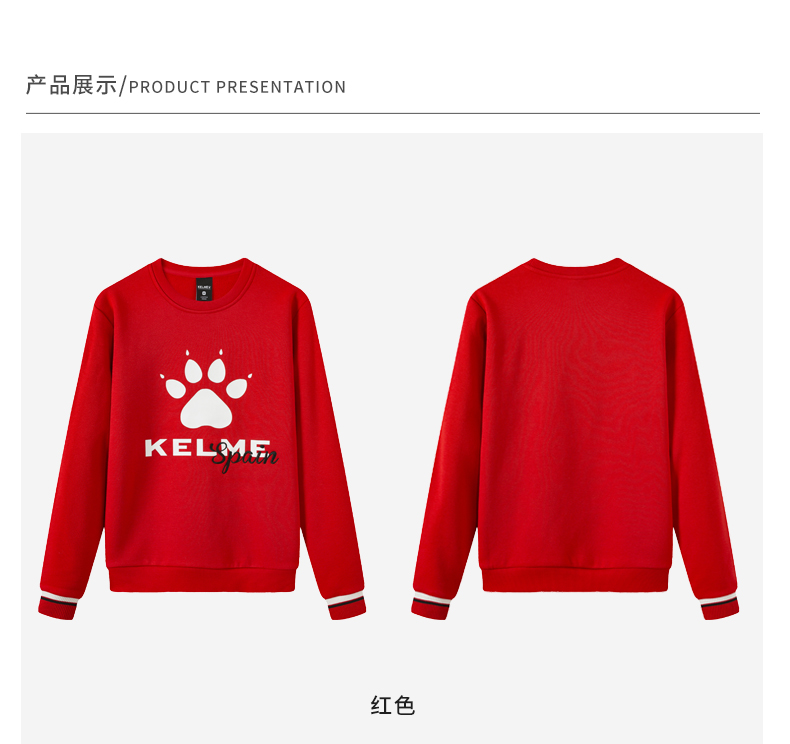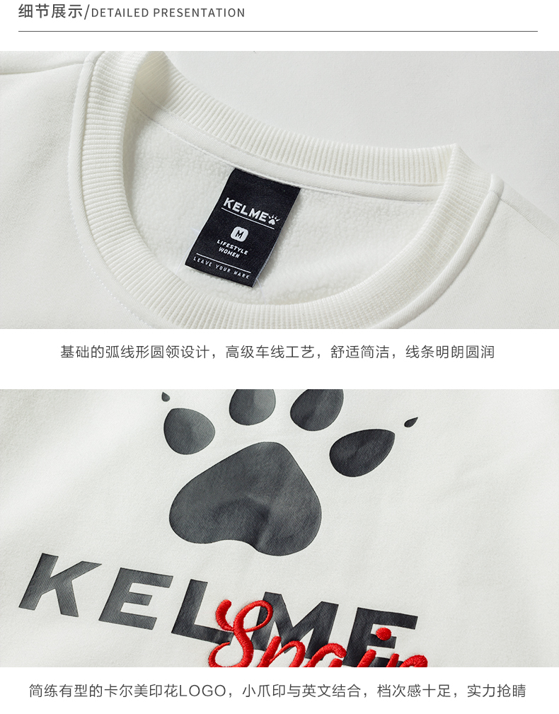 kelme 卡尔美女子秋冬款圆领套头长袖加绒保暖百搭运动休闲
