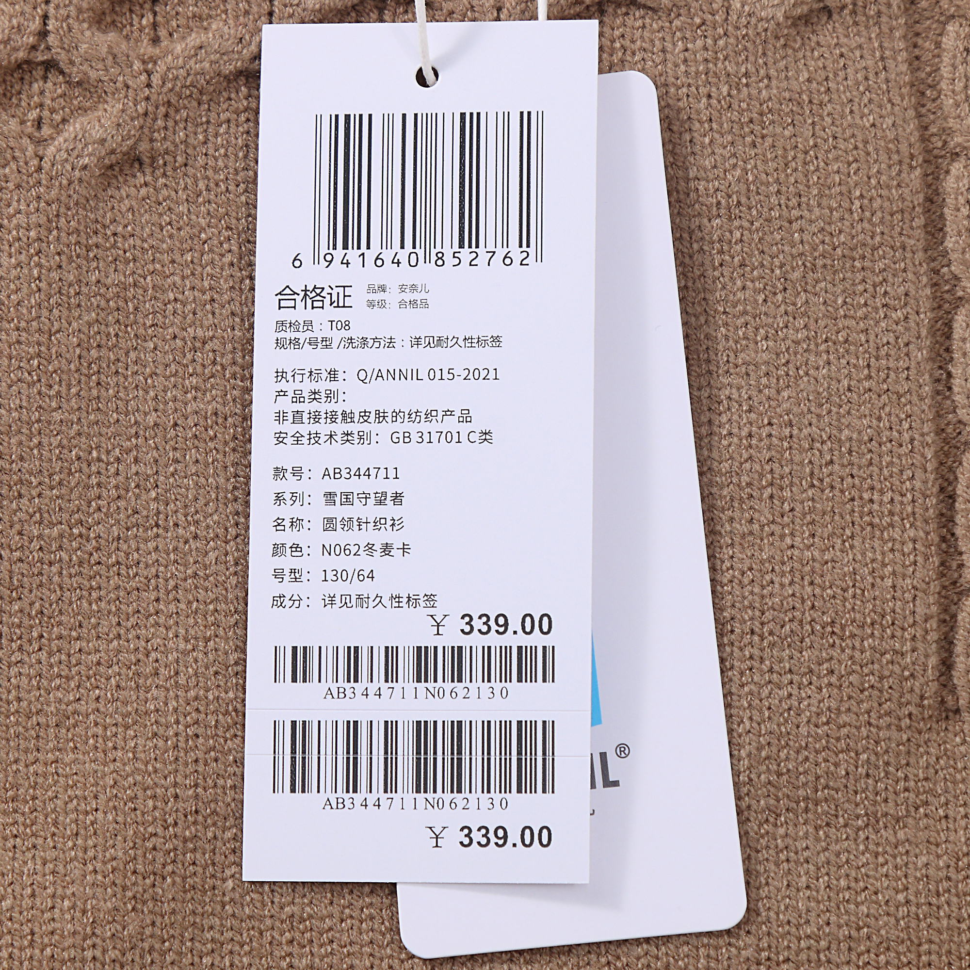 【实体店同款】男童毛衣针织衫新款冬装时尚安奈儿童装AB344711