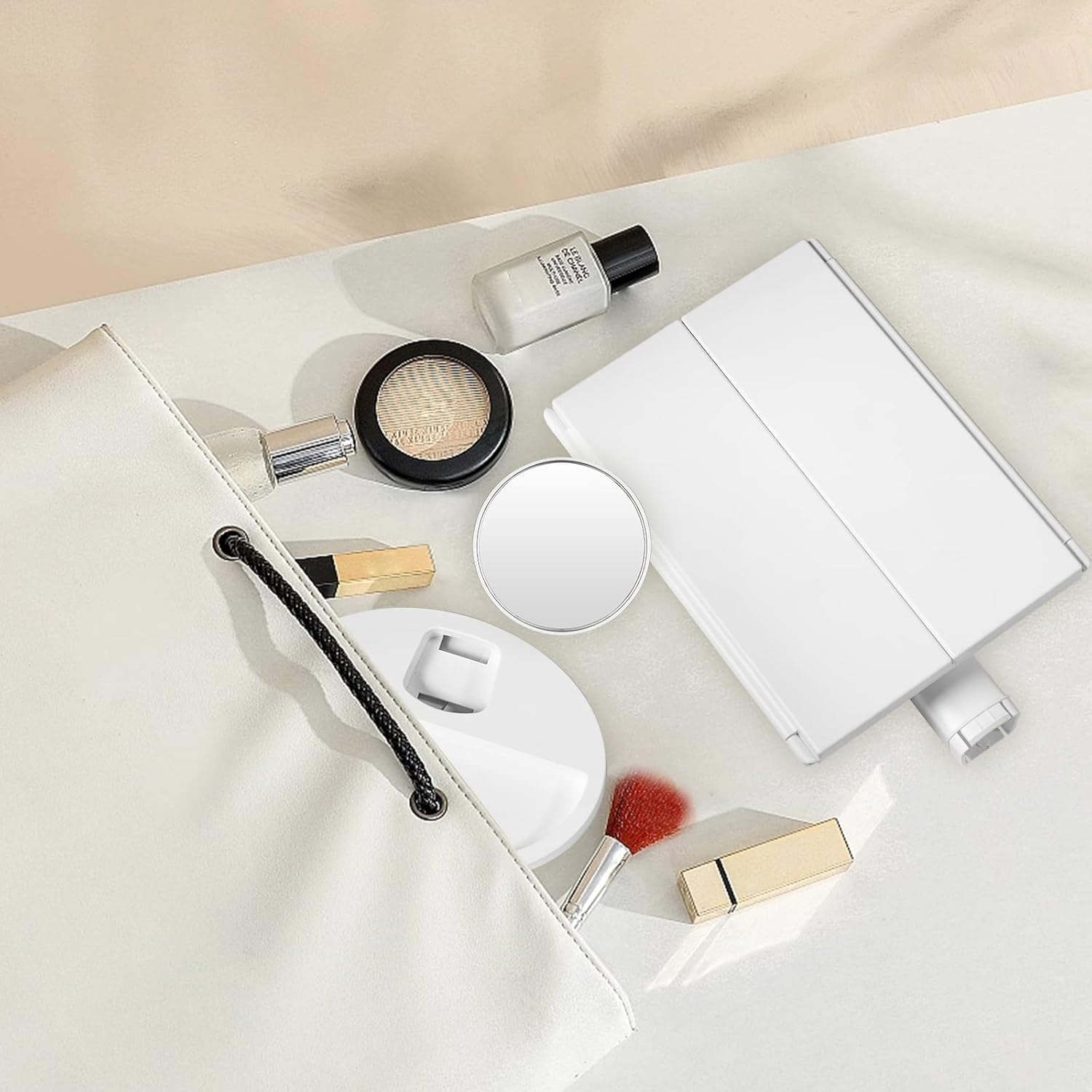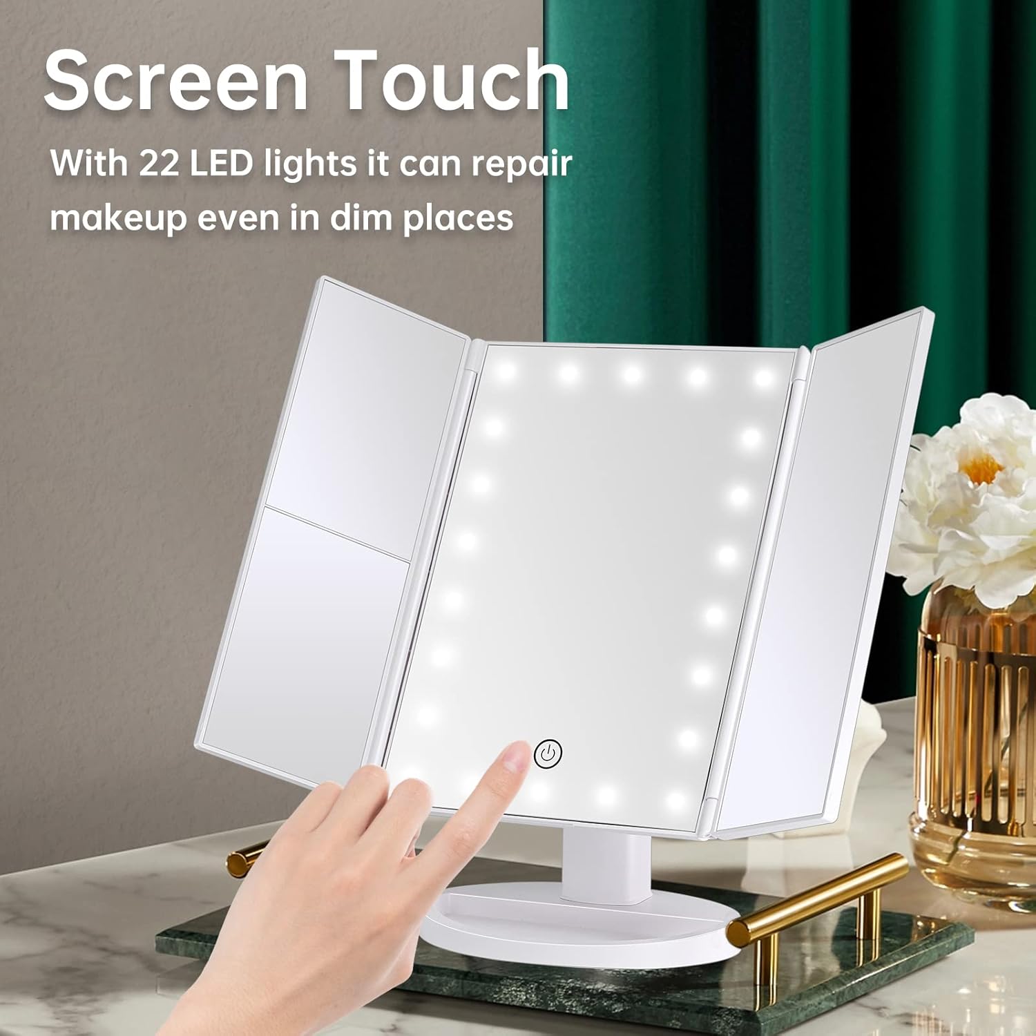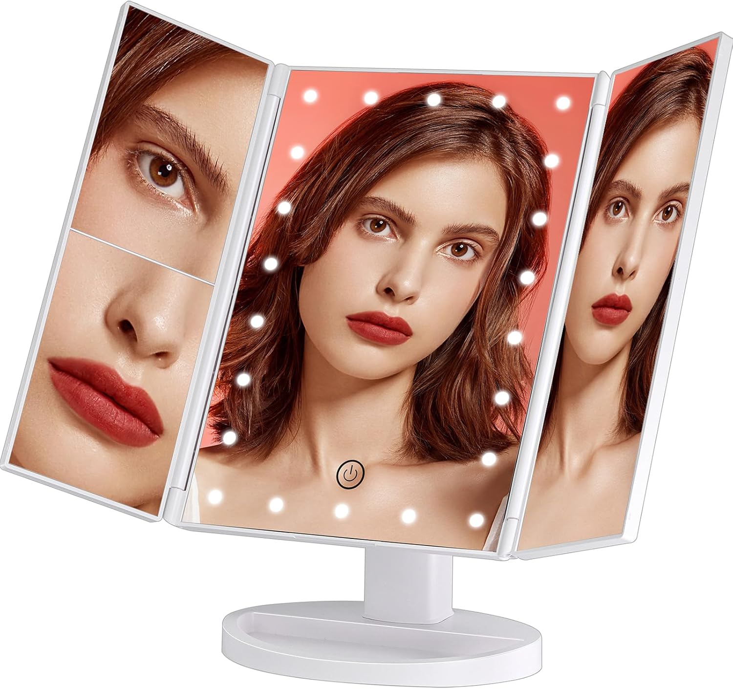 三折台式LED化妆镜 触控调光 两边平面/带2倍3倍放大镜面