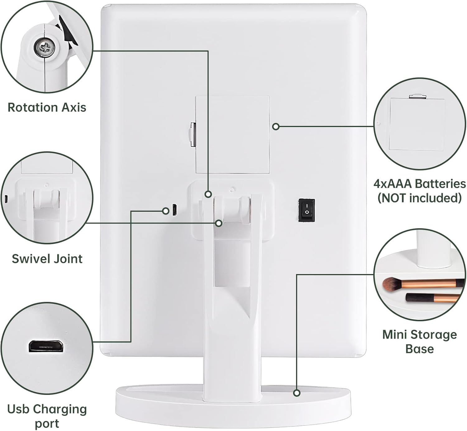 【产品名称】台式三面折叠LED发光化妆镜 触控调光 带2倍3倍放大镜面