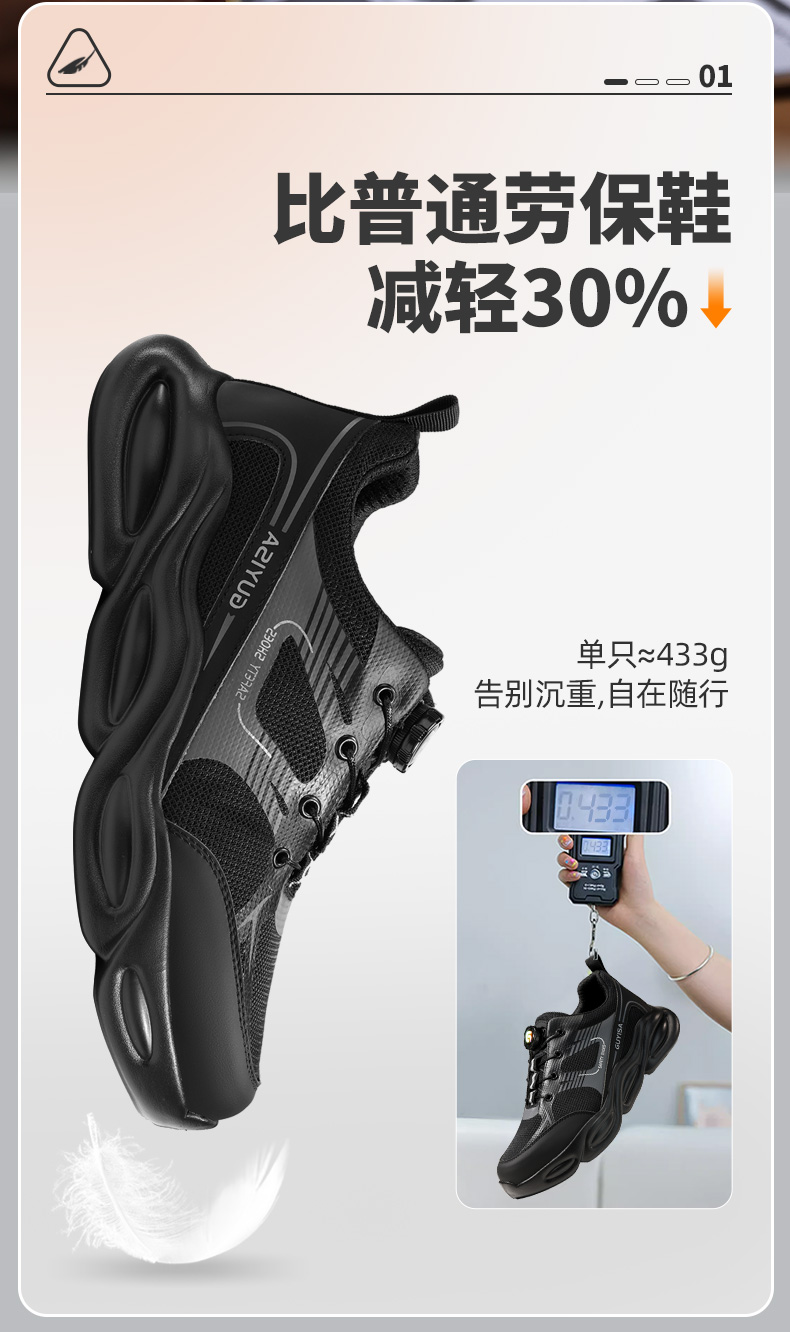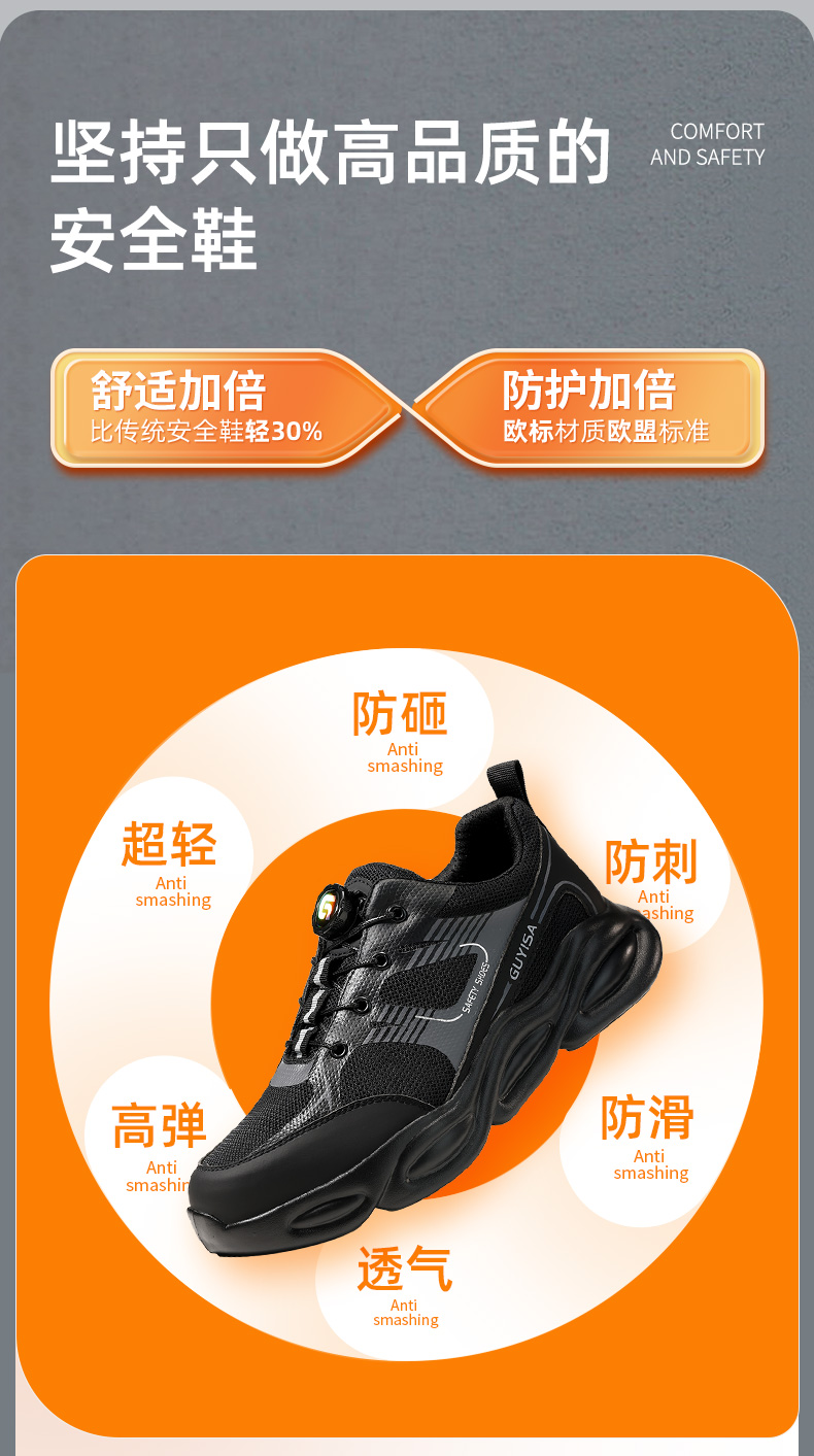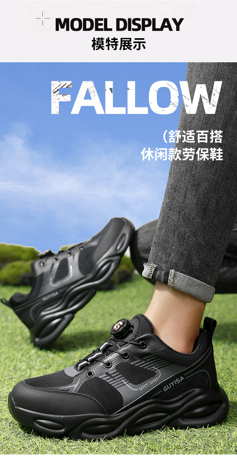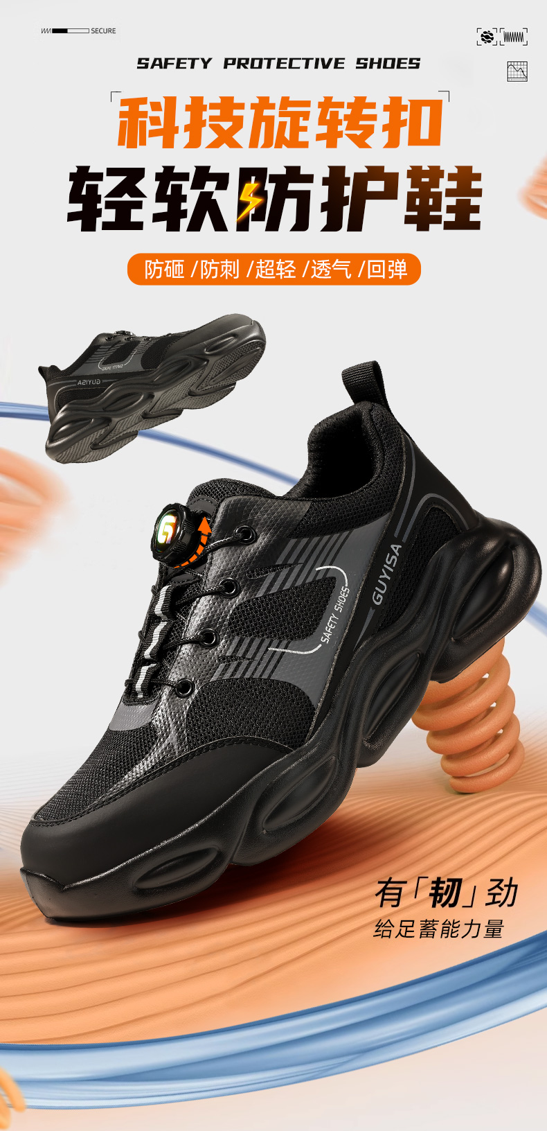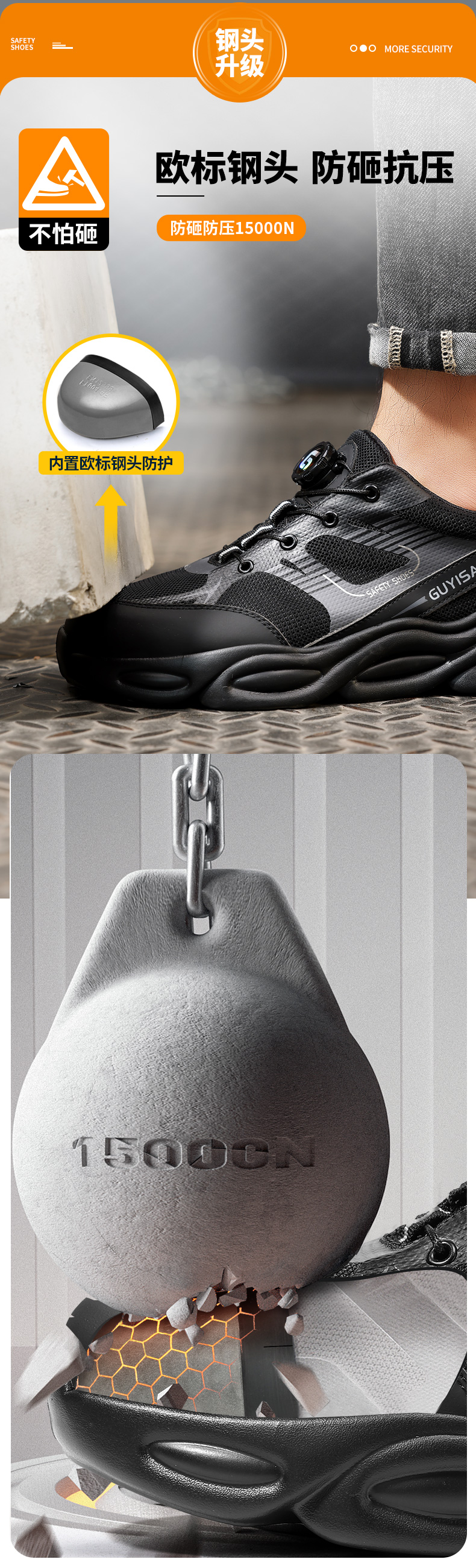 【旋转纽扣】新品透气春款男士劳保鞋轻便橡塑底钢头防砸防刺穿舒适透气工作鞋