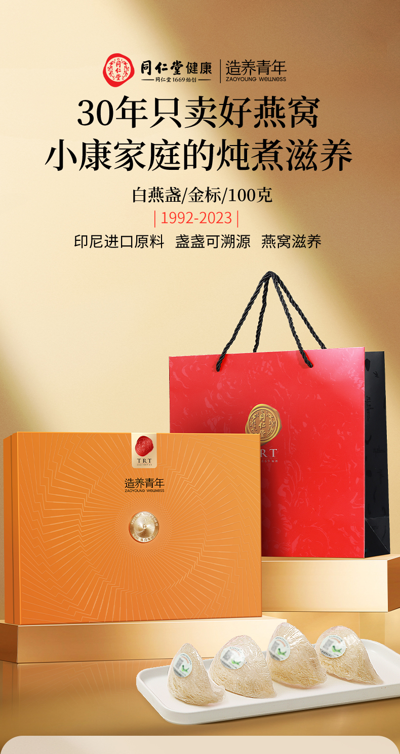 【正宗同仁堂品牌】北京同仁堂 干燕窝礼盒(金标款)100克 印尼进口燕窝干盏溯源干燕盏 送长辈 孝敬父母 孕妇滋补礼品SY