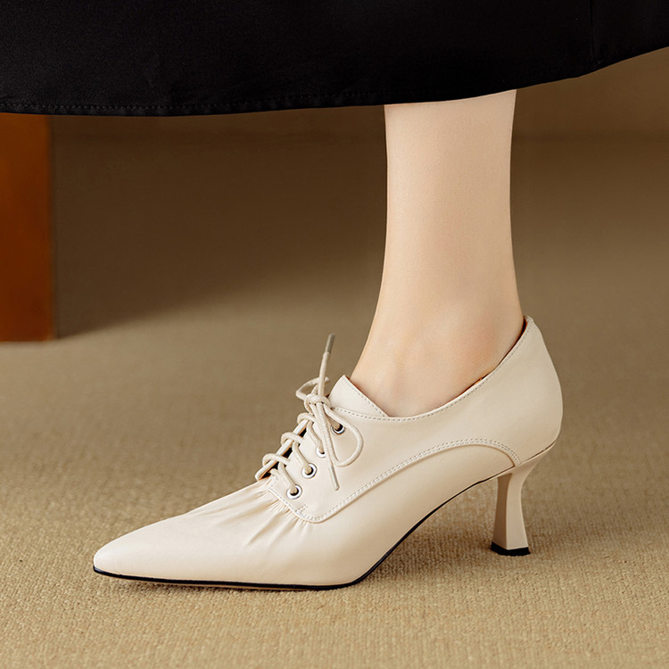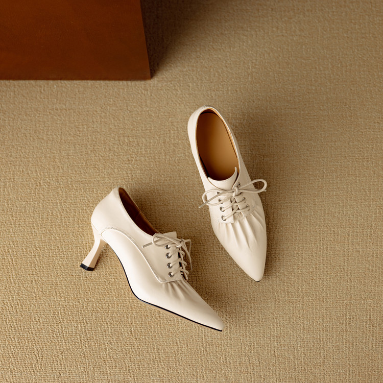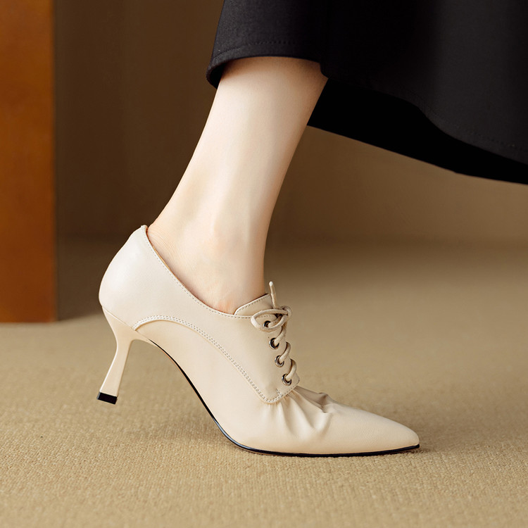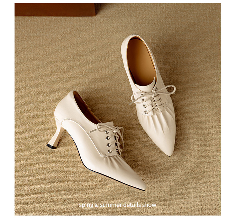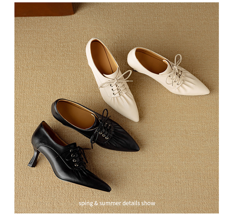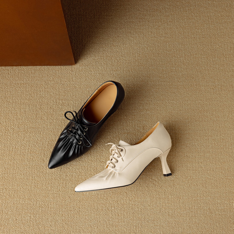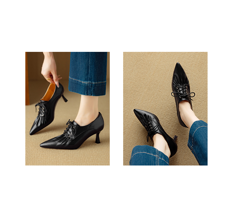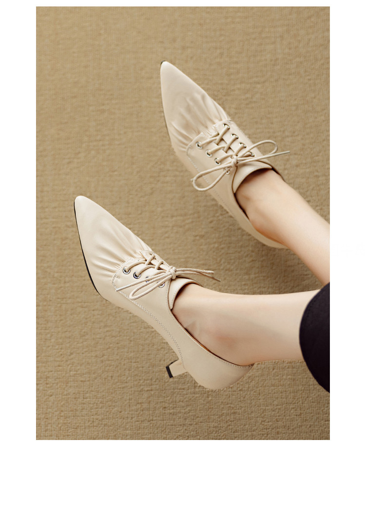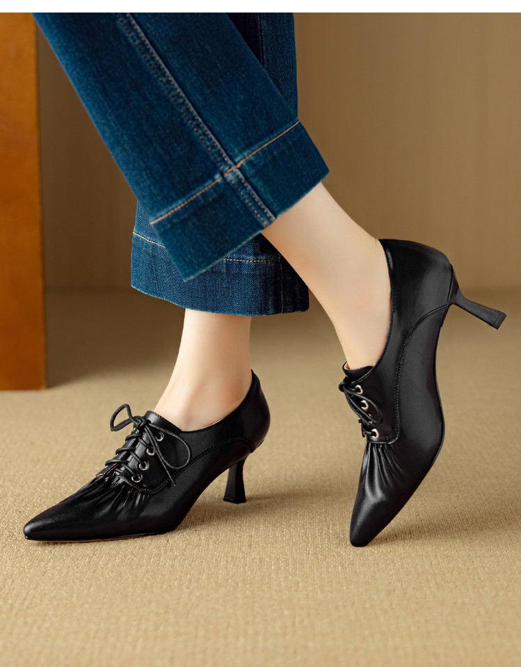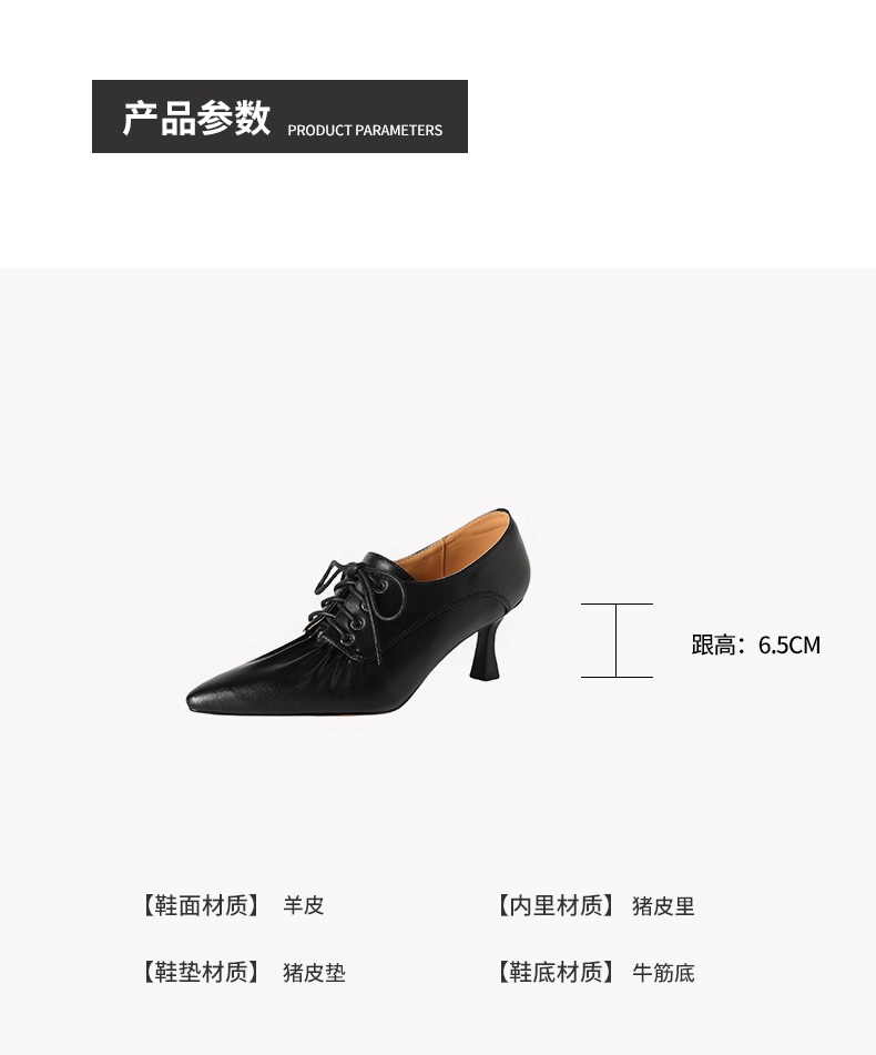 【预售5天】秋季新款真皮细跟尖头小皮鞋褶皱深口系带软皮高跟单鞋DB&M6561
