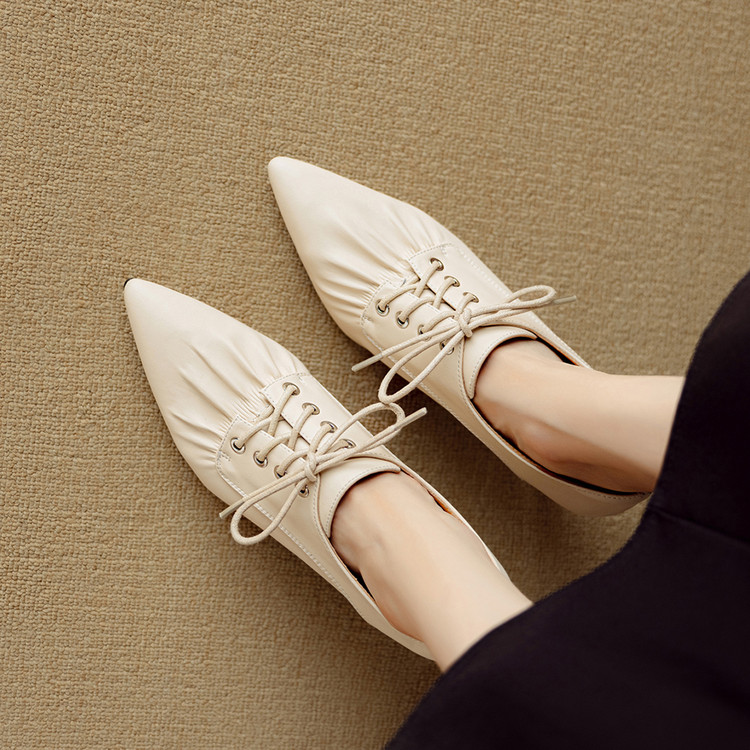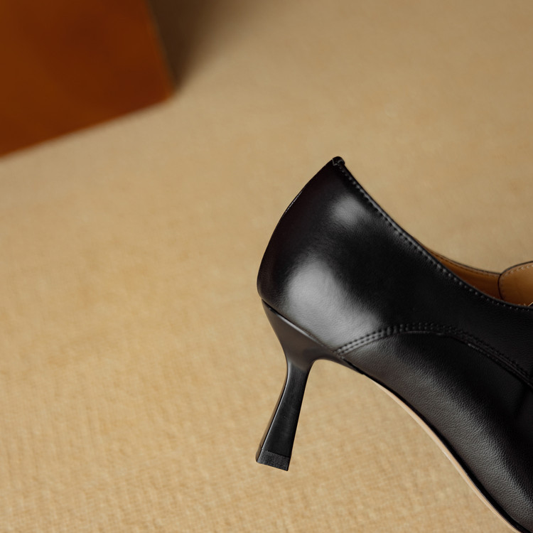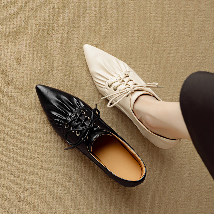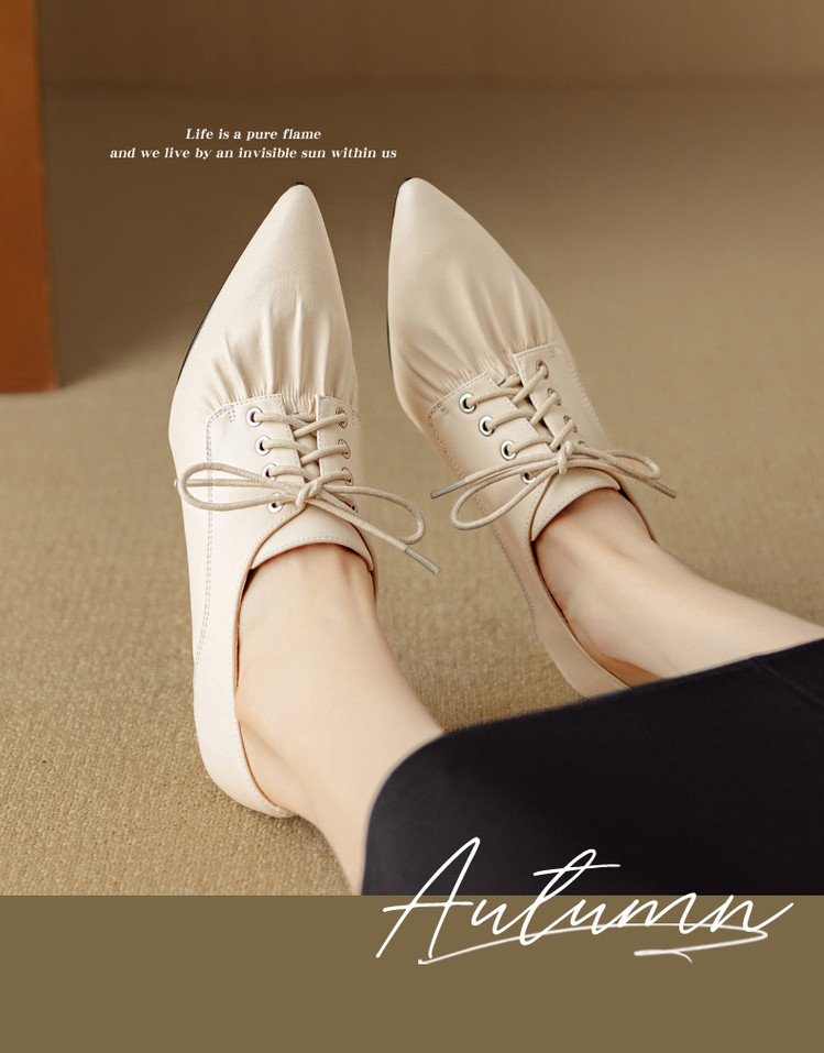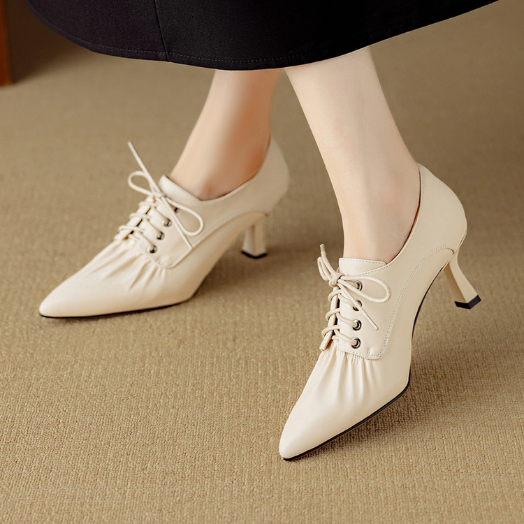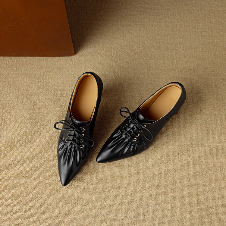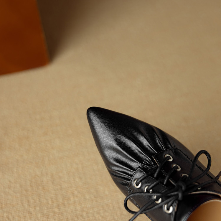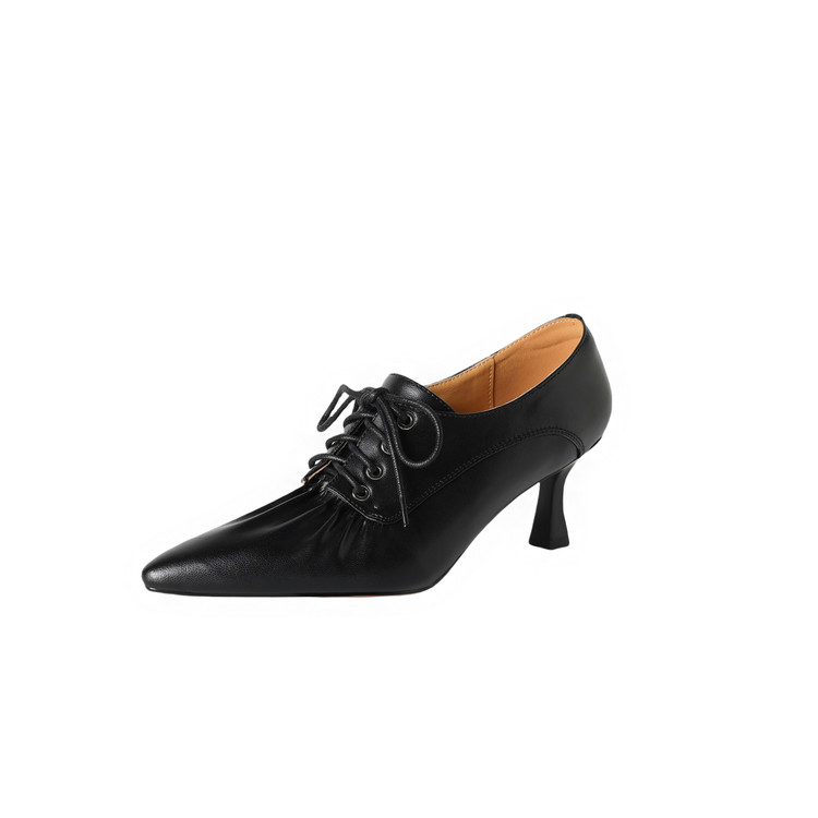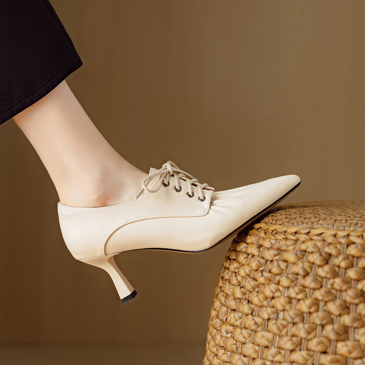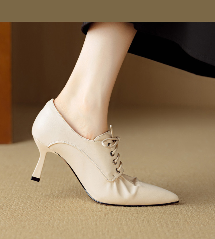 【预售5天】秋季新款真皮细跟尖头小皮鞋褶皱深口系带软皮高跟单鞋DB&M6561