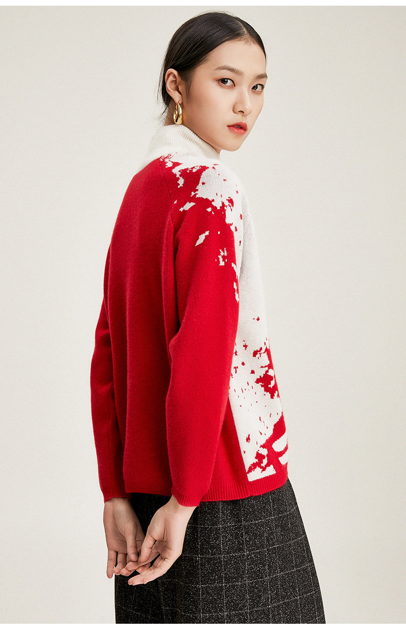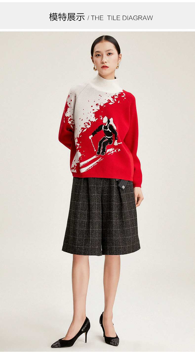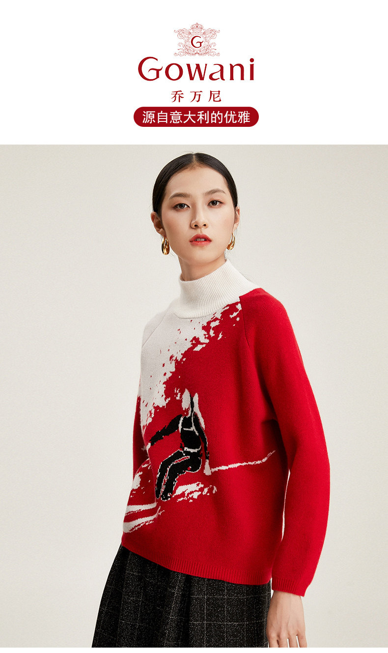【山羊绒】乔万尼冬季山羊绒毛衫短款宽松毛衣时尚高领长袖针织衫女上衣EN4M806