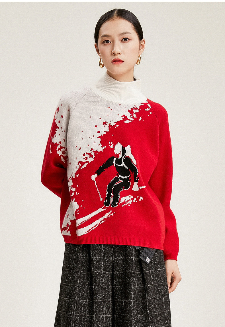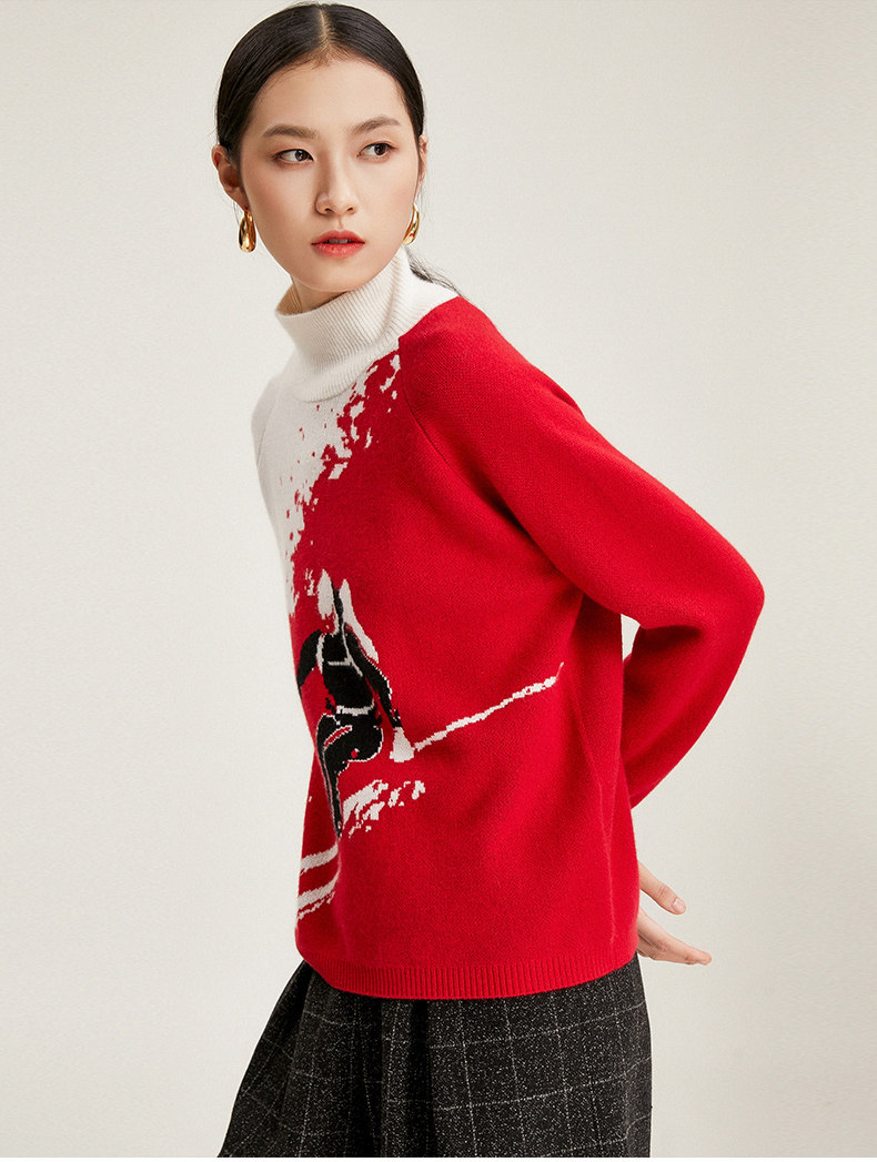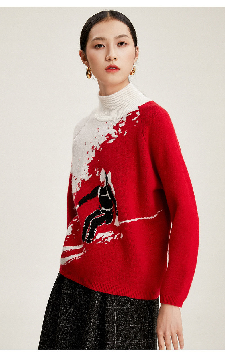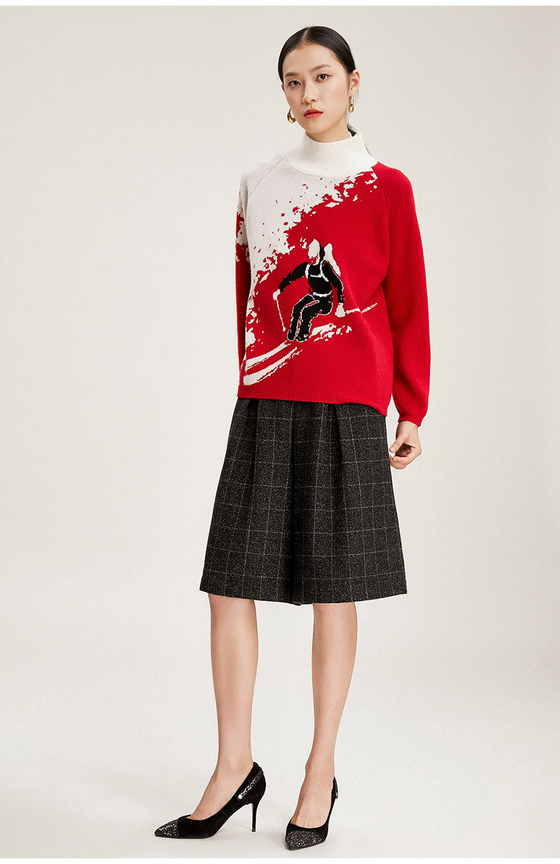 【山羊绒】乔万尼冬季山羊绒毛衫短款宽松毛衣时尚高领长袖针织衫女上衣EN4M806