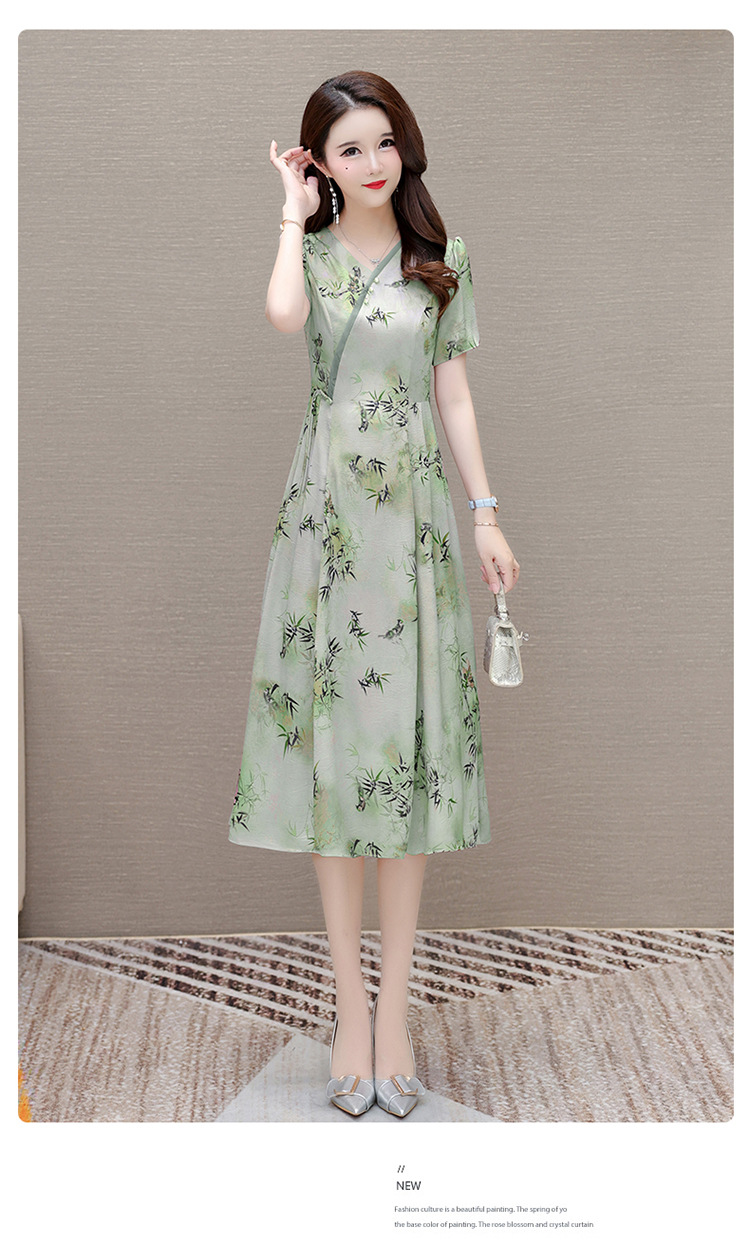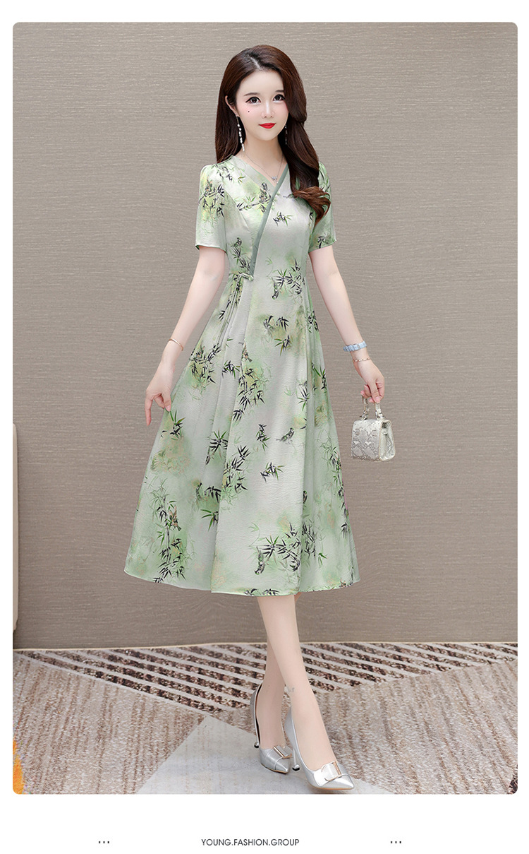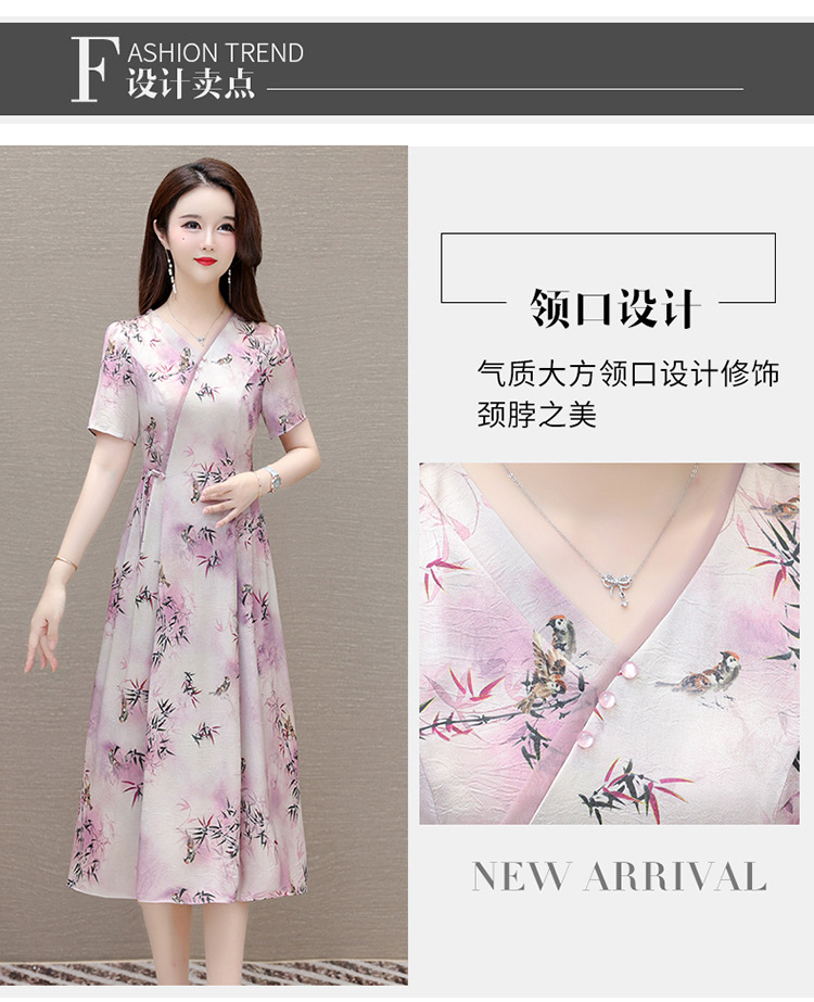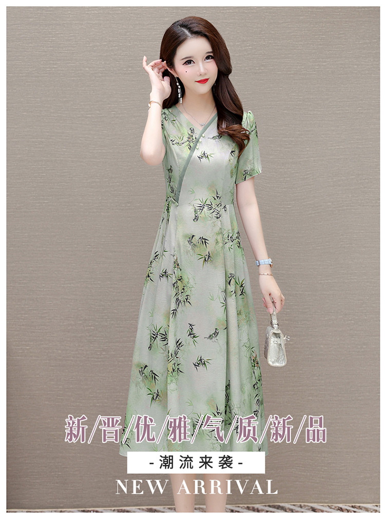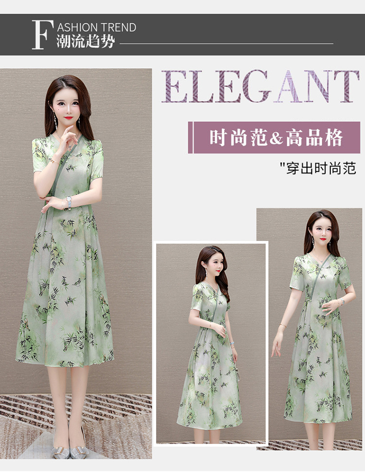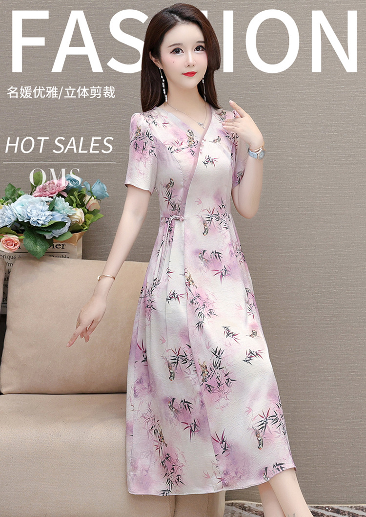 新中式印花中长款,修身时尚连衣裙QYM-OMS-XQA469-L