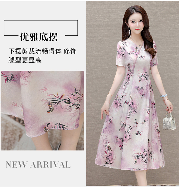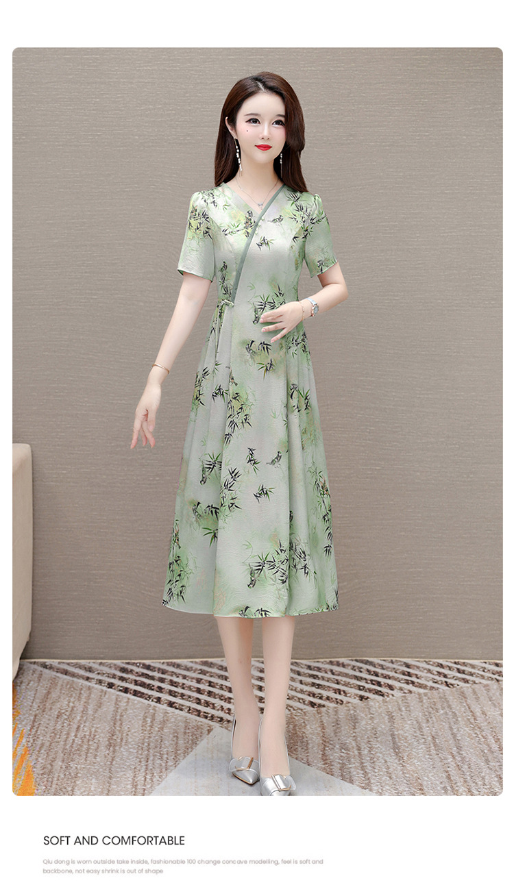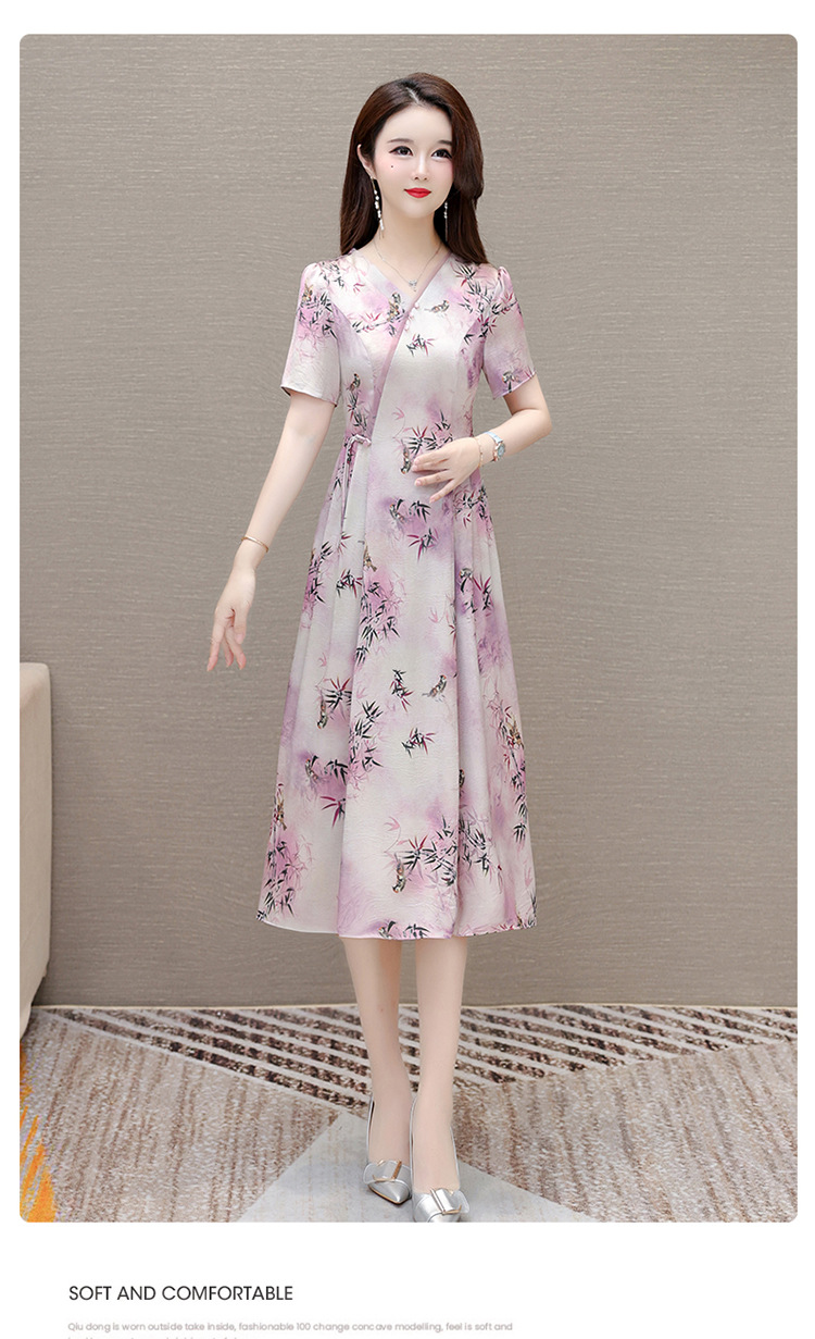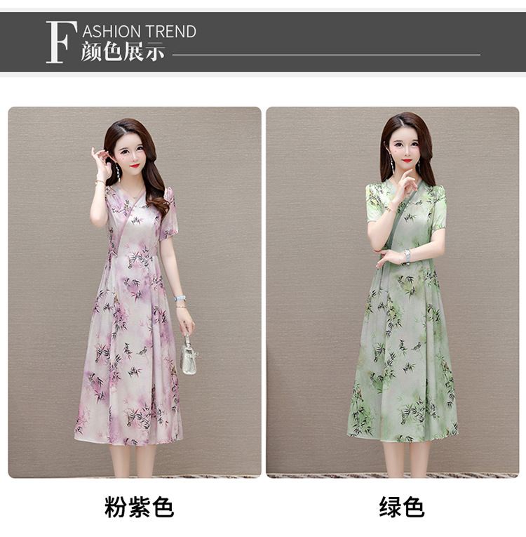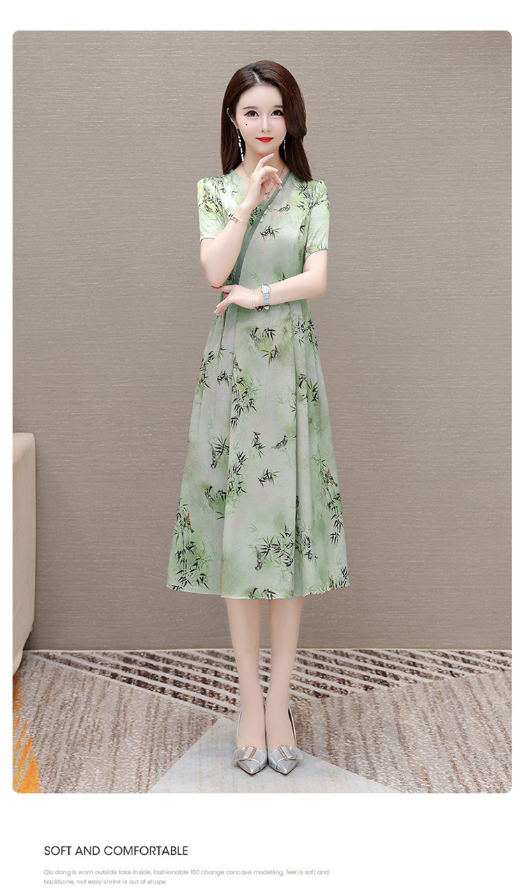 新中式印花中长款,修身时尚连衣裙QYM-OMS-XQA469-L