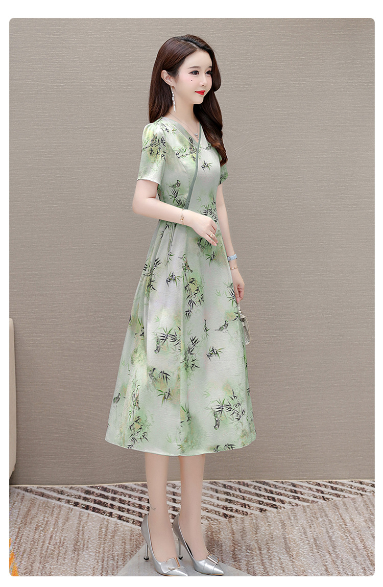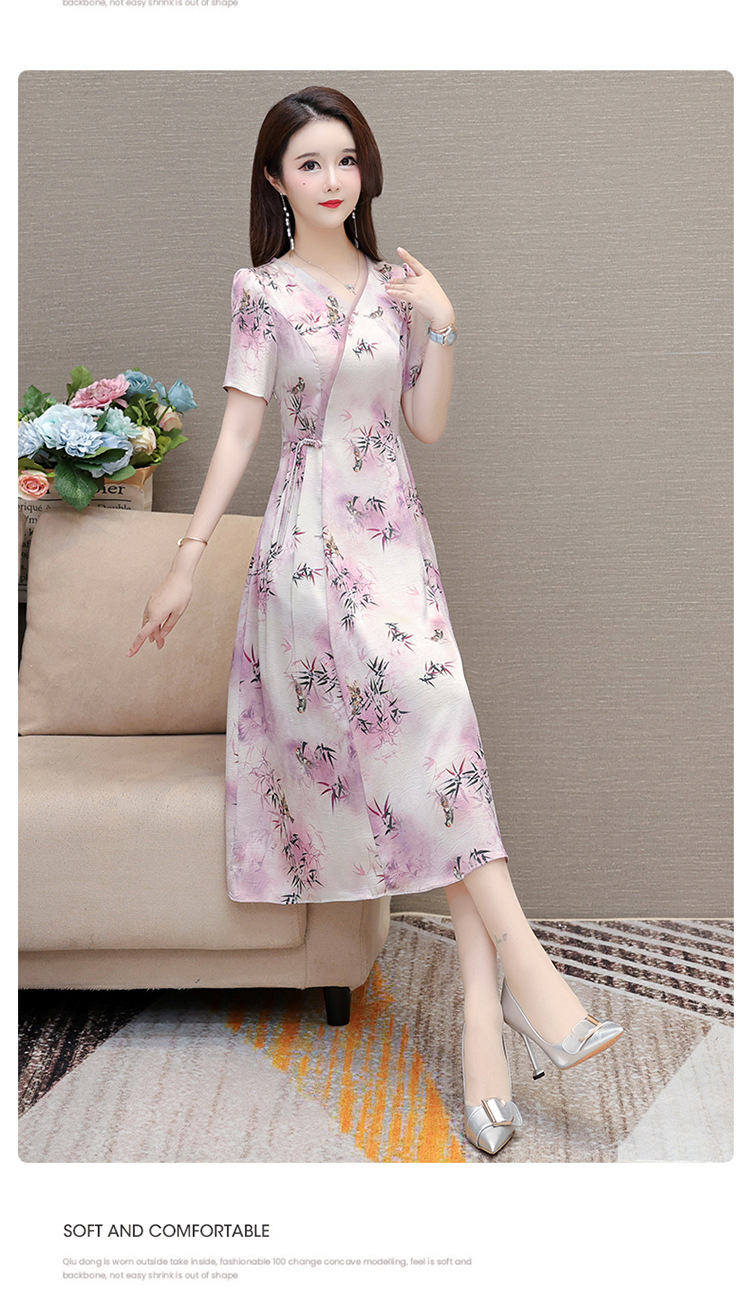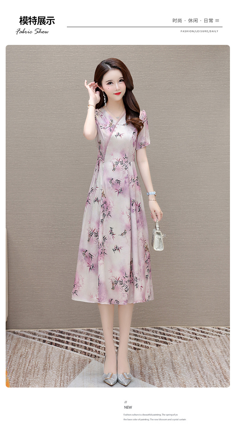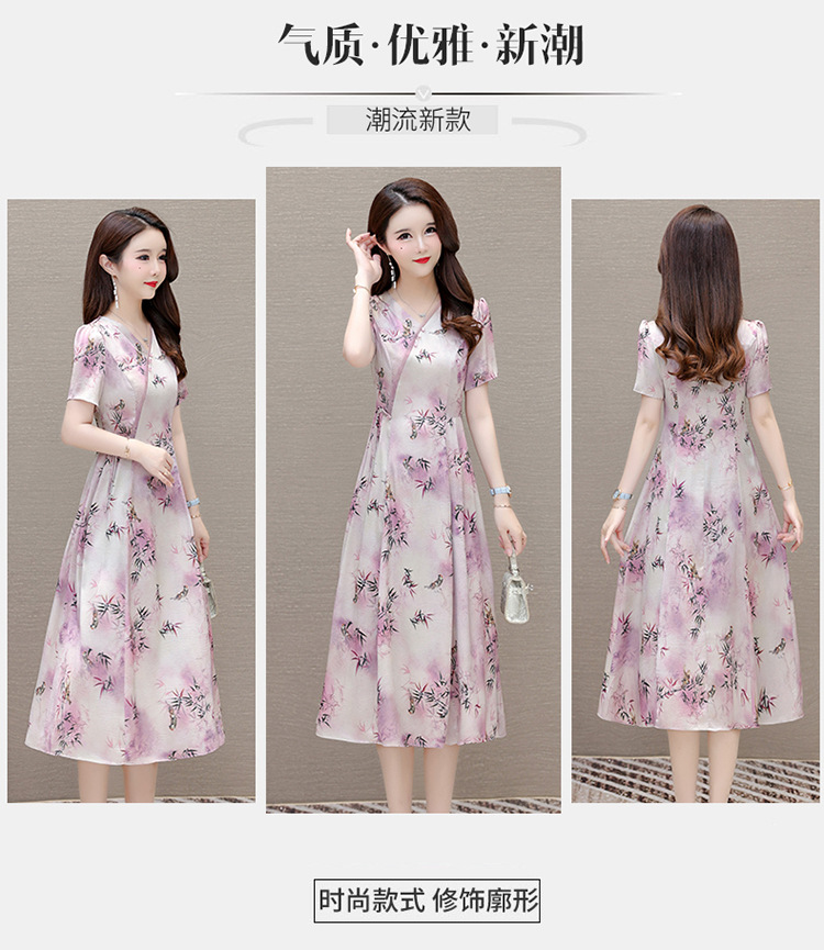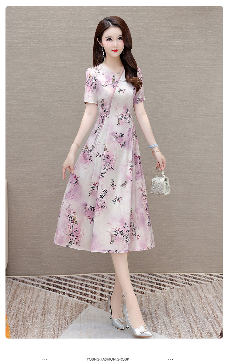 新中式印花中长款,修身时尚连衣裙QYM-OMS-XQA469-L