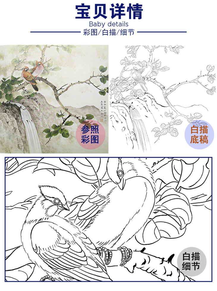 【长卷】工笔画白描底稿古画长卷佚名《古代花鸟图》多种白描尺寸可选G030