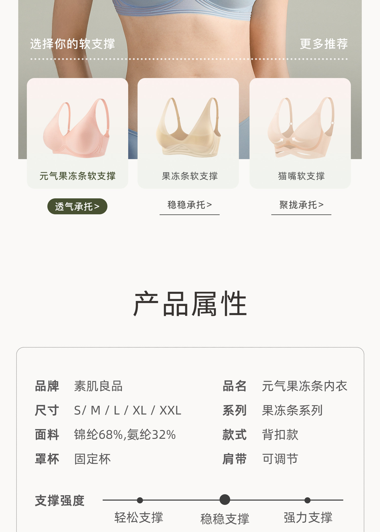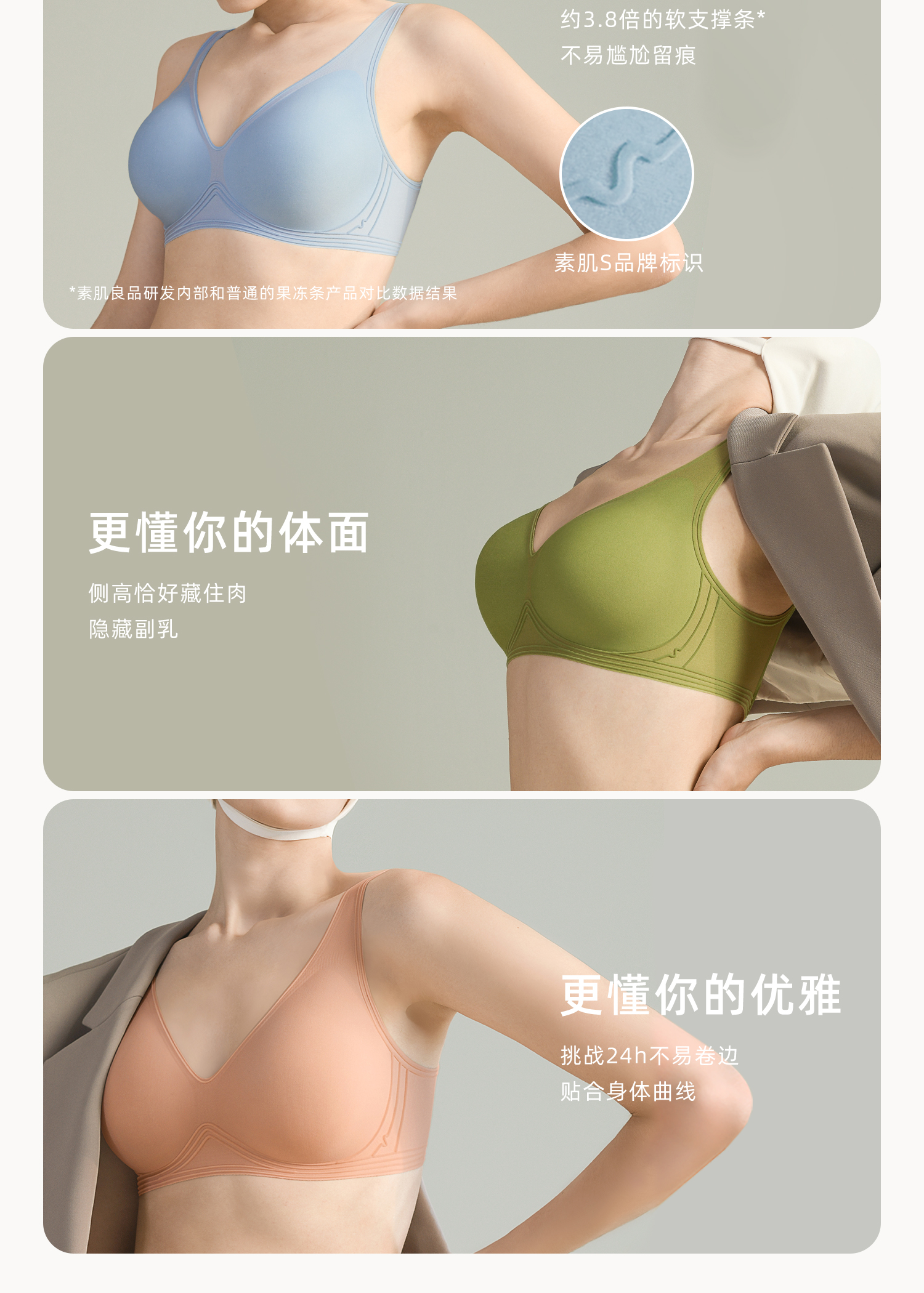 素肌良品元气条无痕内衣女小胸聚拢无钢圈大码防下垂收副乳文胸罩 MX179-FX