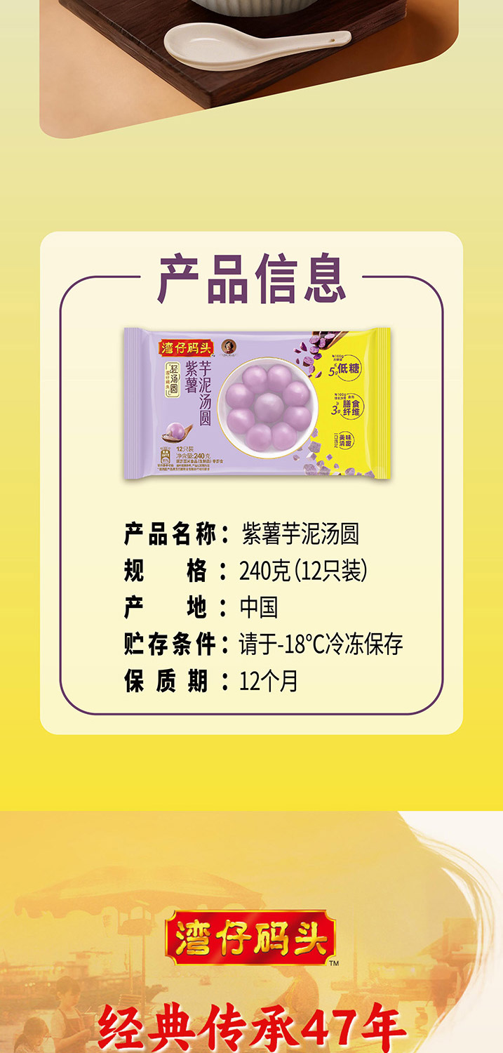湾仔码头紫薯芋泥汤圆/1包(12只,共240g)生产日期:25年10月补单专用