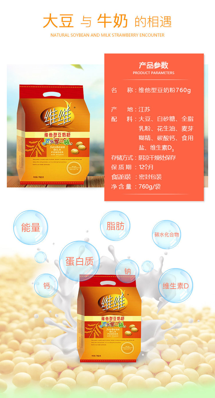 【百汇到家】维维维他型豆奶粉760g