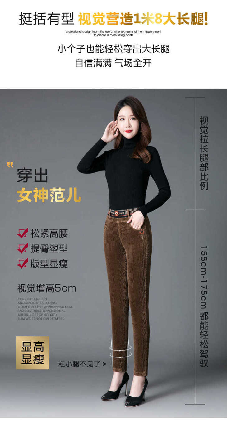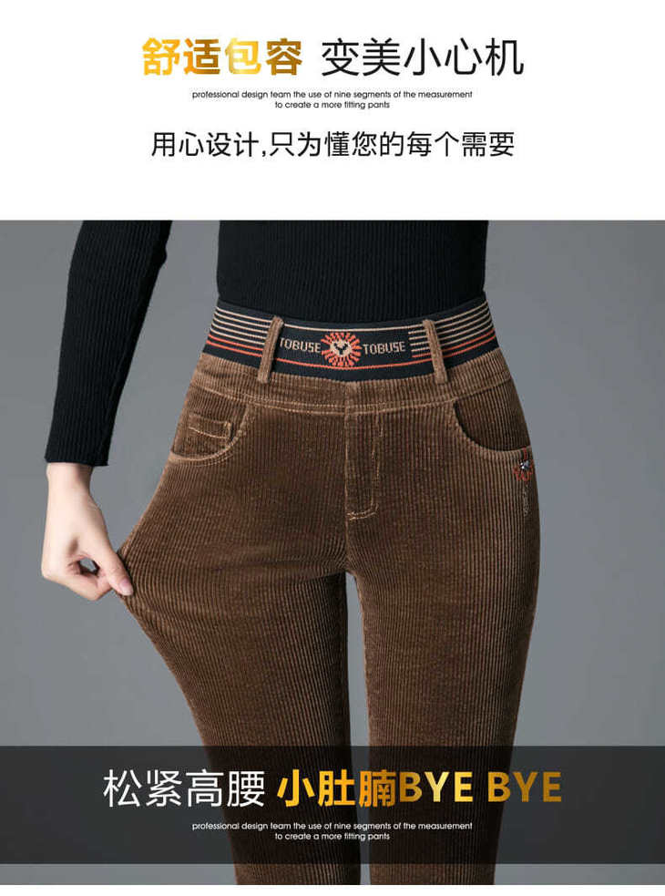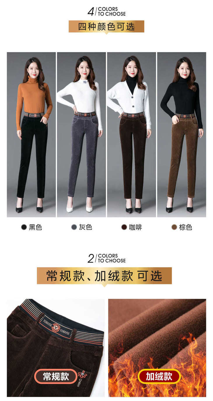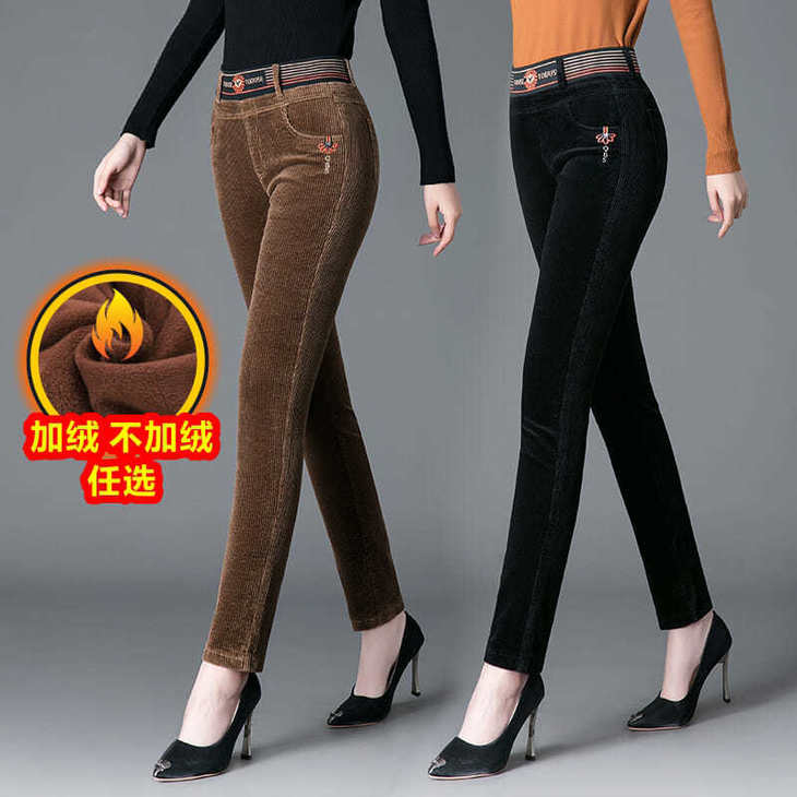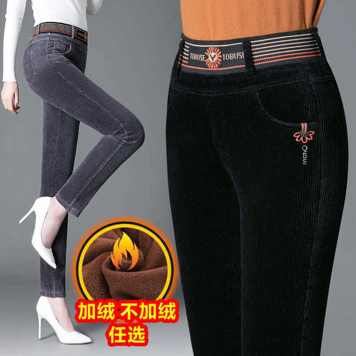P-高腰灯芯绒休闲女裤女加绒加厚长裤
