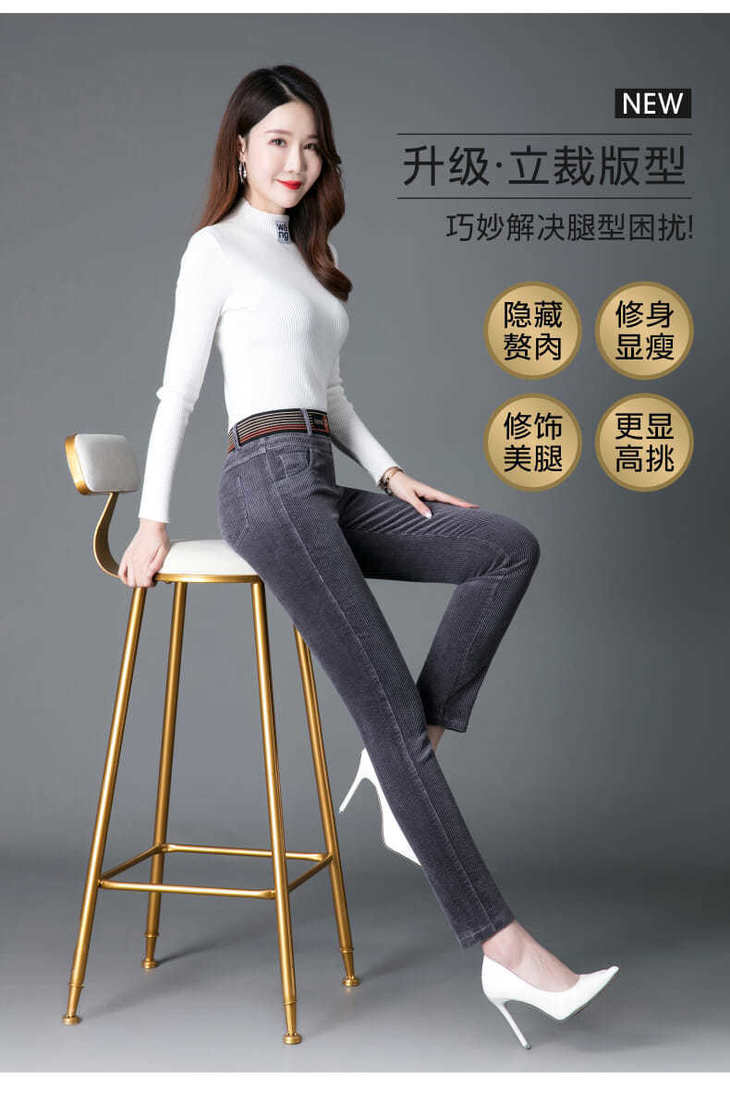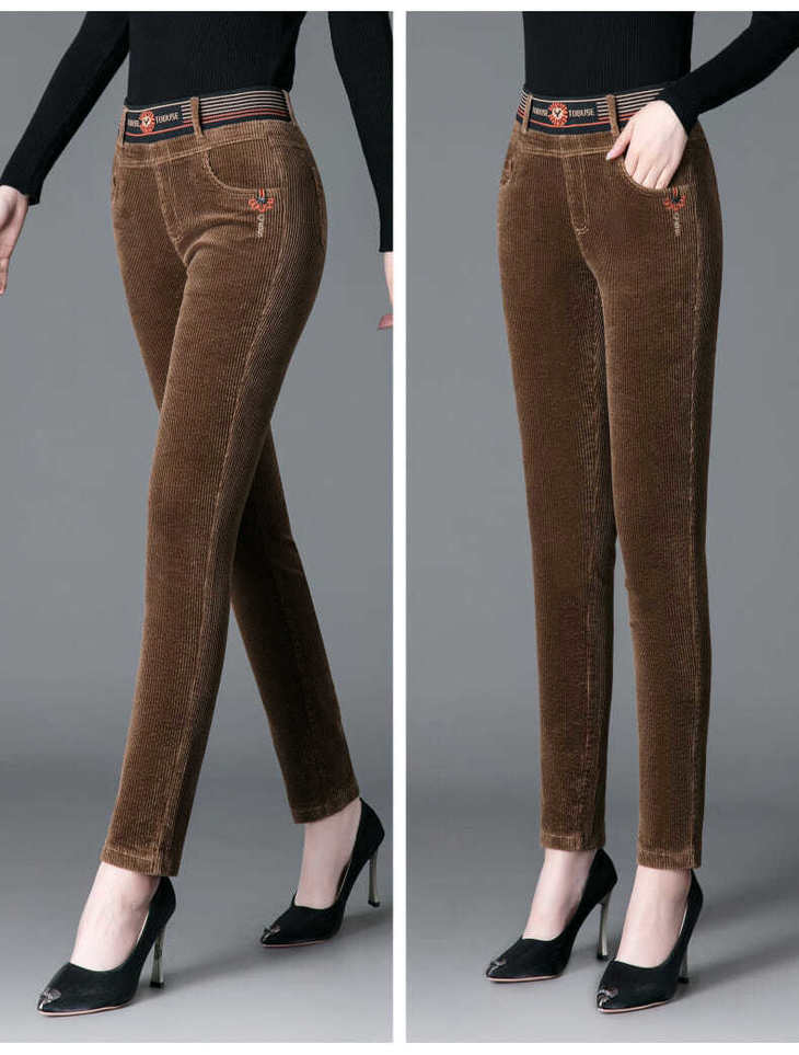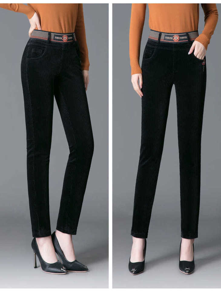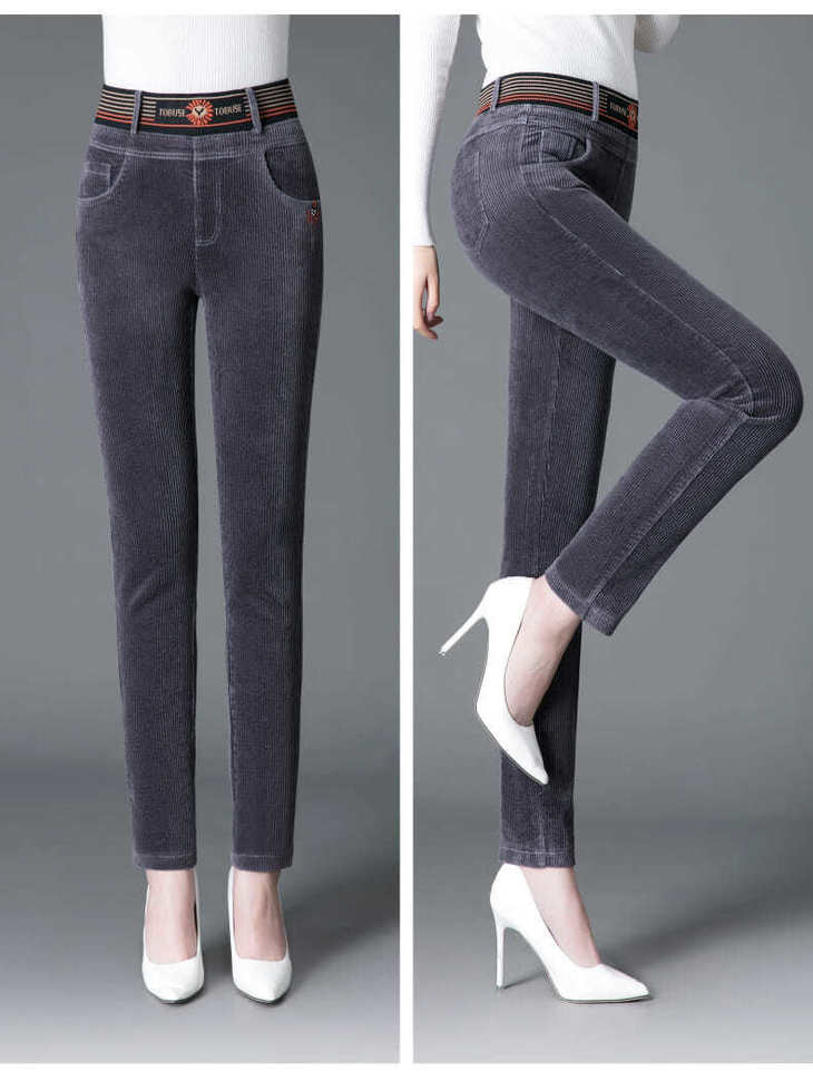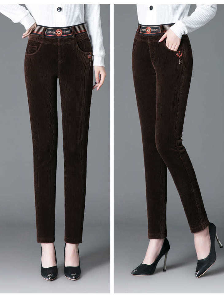 P-高腰灯芯绒休闲女裤女加绒加厚长裤