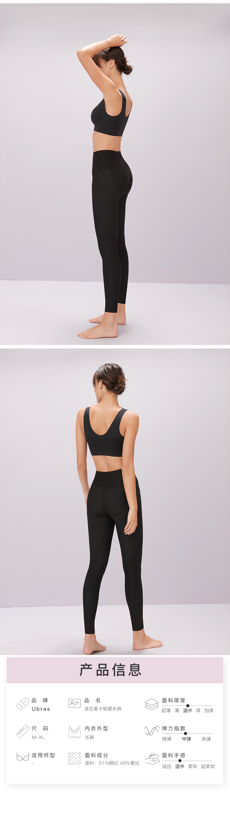 Ubras液态莱卡轻塑长裤修身显瘦透气收腹轻塑形运动打底裤秋季女