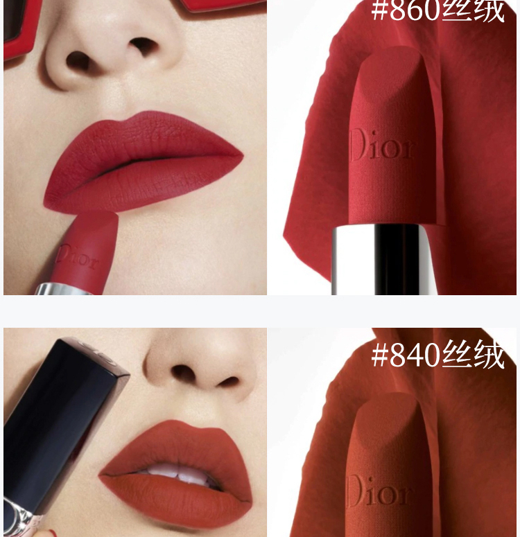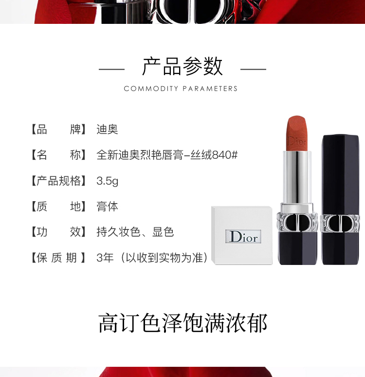 【礼物】迪奥(Dior)口红烈艳蓝金840 丝绒唇膏枫叶砖红3.5g