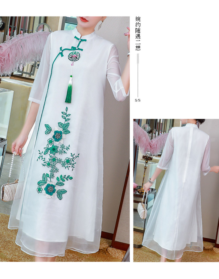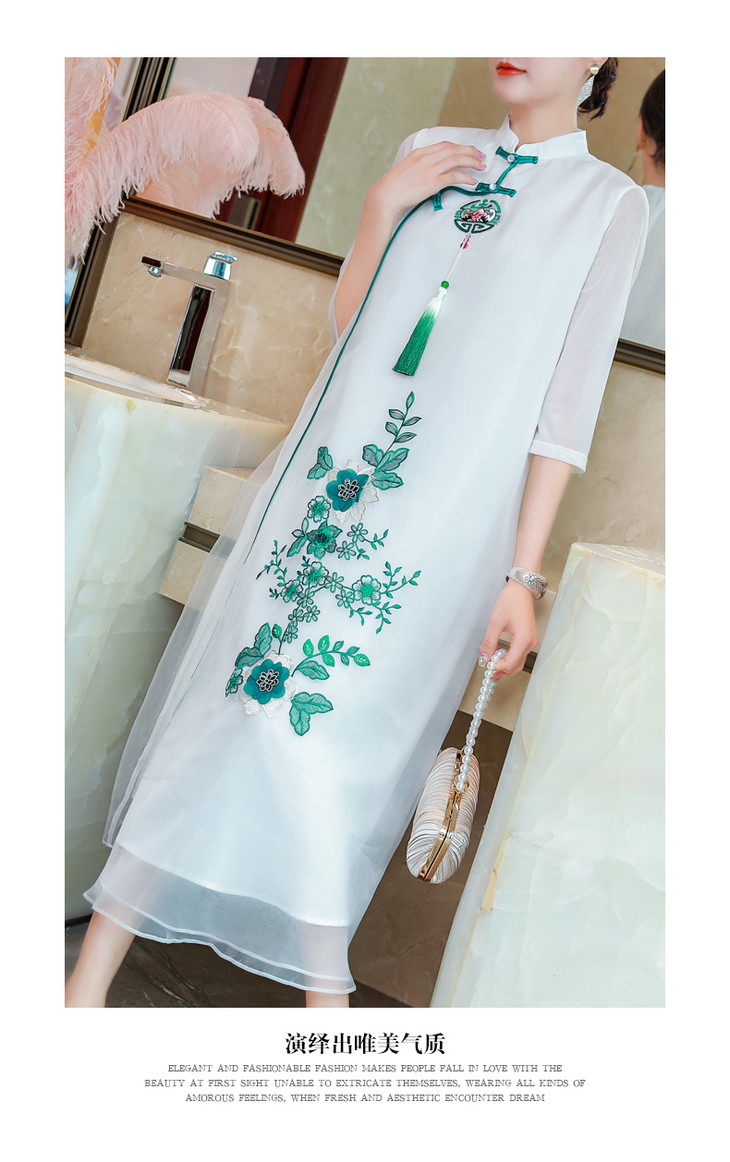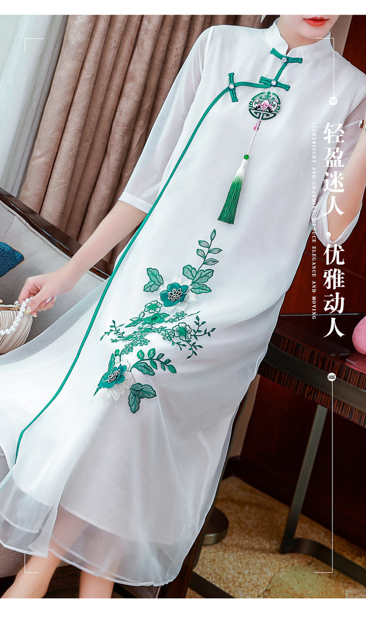 AH-20602中国风现代改良版年轻款甜美长款旗袍裙子