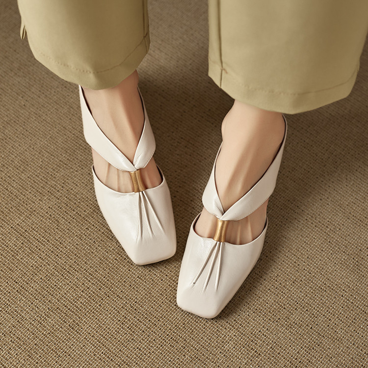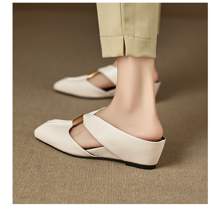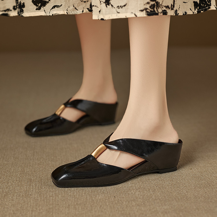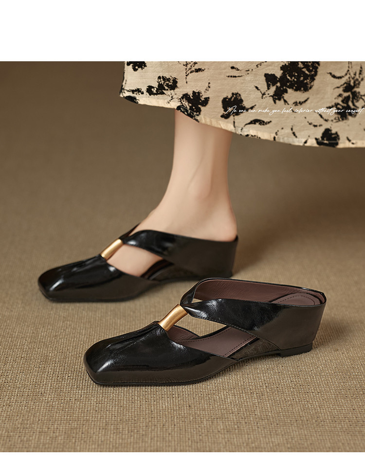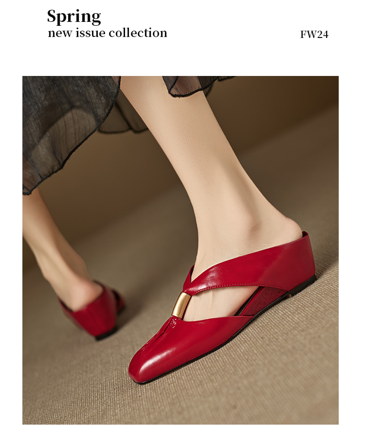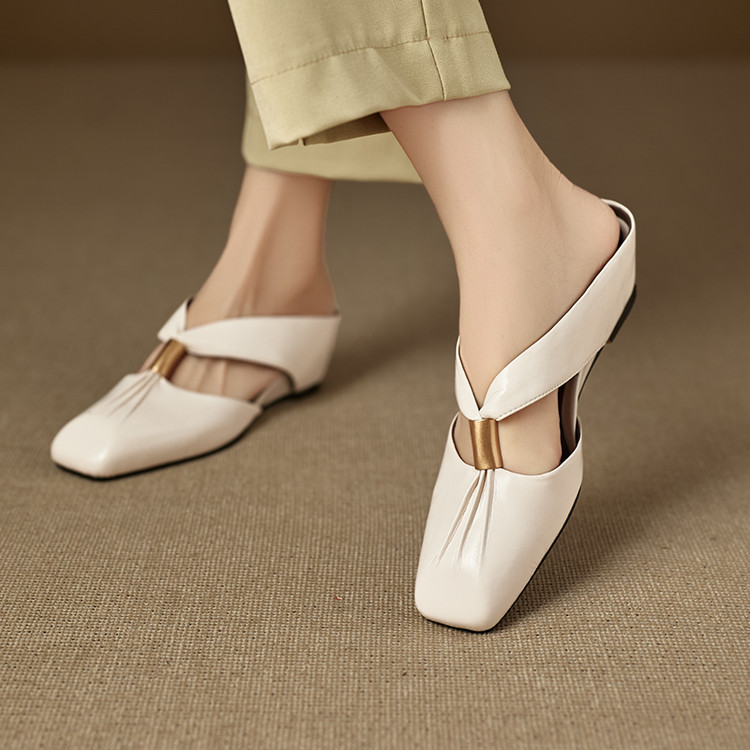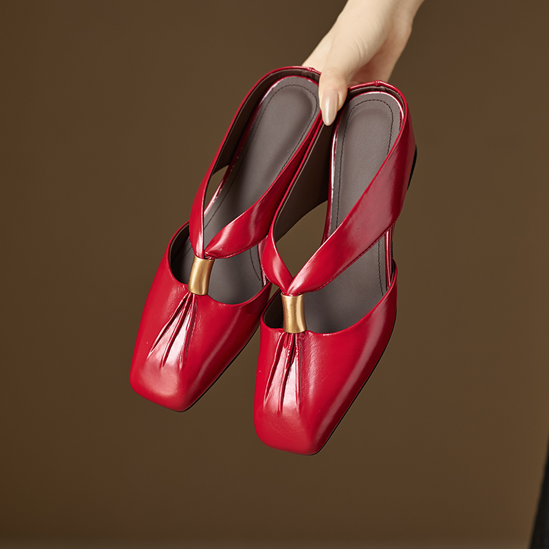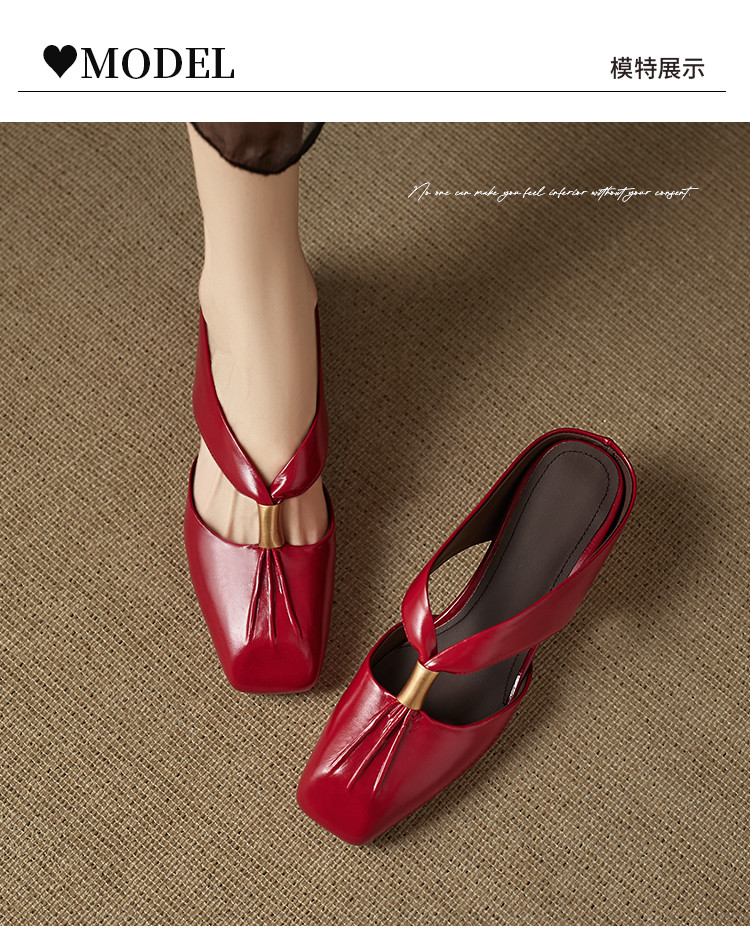 【预售5天】羊皮版~内增高褶皱包头拖鞋女新款法式复古外穿半拖凉拖鞋CQSJ&H-8255