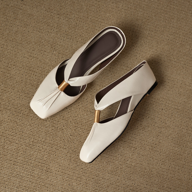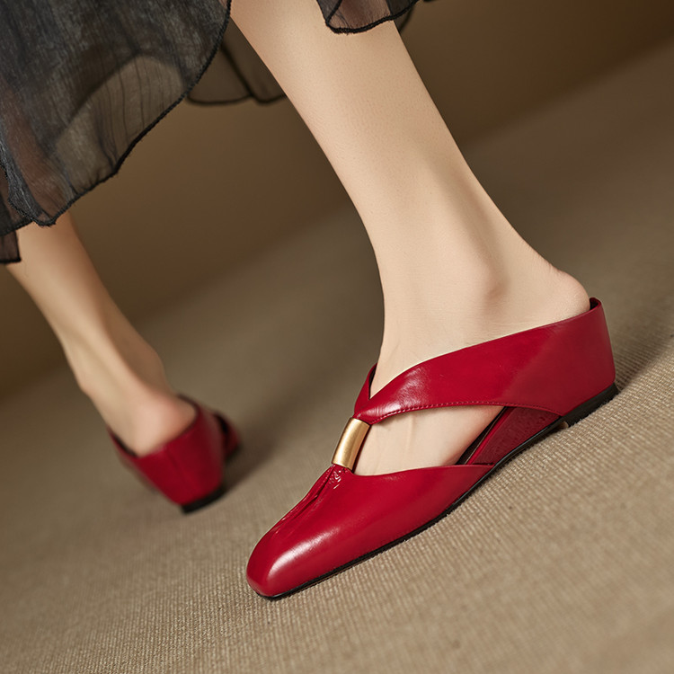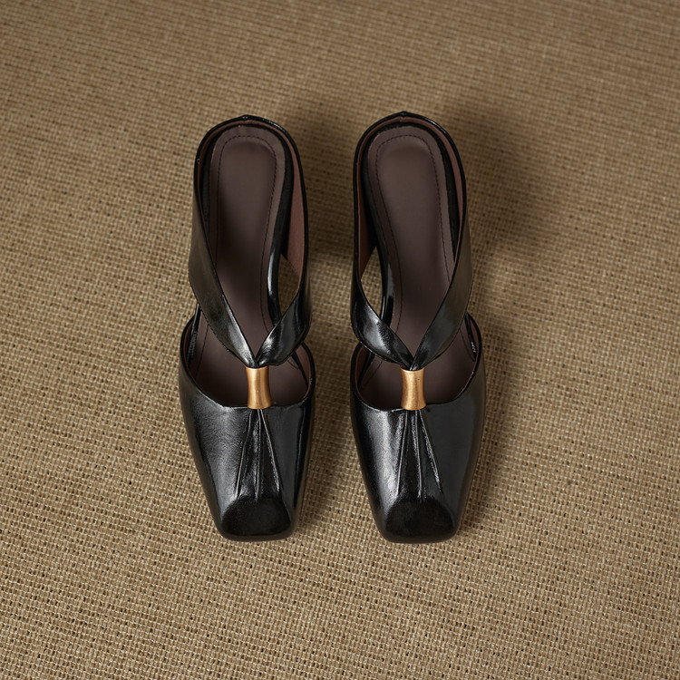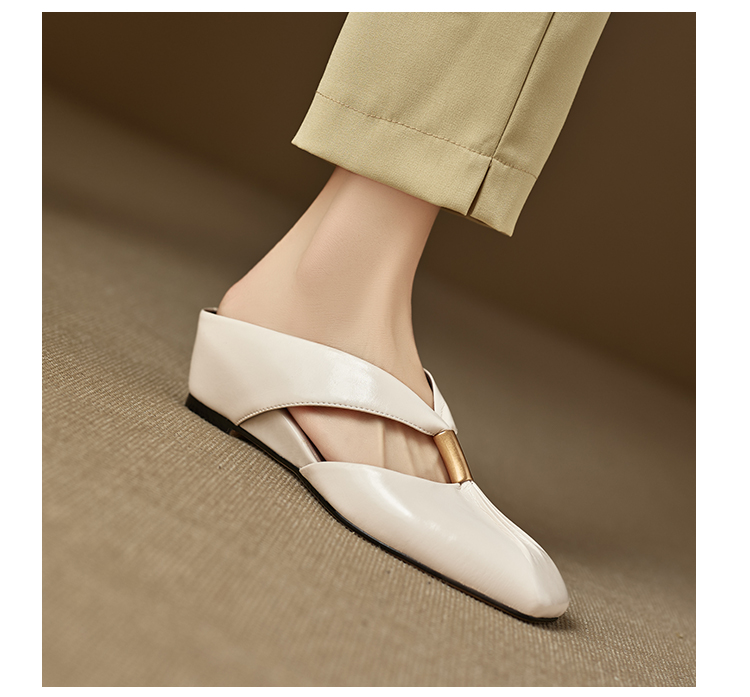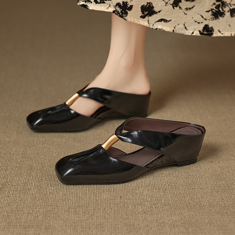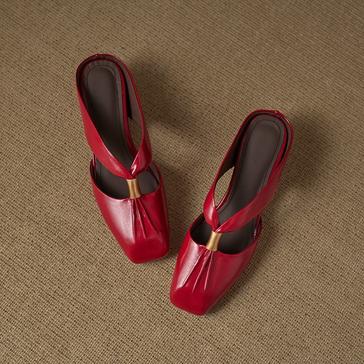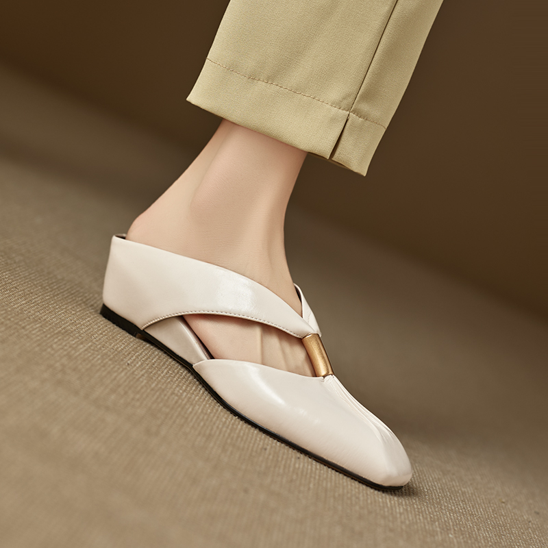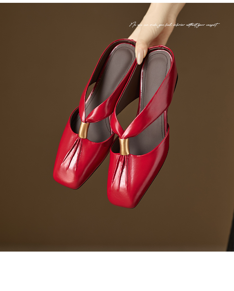 【预售5天】羊皮版~内增高褶皱包头拖鞋女新款法式复古外穿半拖凉拖鞋CQSJ&H-8255