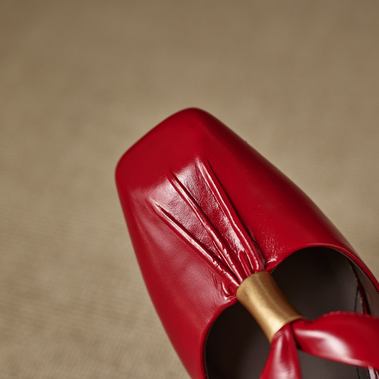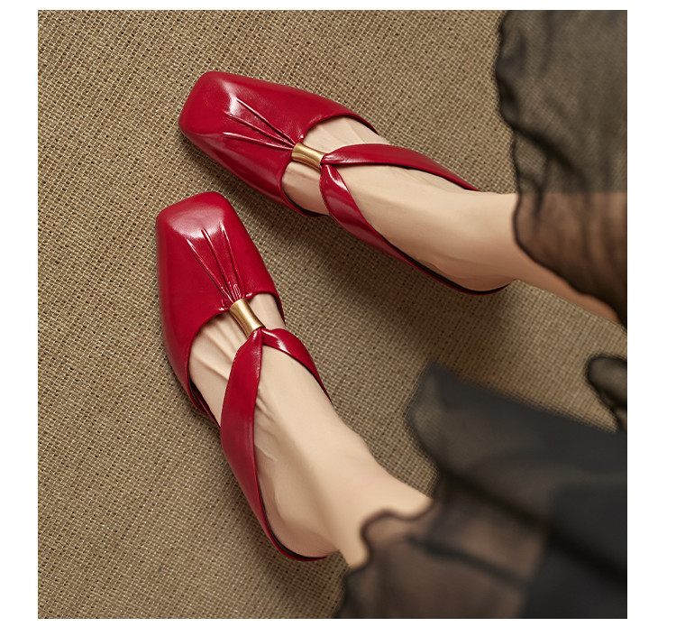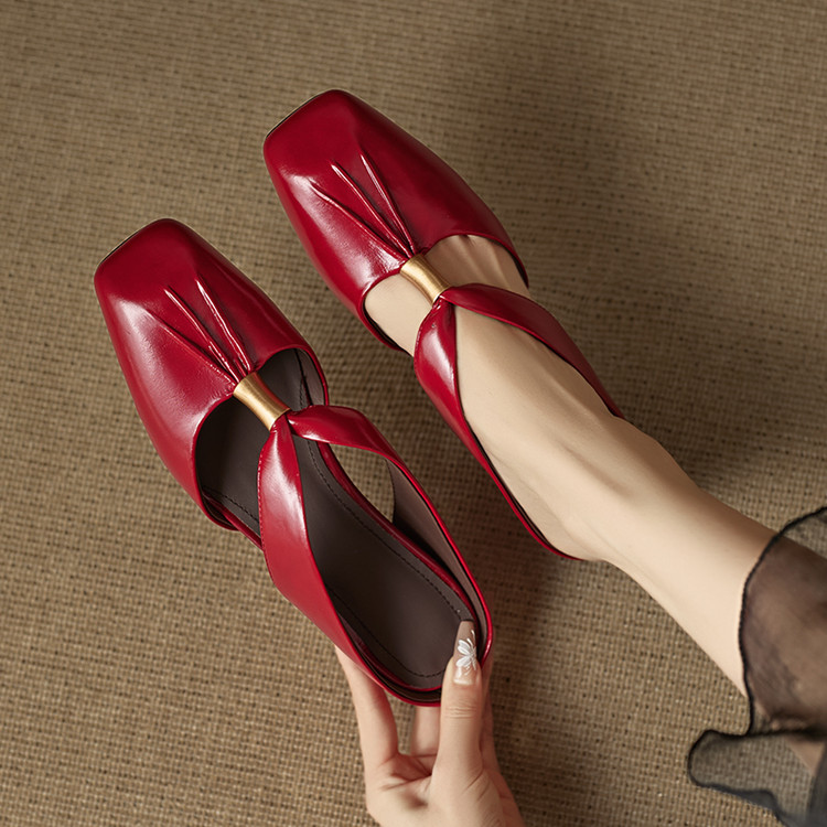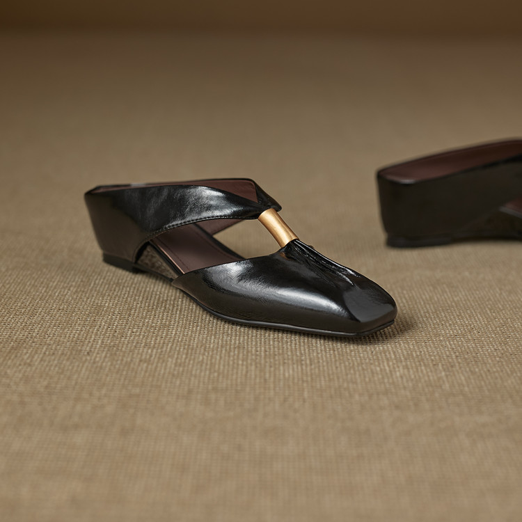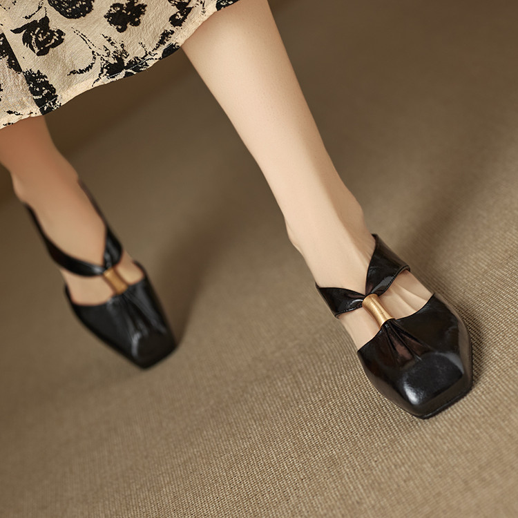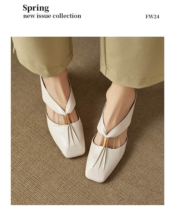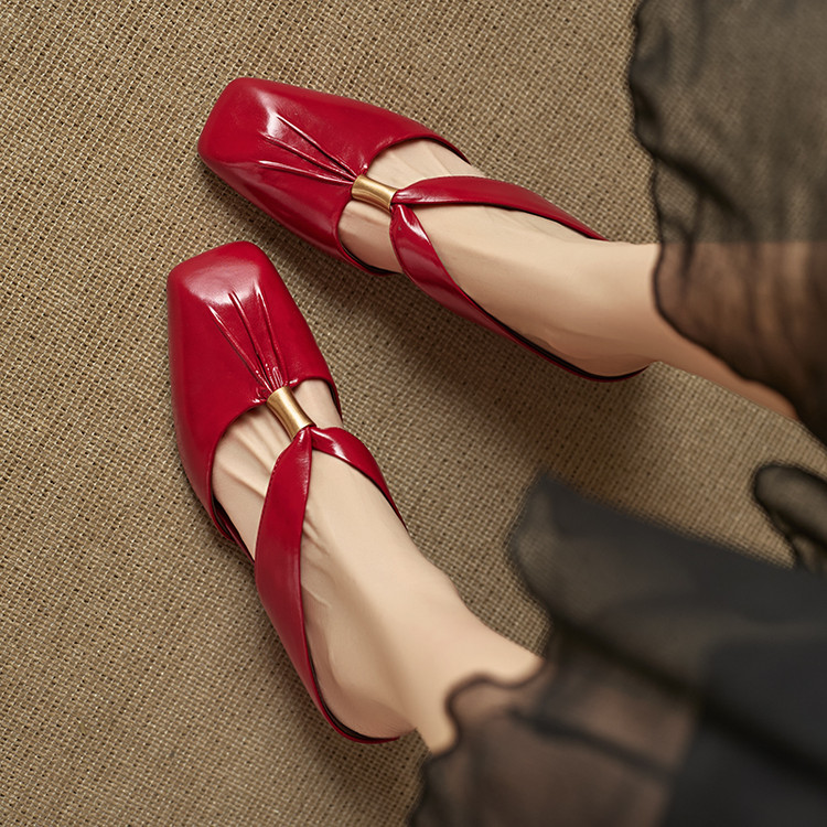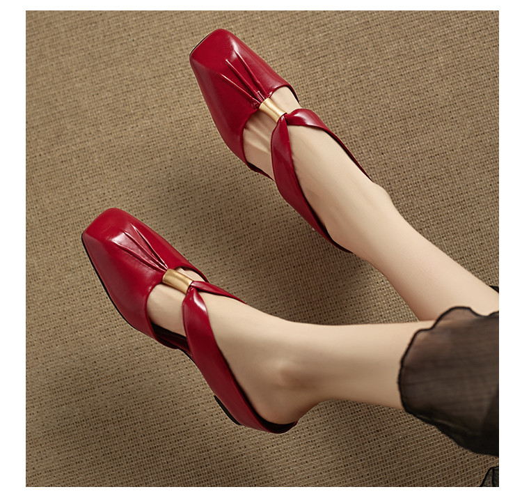 【预售5天】羊皮版~内增高褶皱包头拖鞋女新款法式复古外穿半拖凉拖鞋CQSJ&H-8255