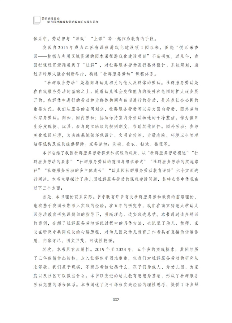 幼儿园劳动教育丛书 劳动润泽童心 幼儿园社群服务劳动教育的实践与思考 江苏省十四五时期出版物出版规划项目 江苏凤凰教育出版社