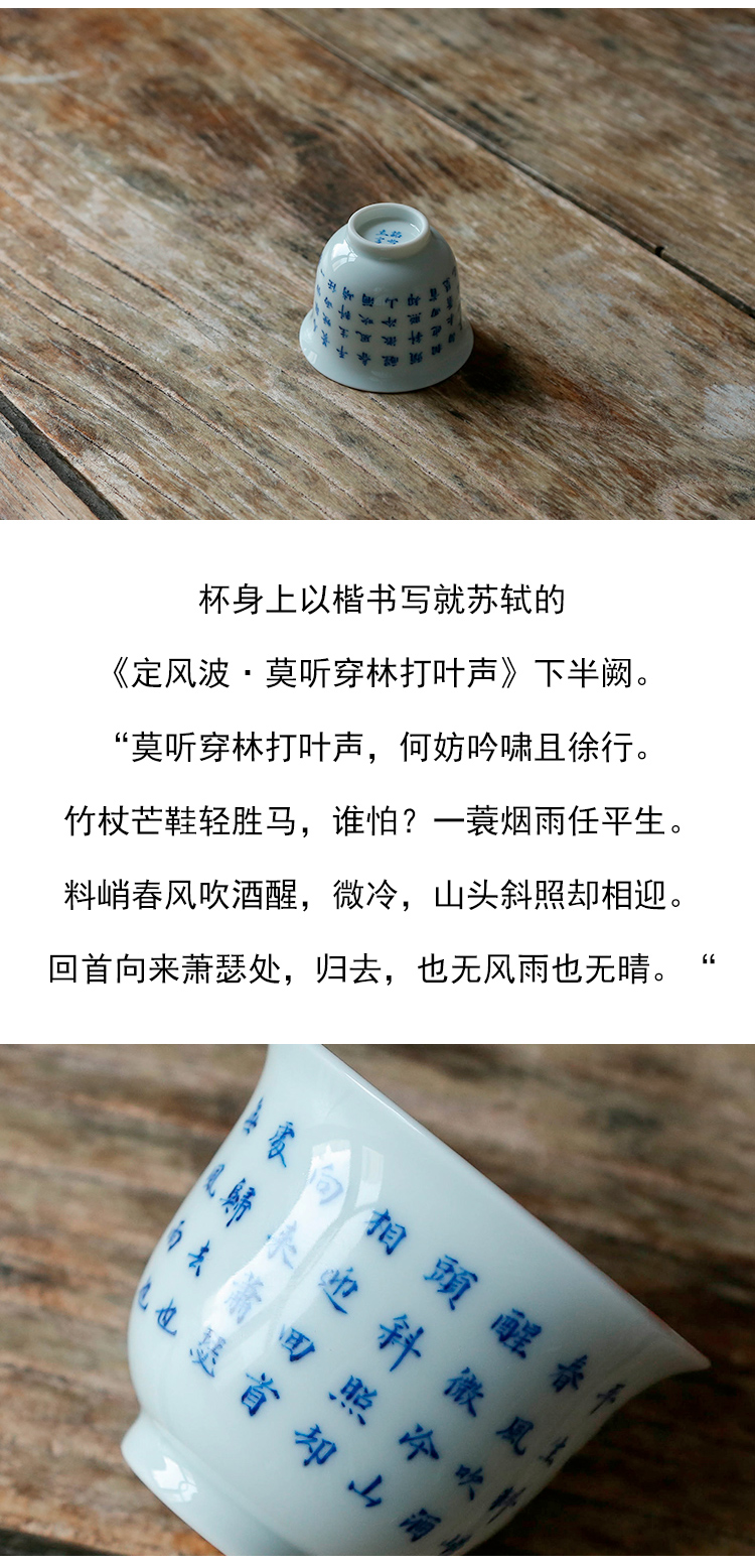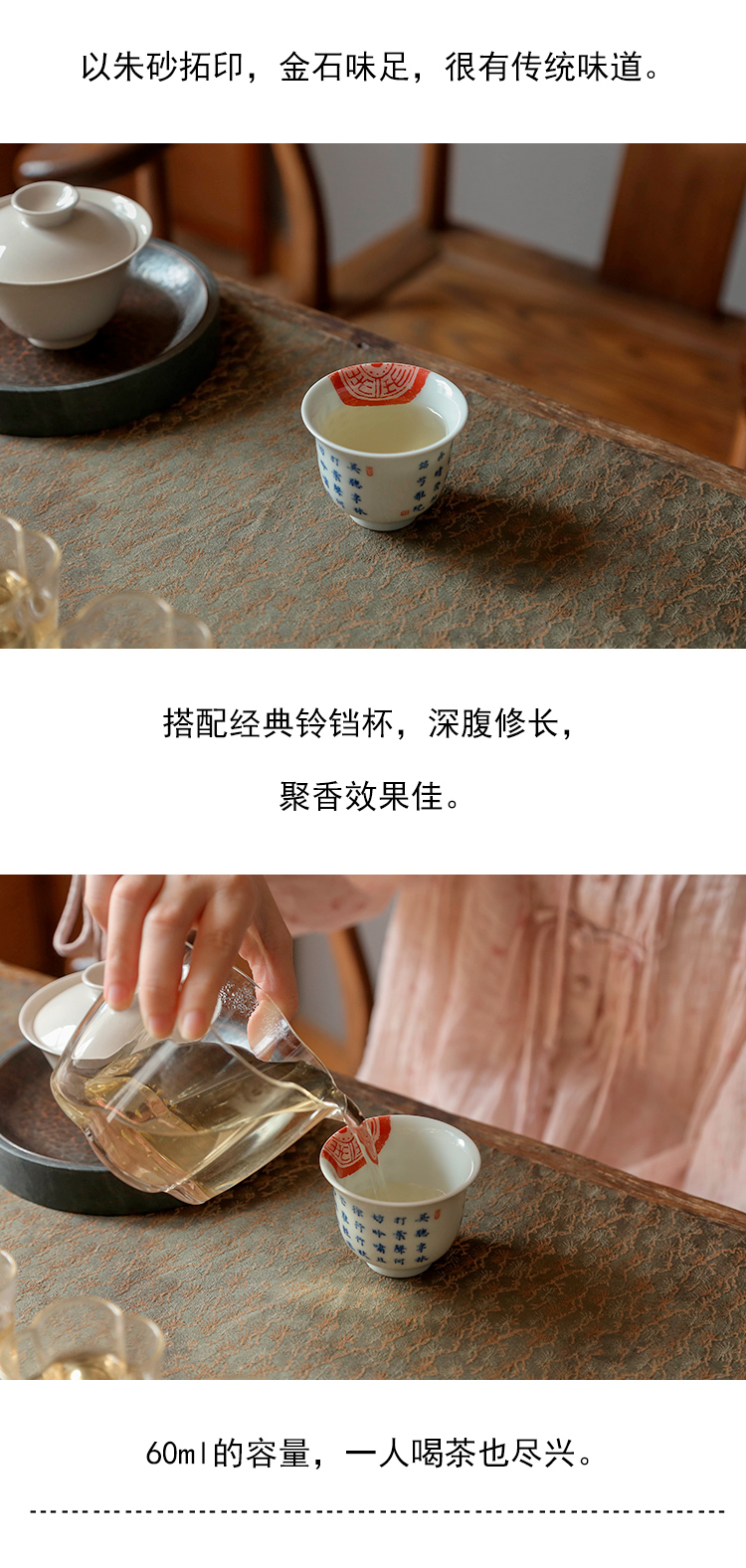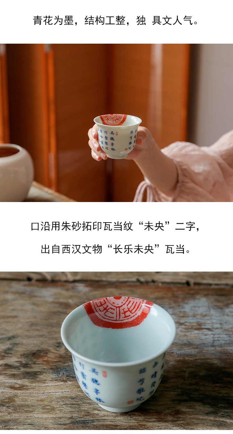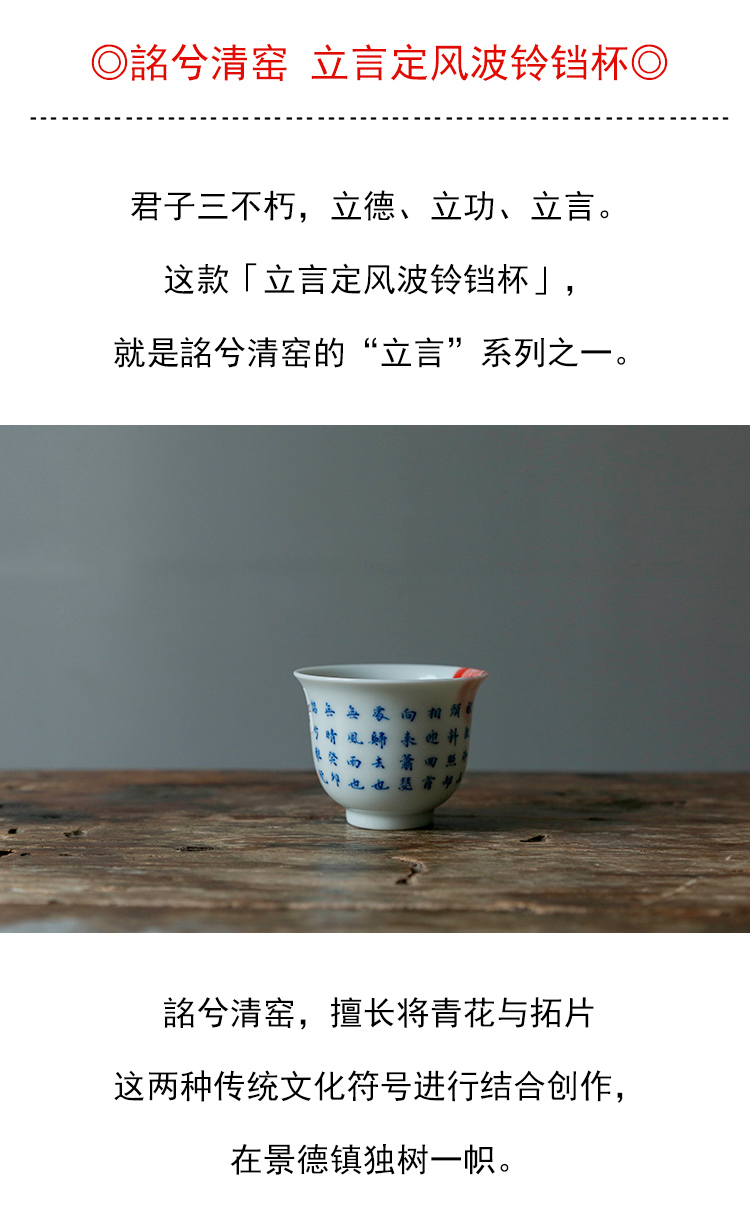 茶香记 詺兮清窑 立言定风波铃铛杯 朱砂拓印 青花手书 文人器物 茶杯