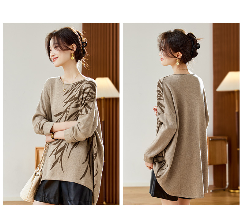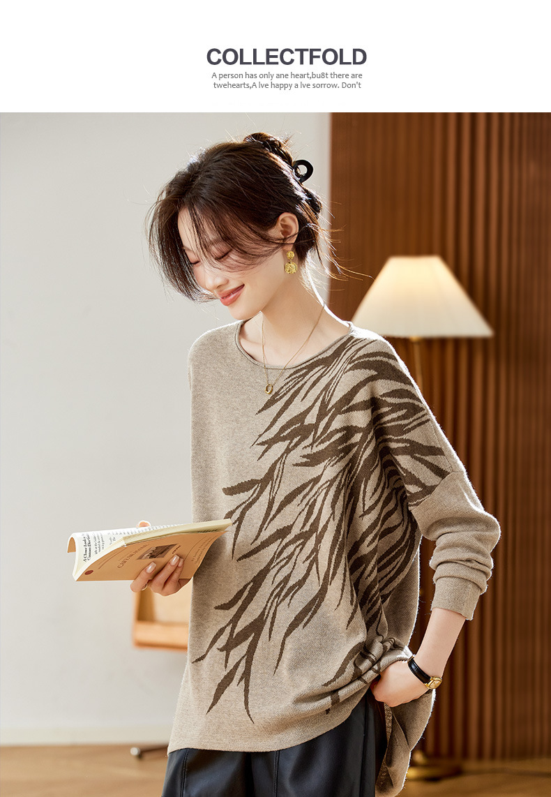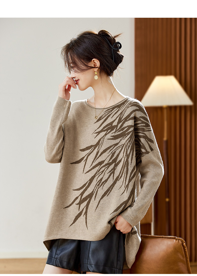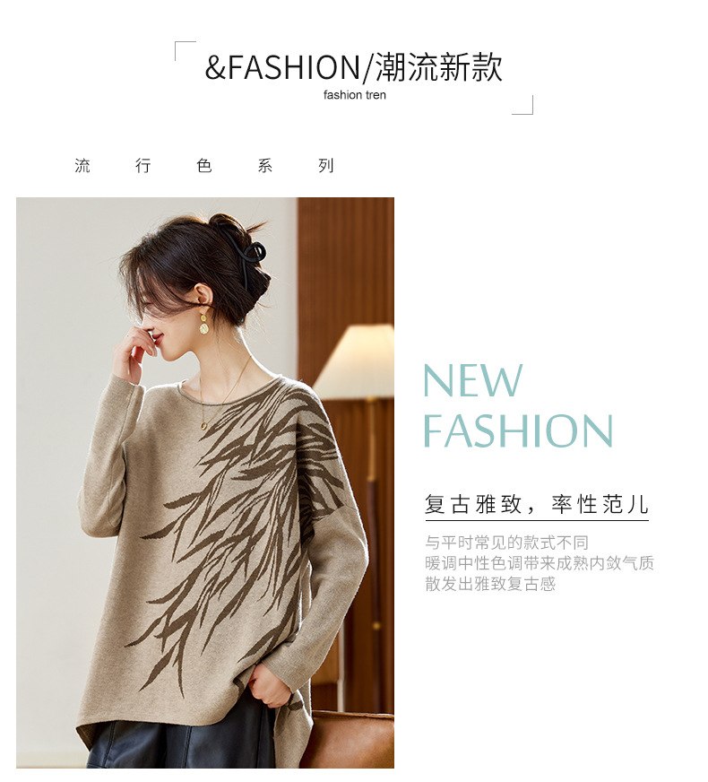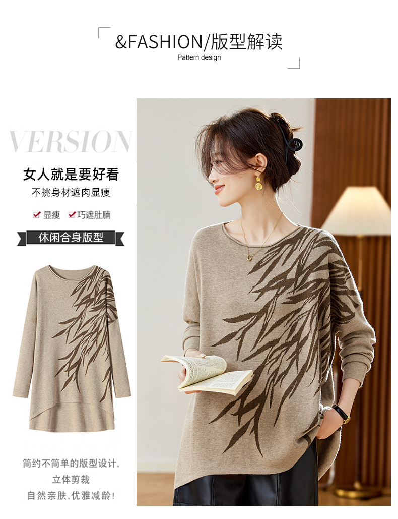 97-3031-208圆领慵懒风毛衣2025春秋冬印花内搭宽松打底衫高级感针织衫女上衣