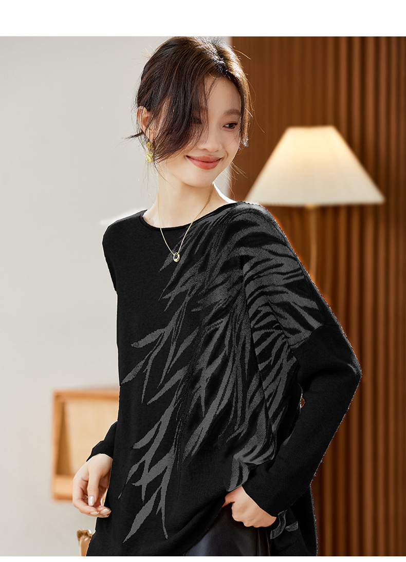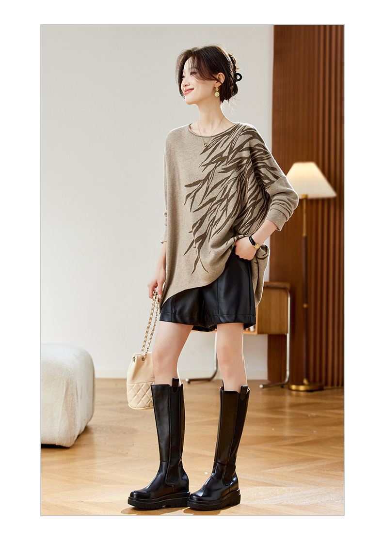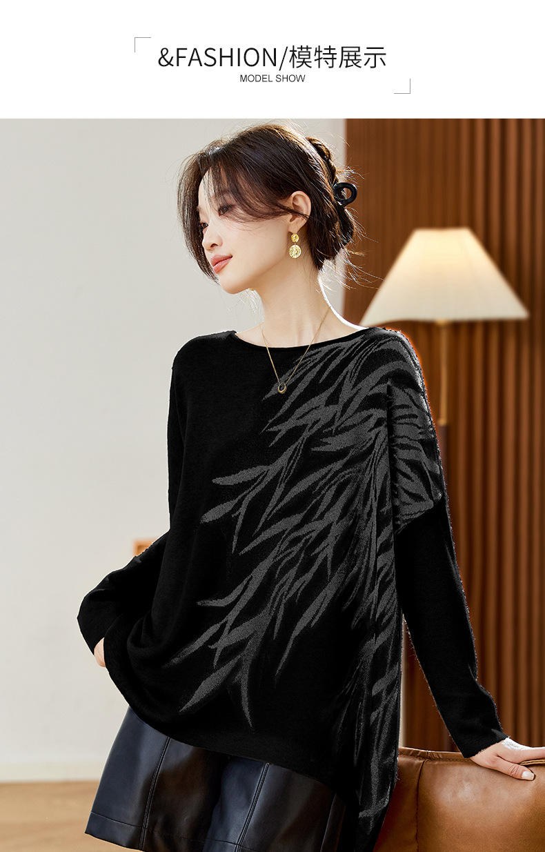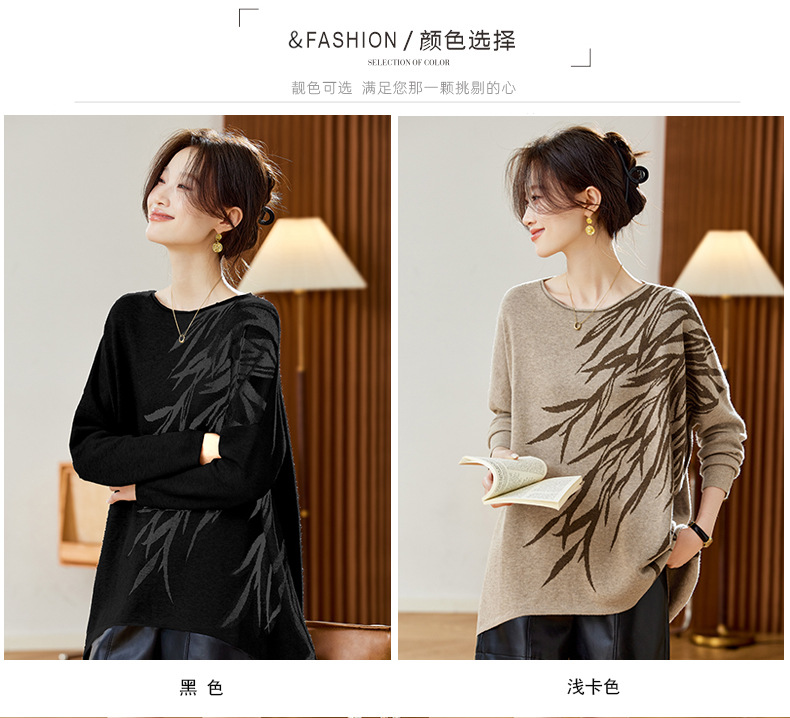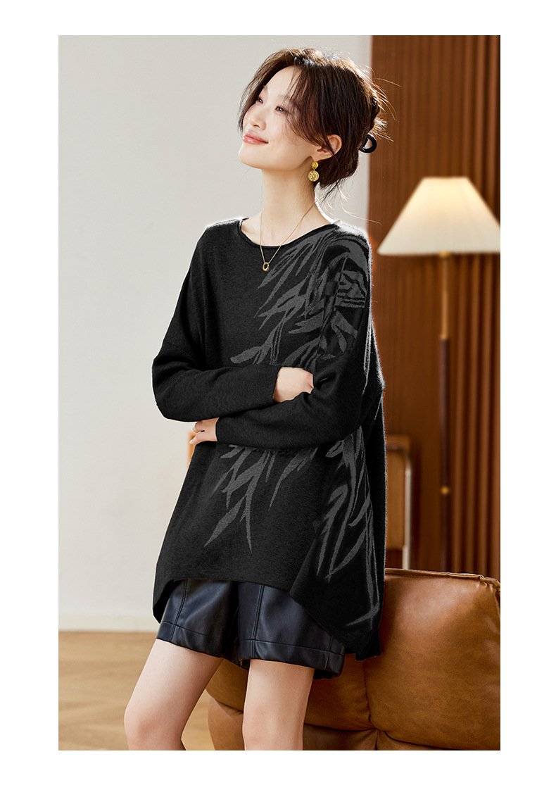 97-3031-208圆领慵懒风毛衣2025春秋冬印花内搭宽松打底衫高级感针织衫女上衣