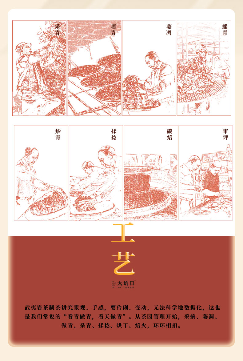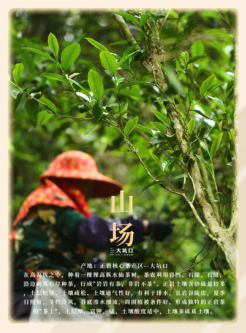 大坑口岩茶有限公司,位于武夷山市-天心村,茶山分布于正岩产区的“三坑、两涧”,由首批非物质文化遗产武夷岩茶制作技艺传承人:苏炳溪和第二批传承人:苏德发先生的精心手工制作,造就了大坑口岩茶的独特品质
