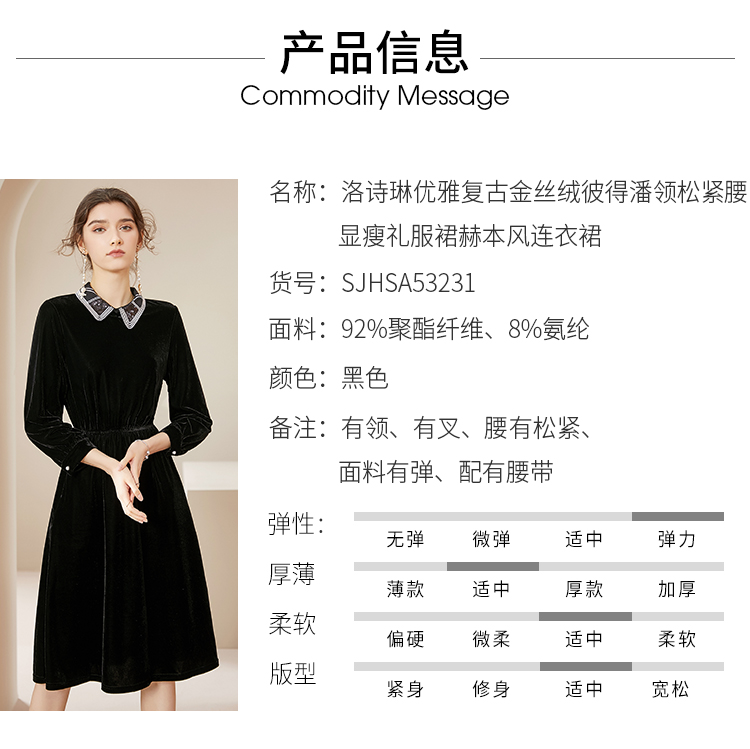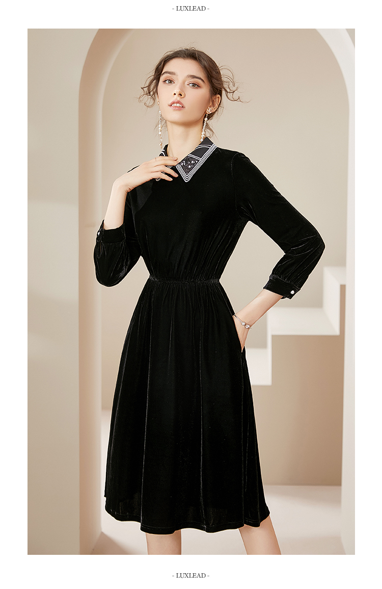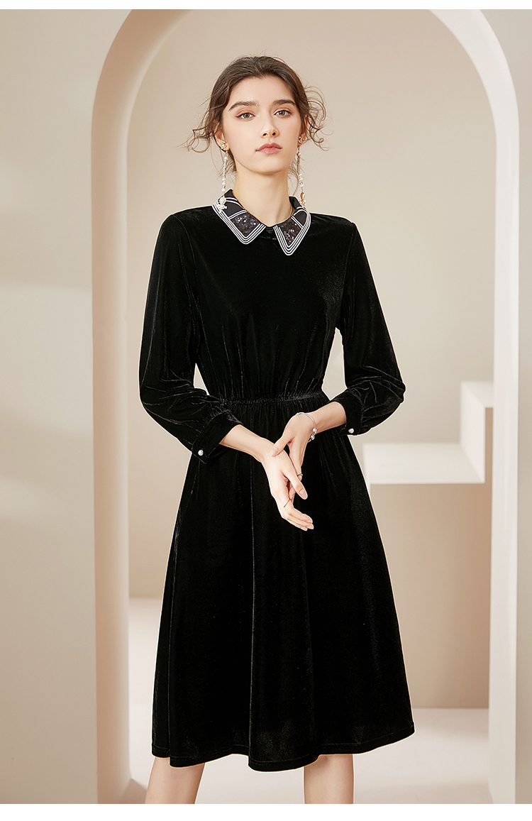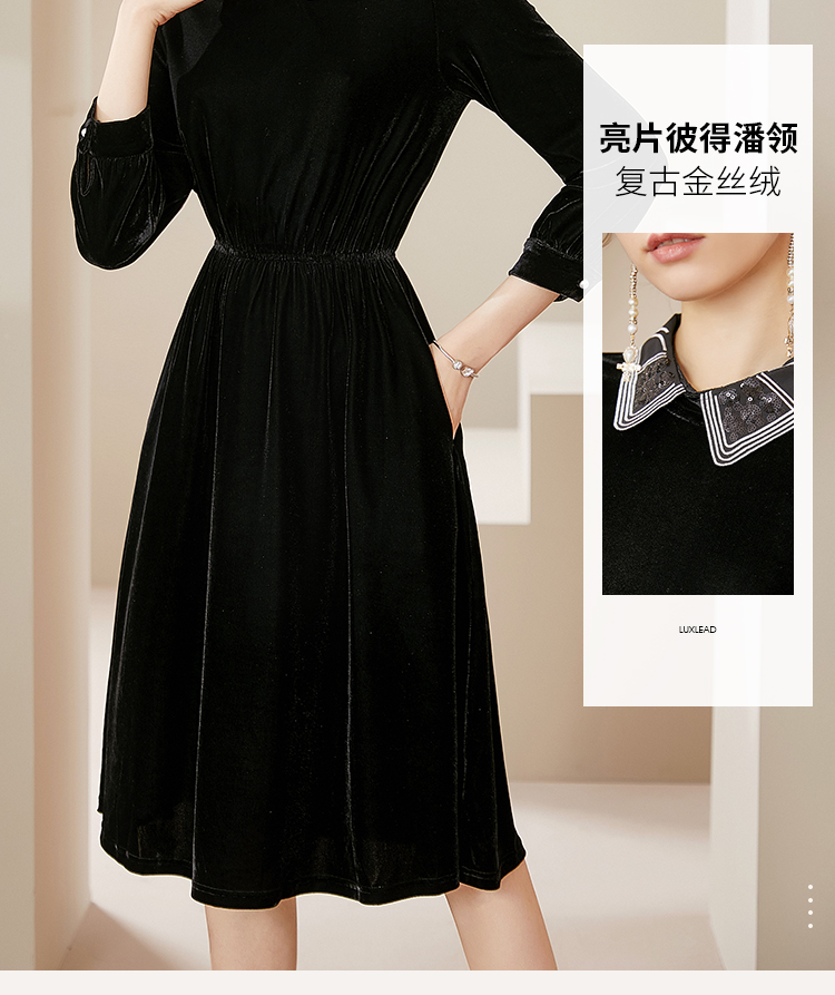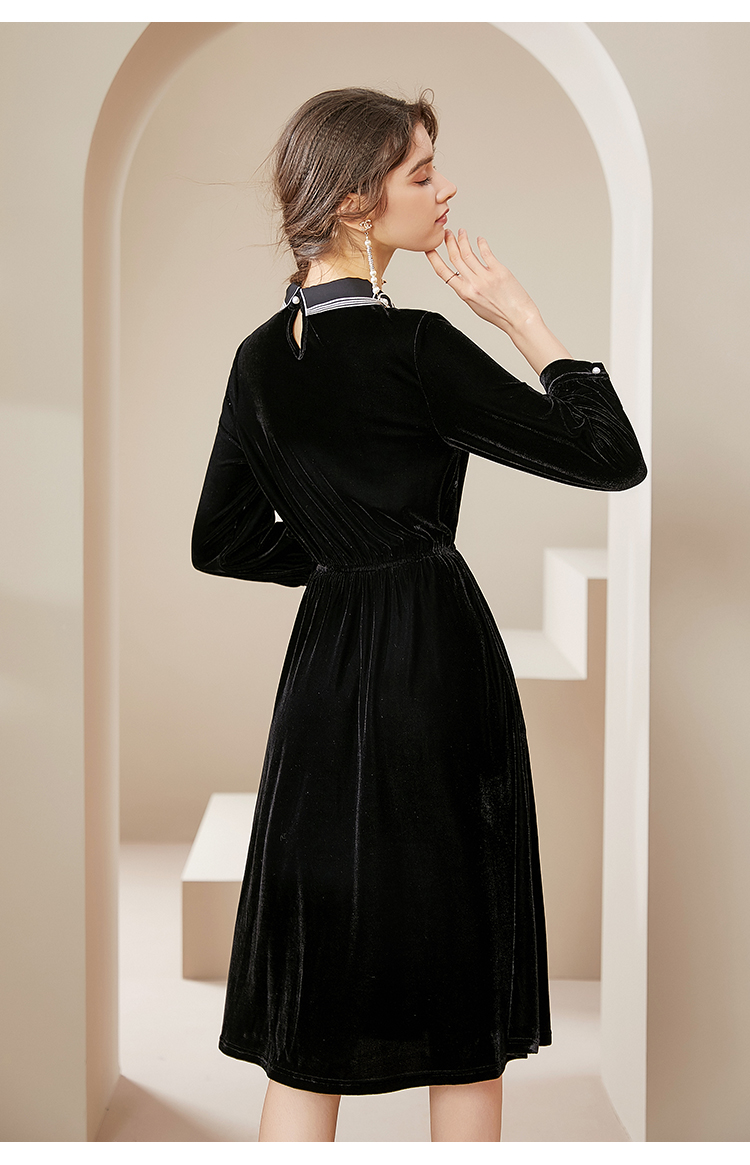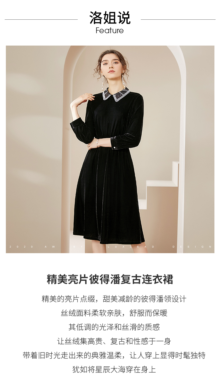 洛诗琳2020秋季新款复古金丝绒彼得潘领松紧腰礼服裙赫本风连衣裙
