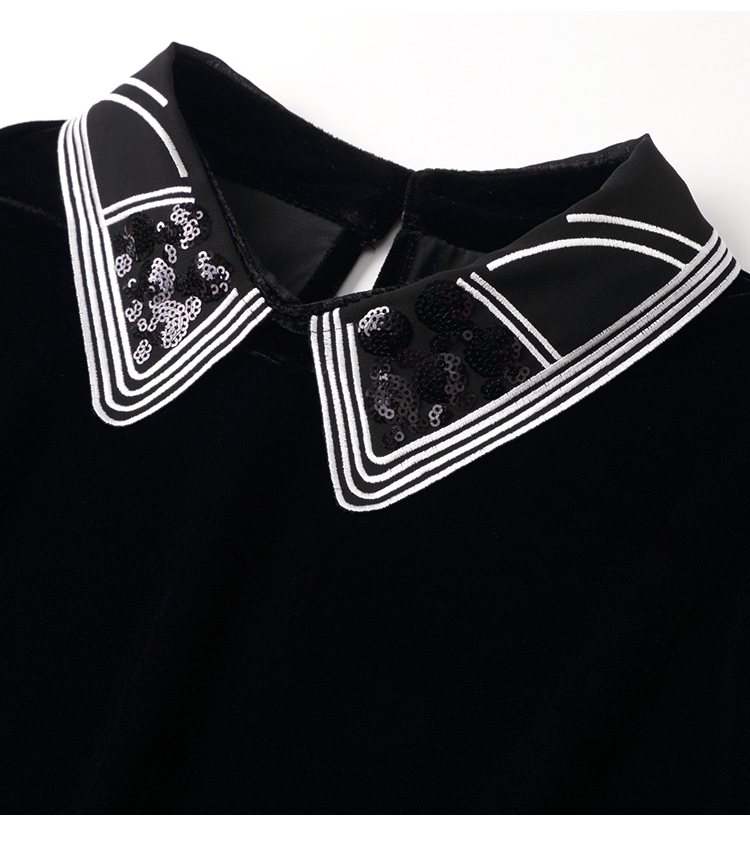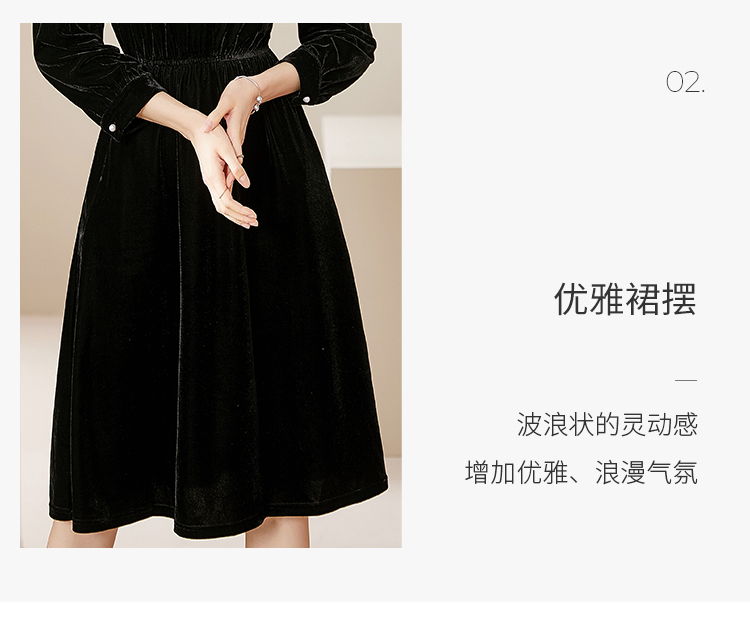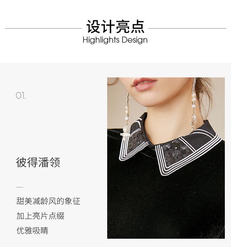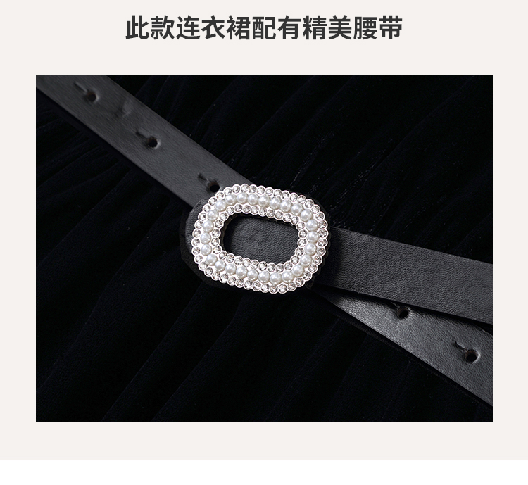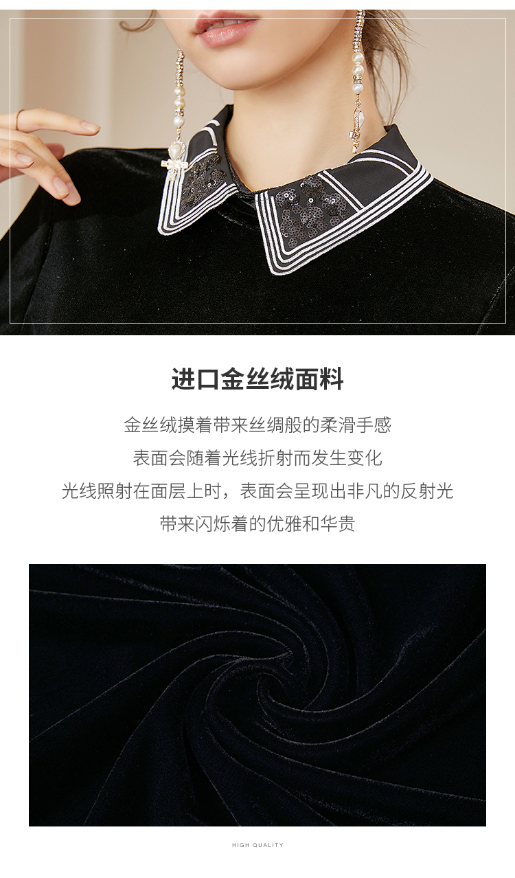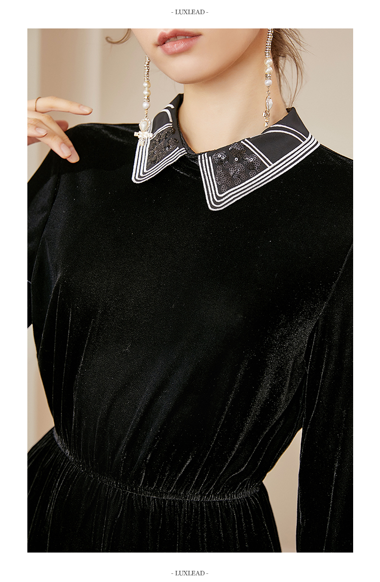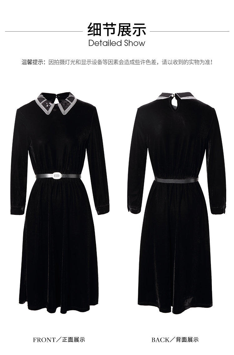 洛诗琳2020秋季新款复古金丝绒彼得潘领松紧腰礼服裙赫本风连衣裙