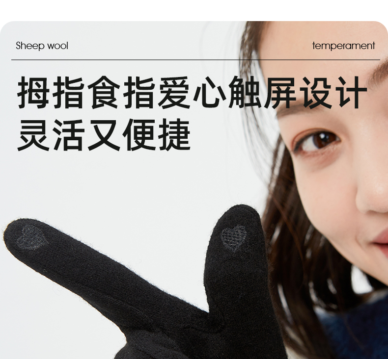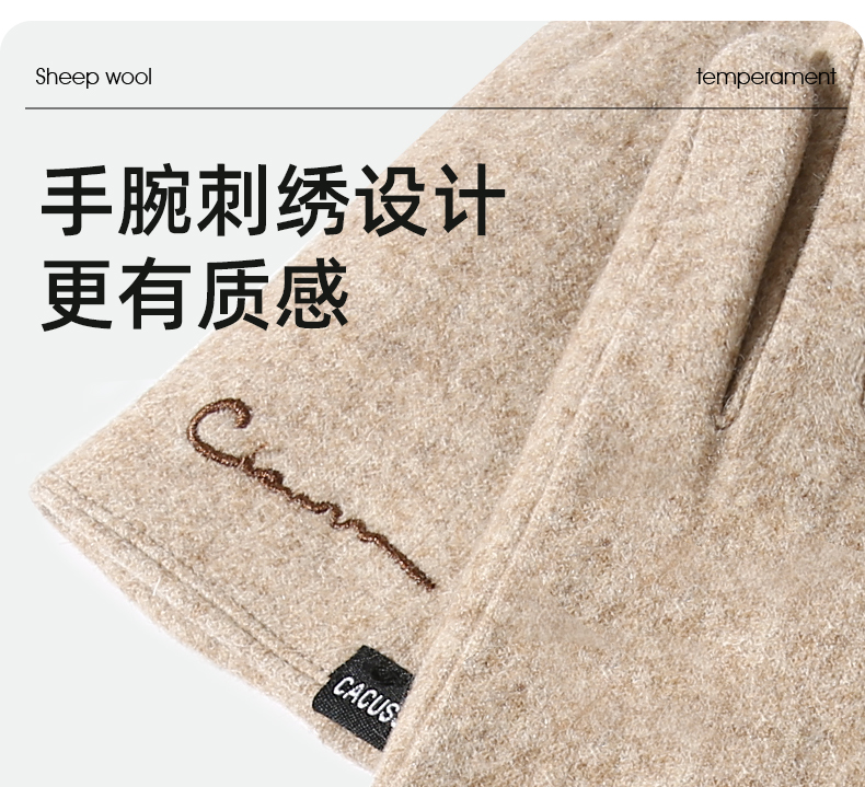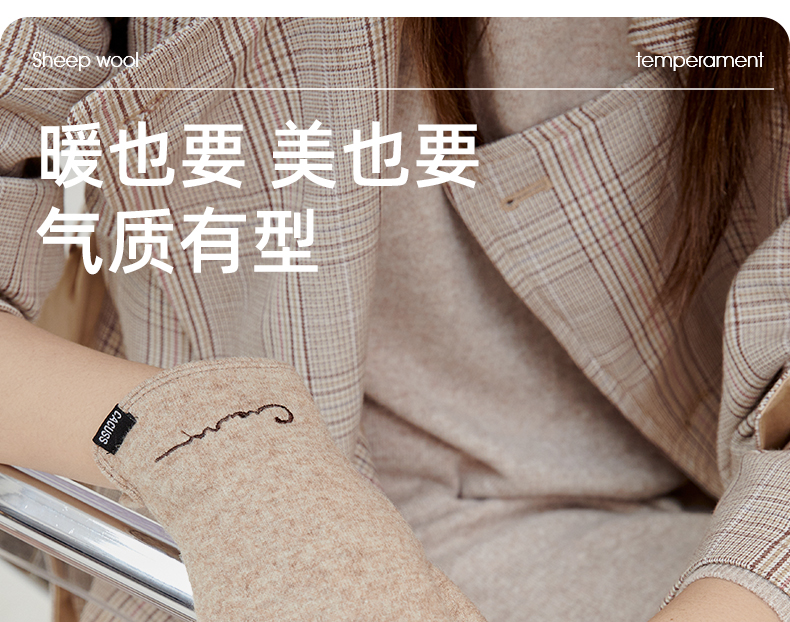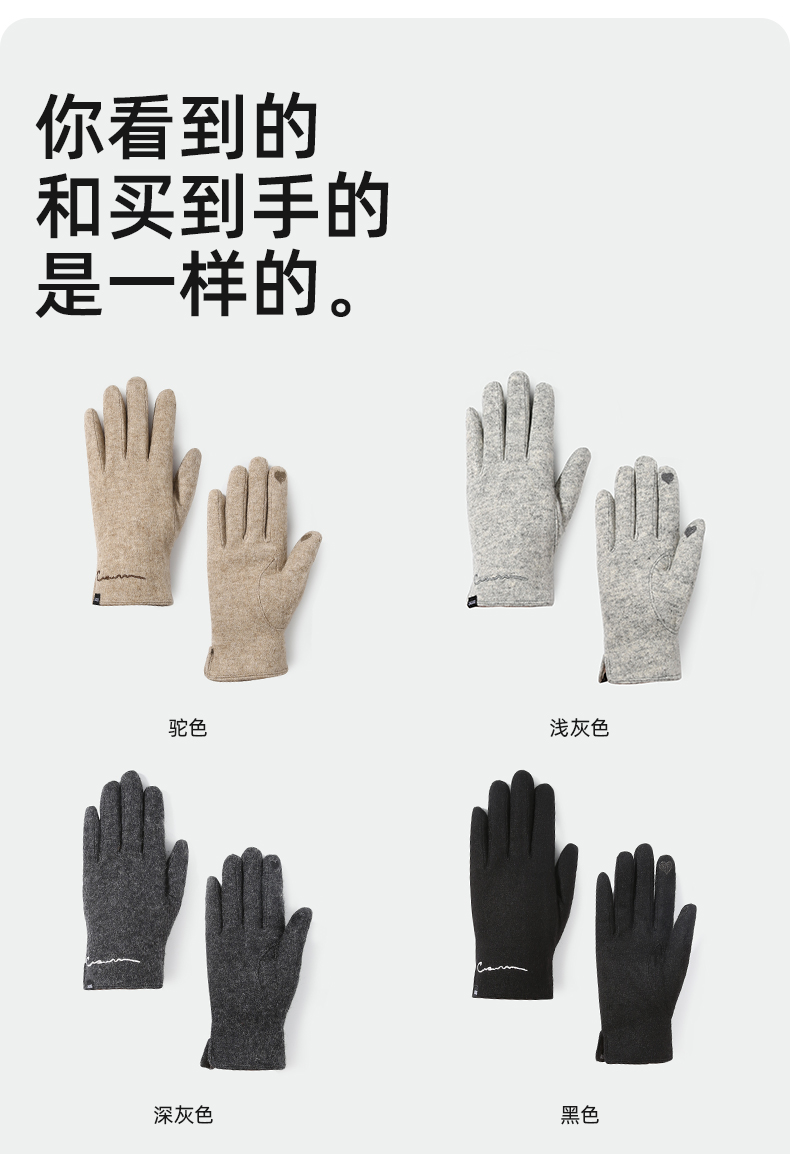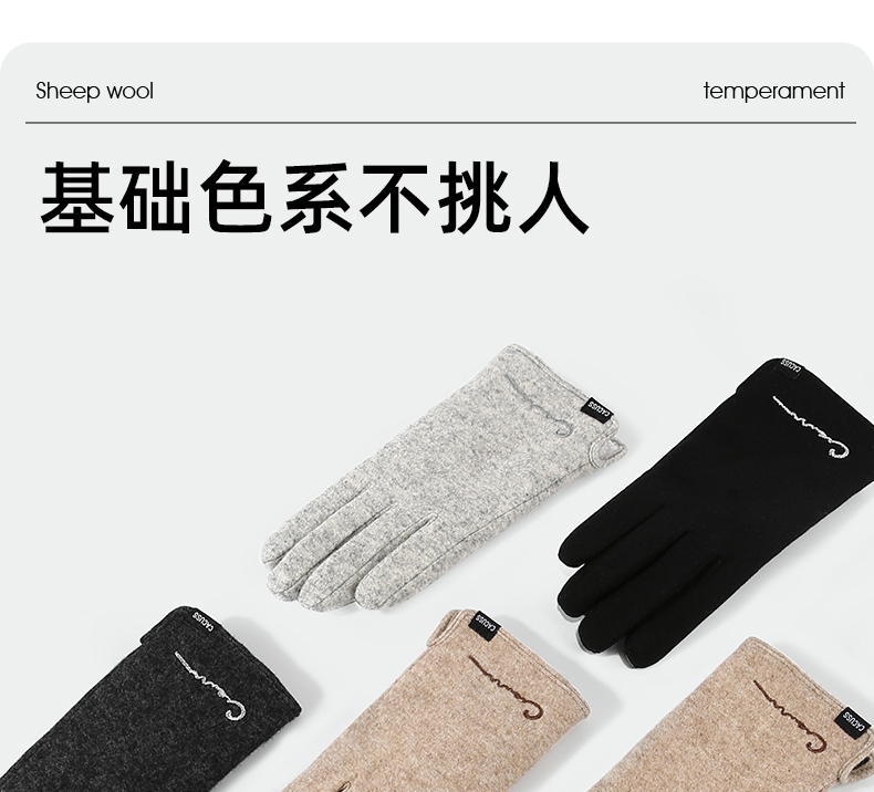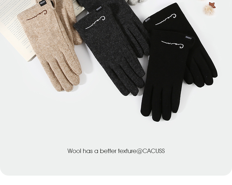 CACUSS冬季绵羊毛手套女 加绒加厚保暖纤细修长 防风防寒 食指拇指可触屏