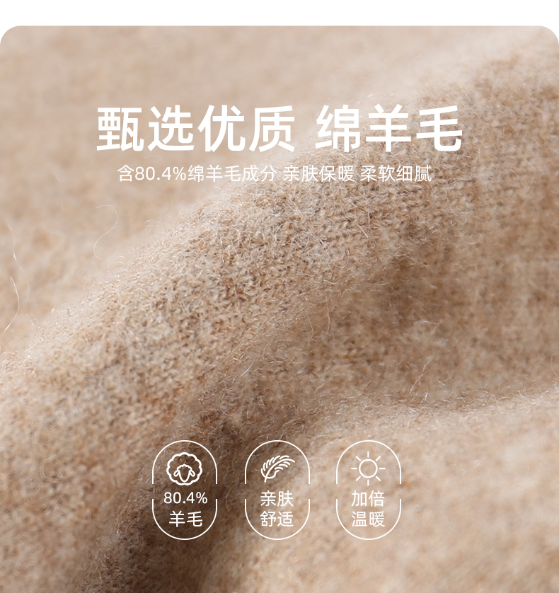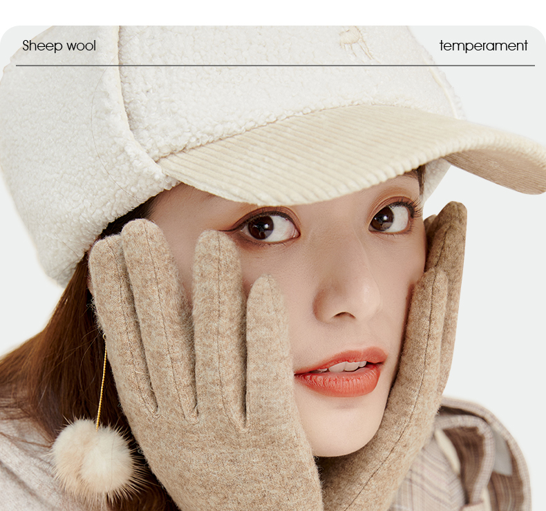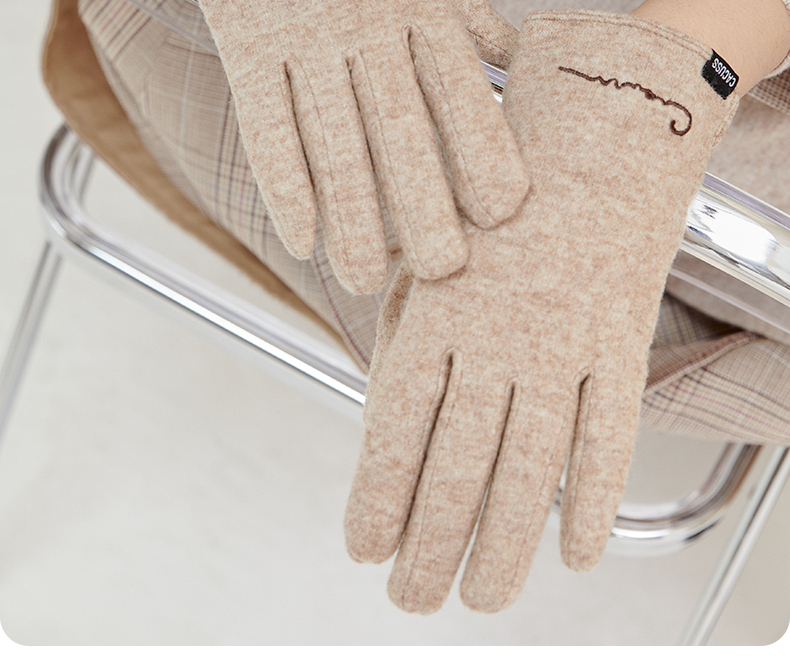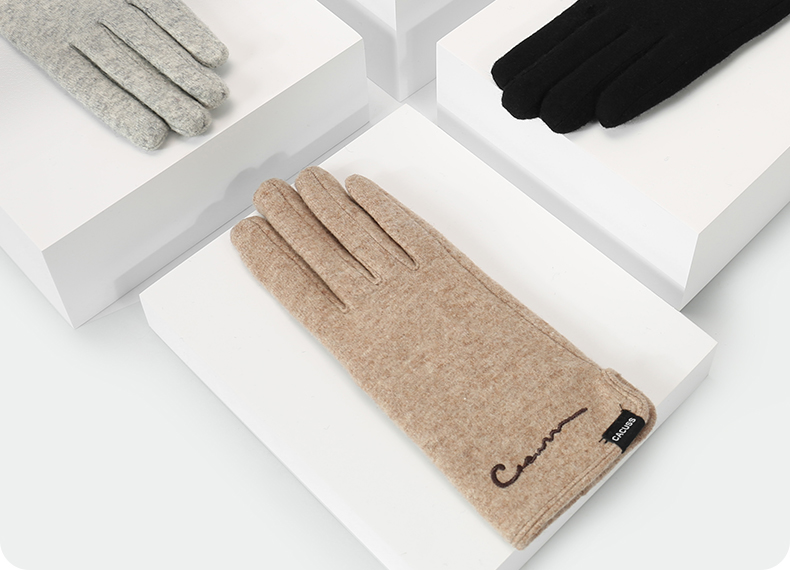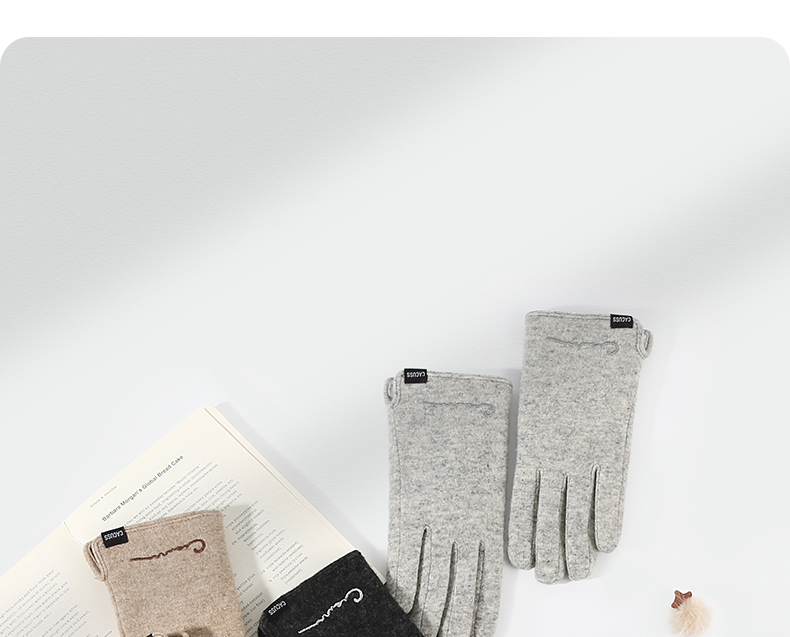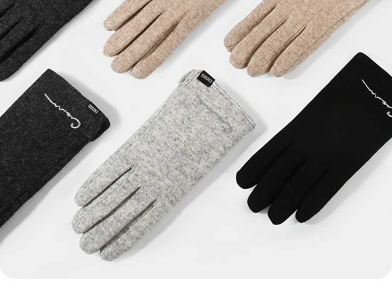 CACUSS冬季绵羊毛手套女 加绒加厚保暖纤细修长 防风防寒 食指拇指可触屏