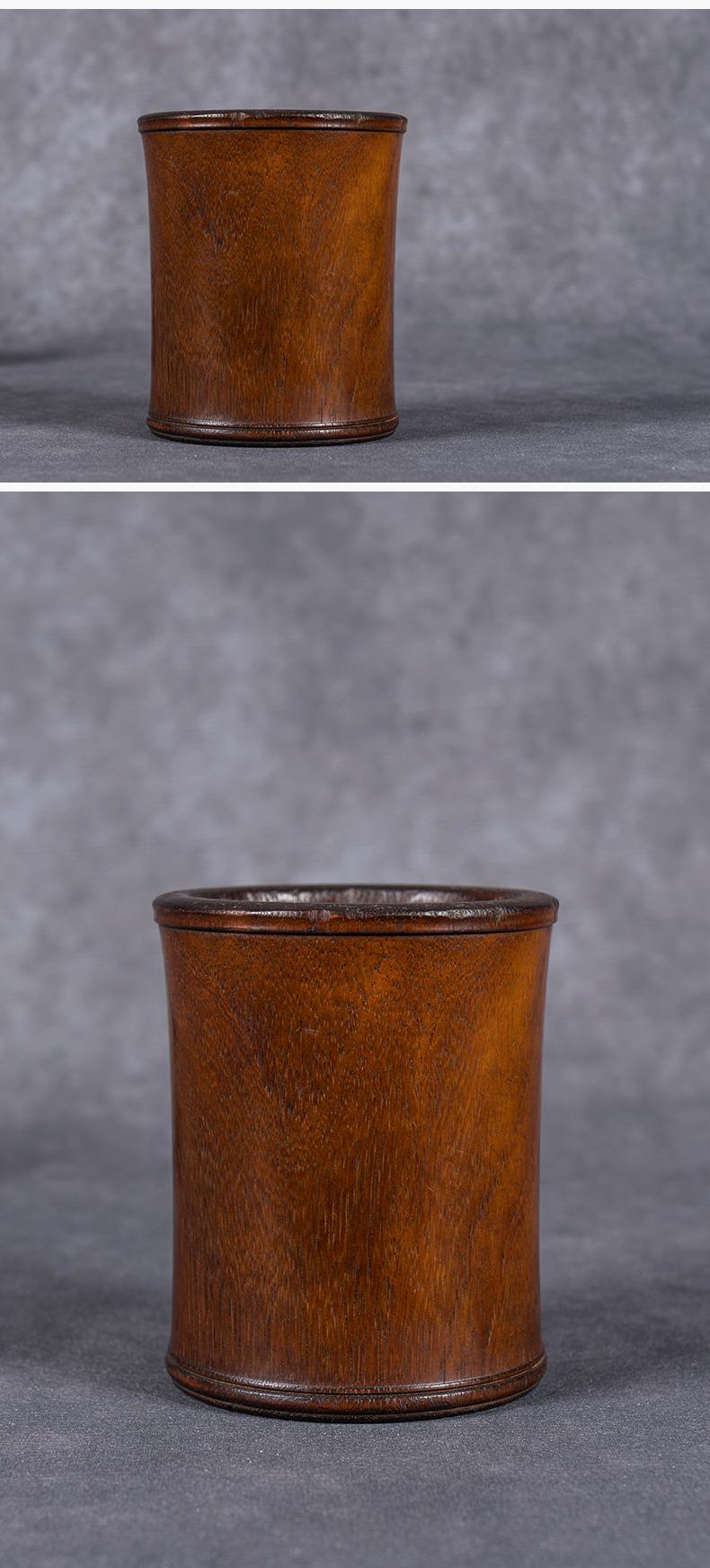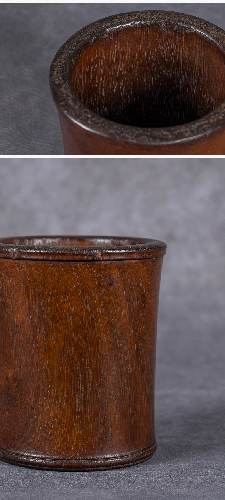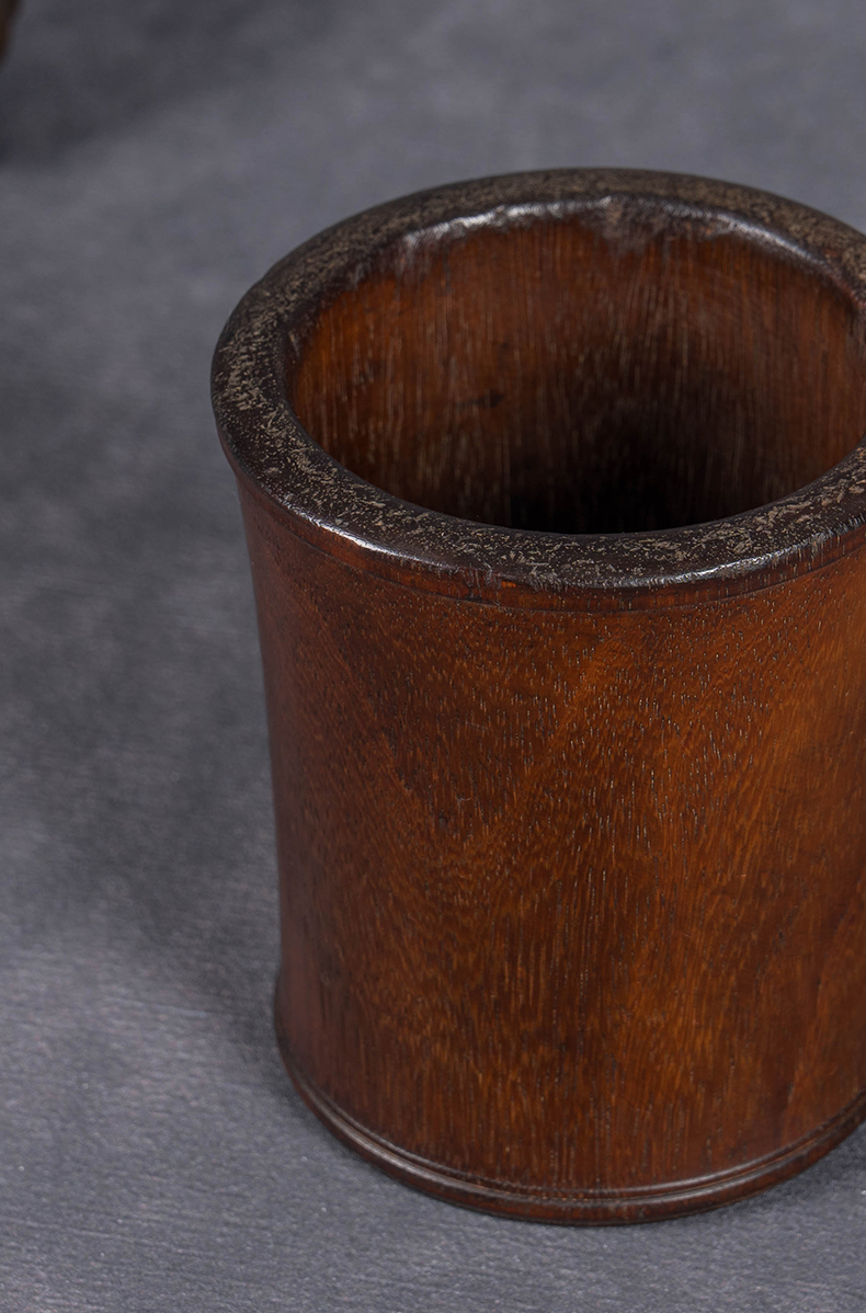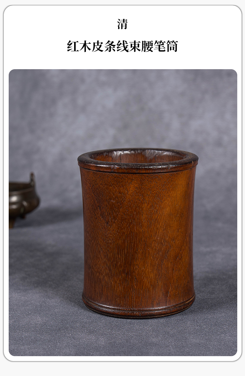清 红木皮条线束腰笔筒