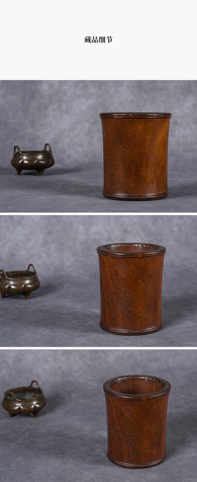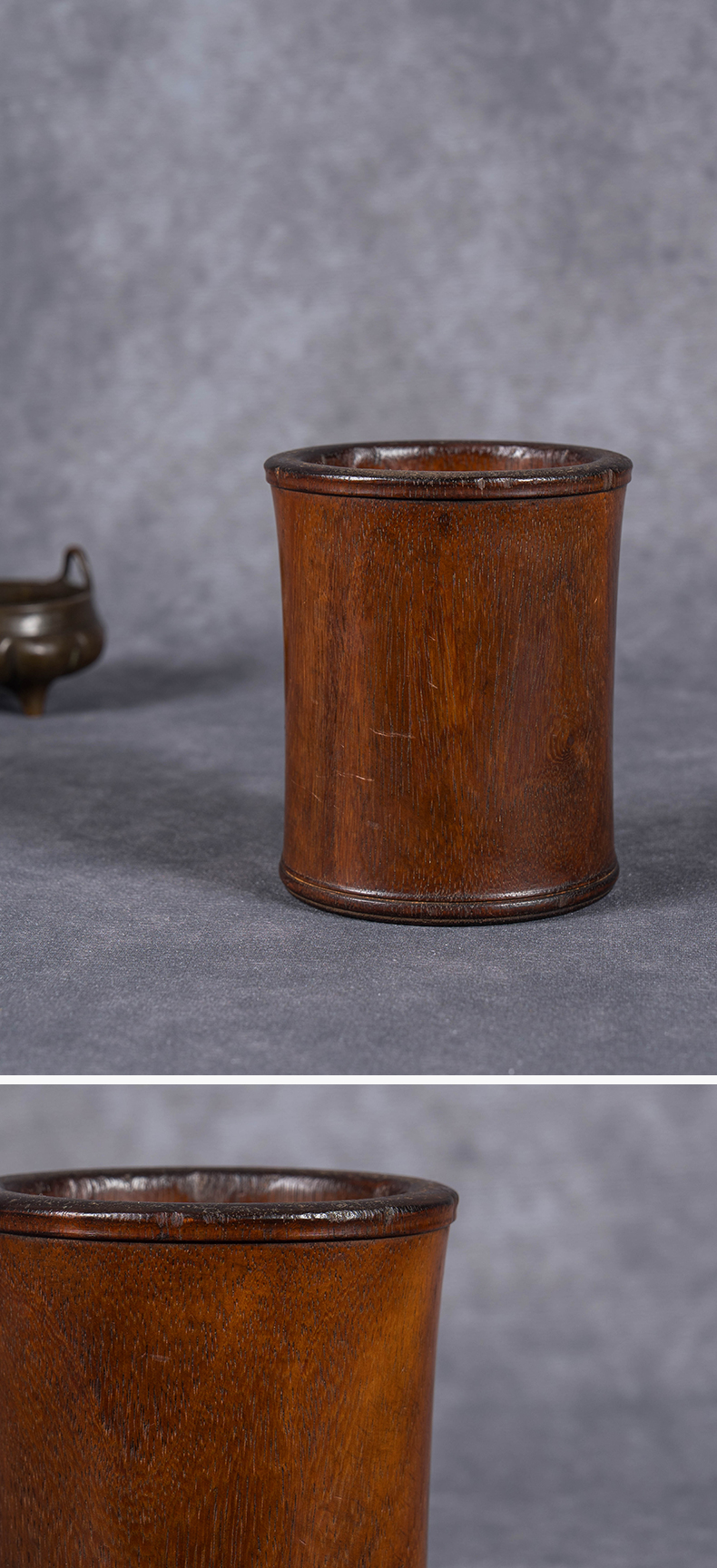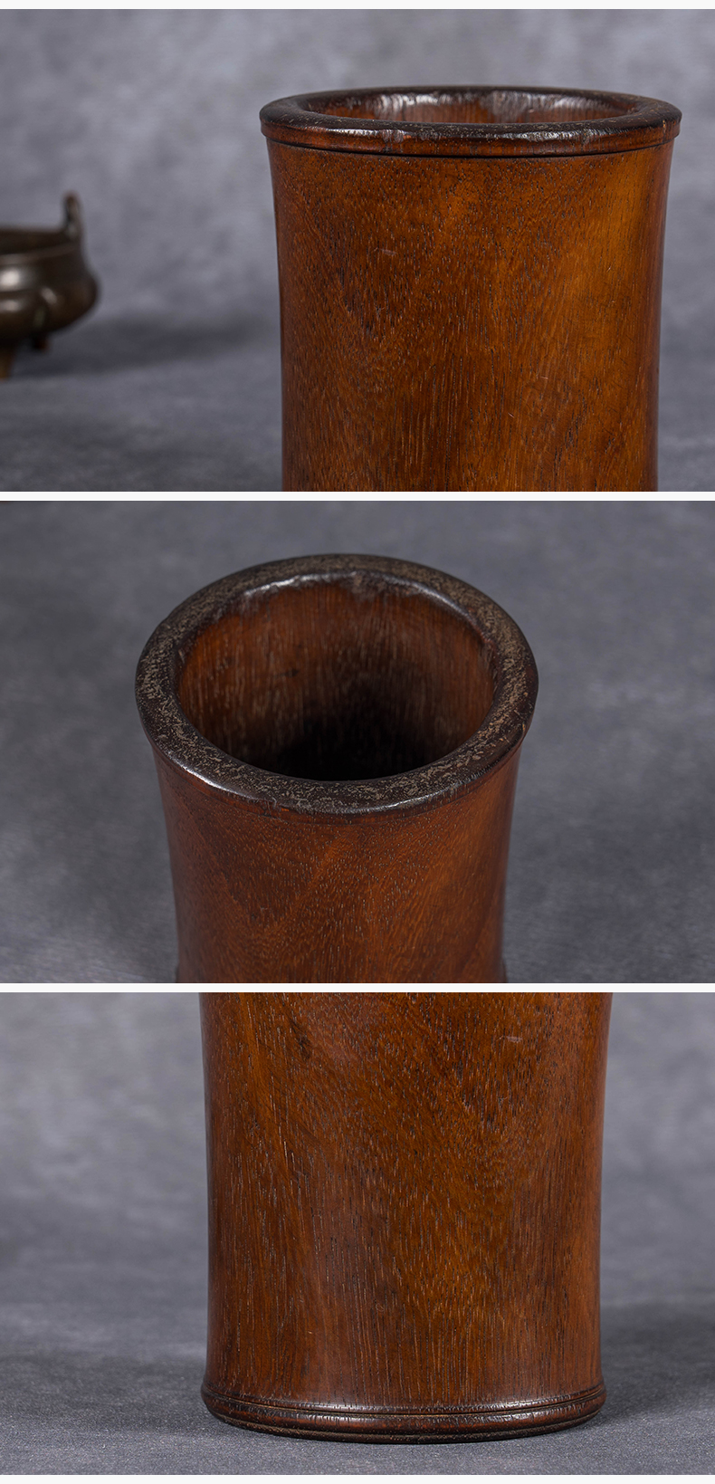 清 红木皮条线束腰笔筒