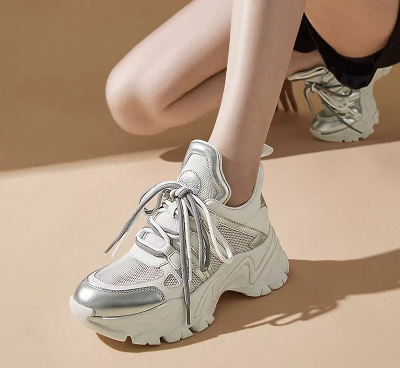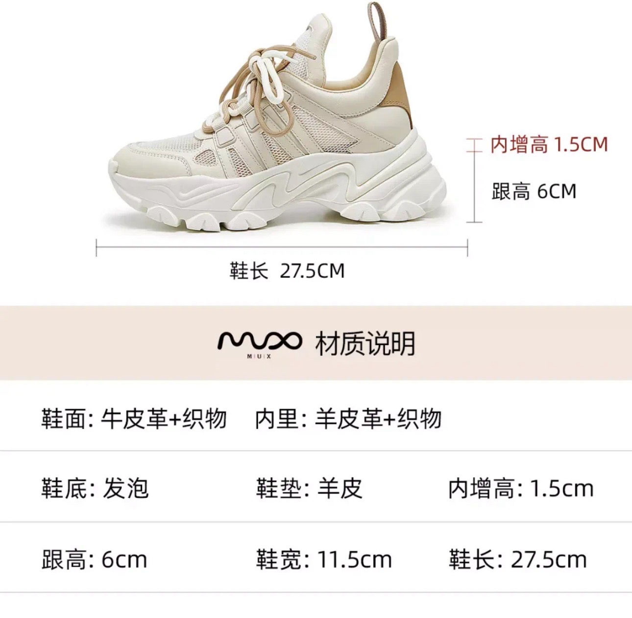 「K」洛诗琳15136设计师款气质超轻显高显瘦真皮老爹休闲运动鞋1110