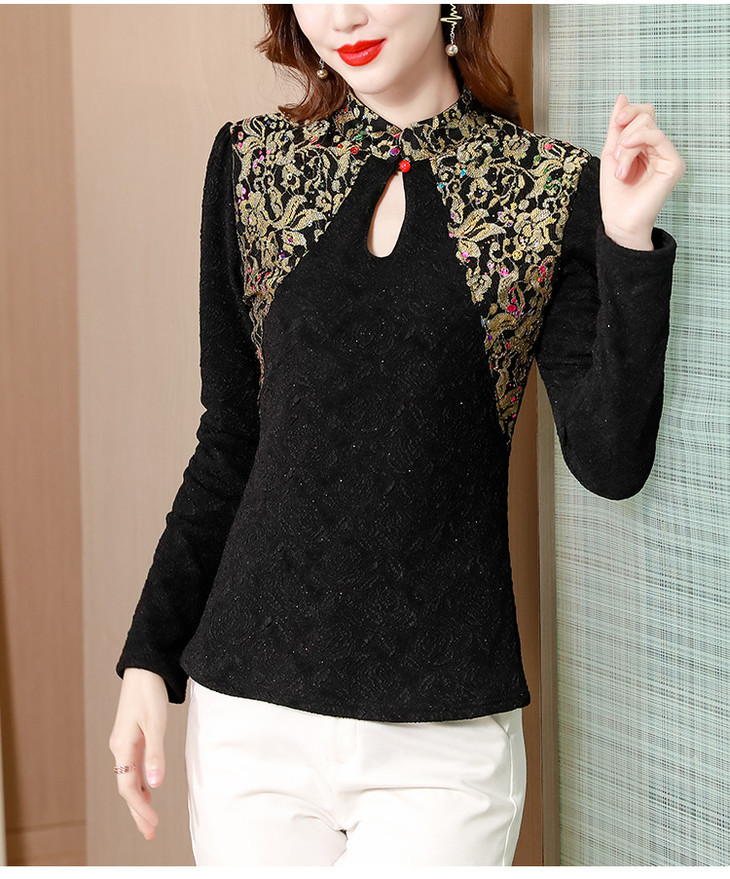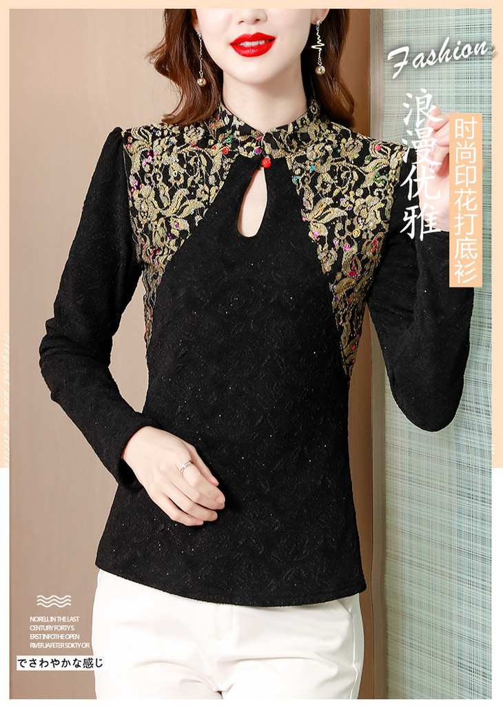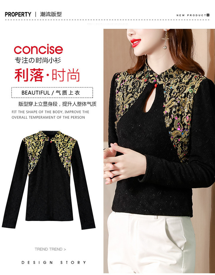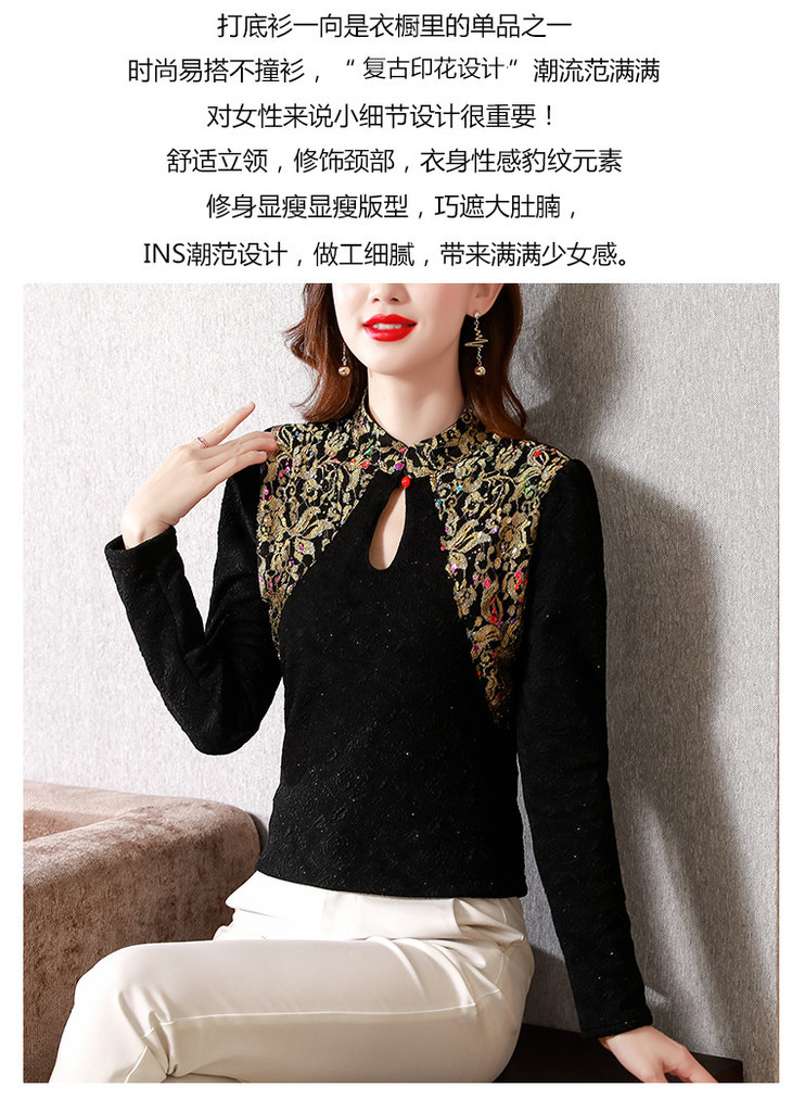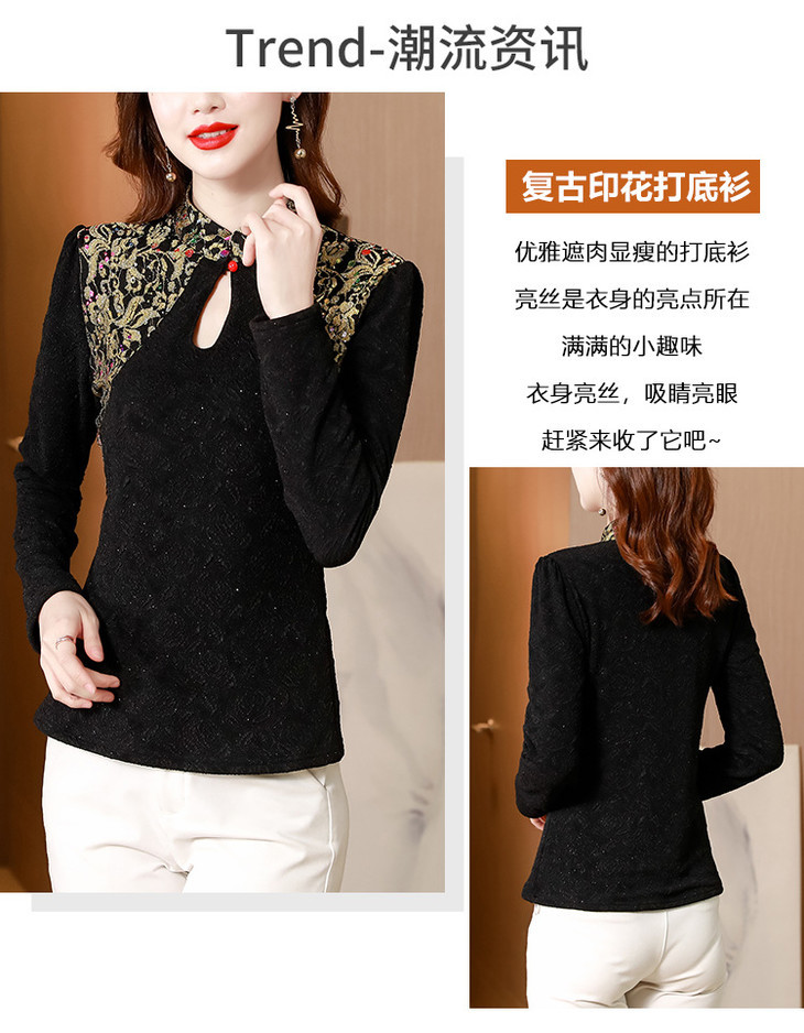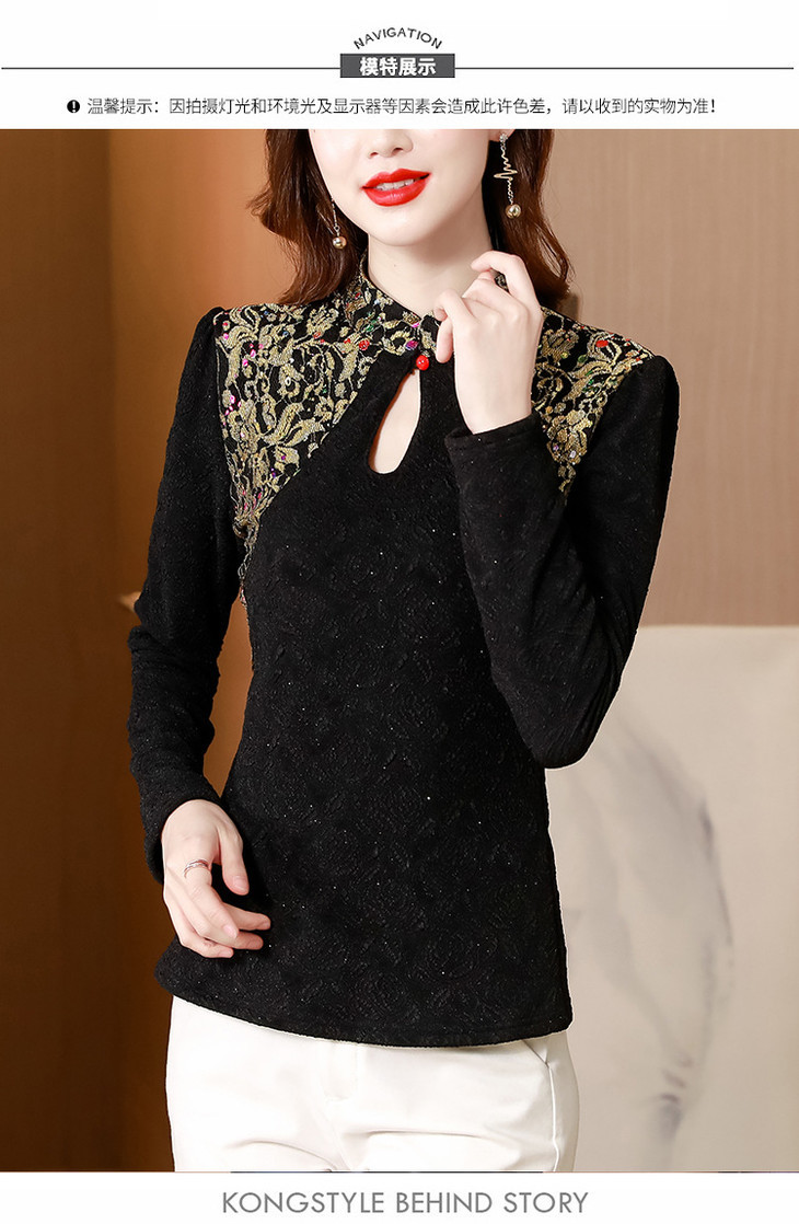 MZ 116088新款镂空内搭长袖刺绣上衣洋气小衫
