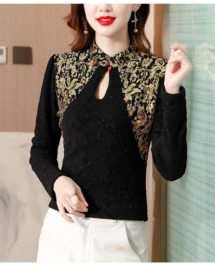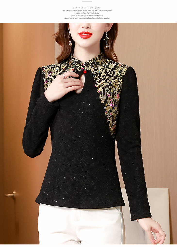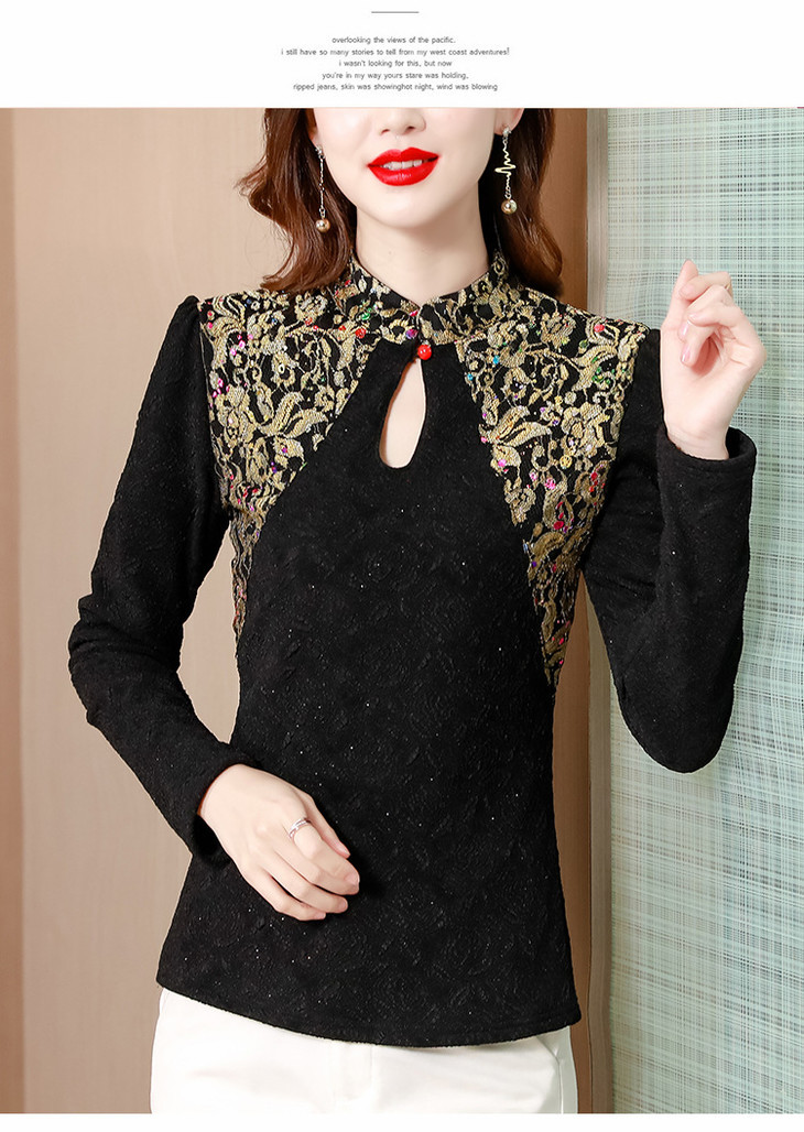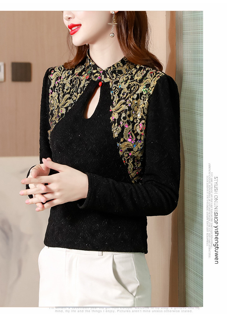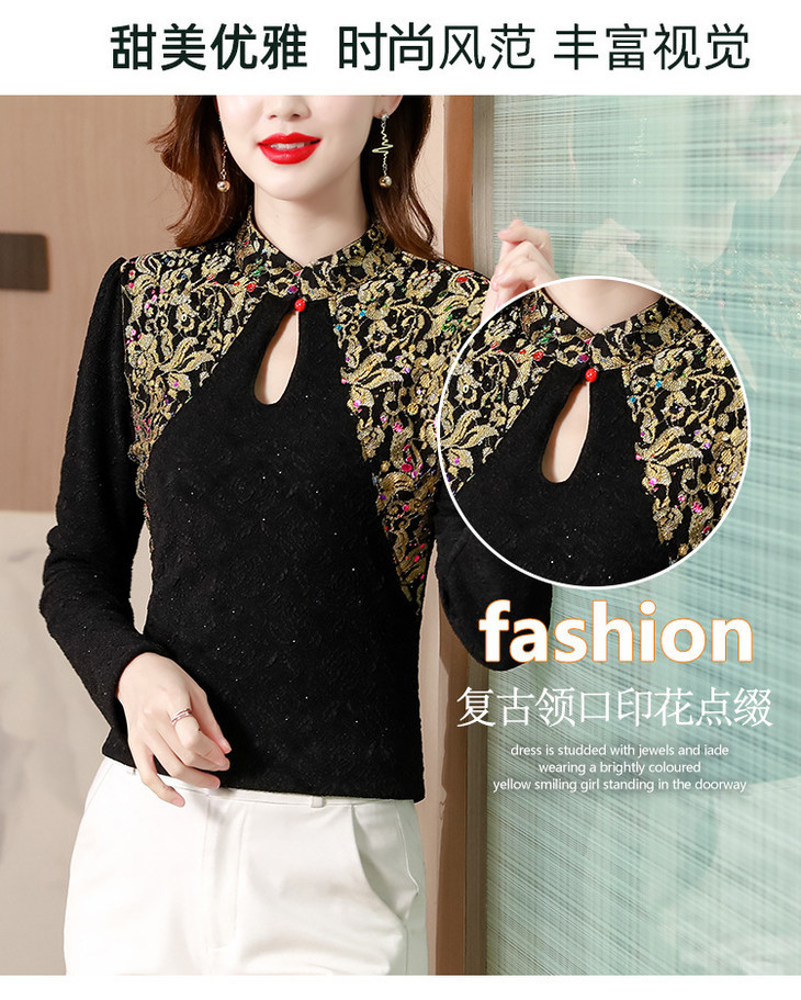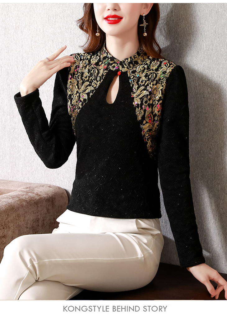 MZ 116088新款镂空内搭长袖刺绣上衣洋气小衫