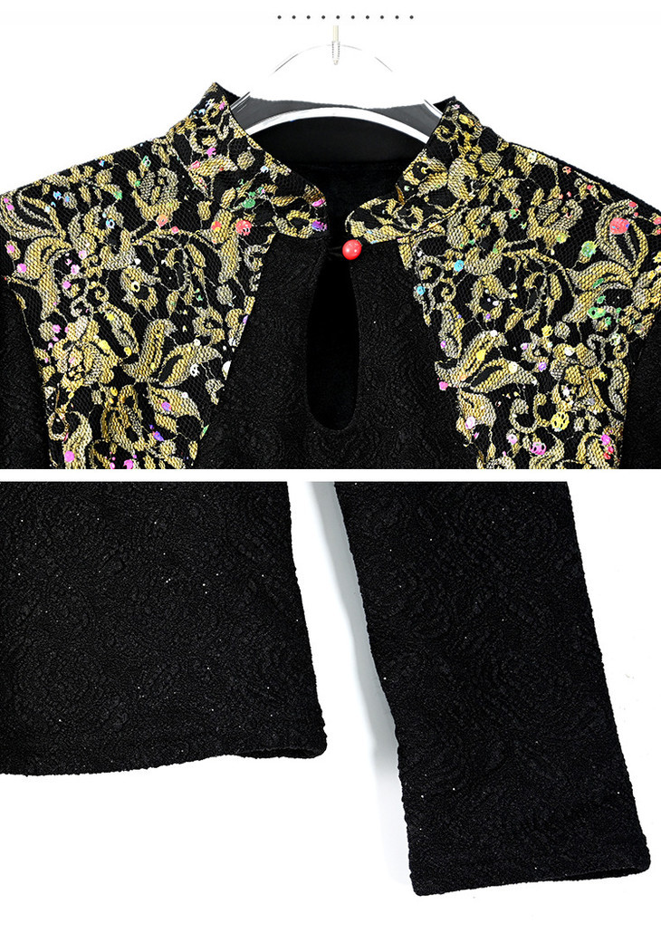 AL YZX5196 冬季单件高领花色通勤蕾丝衫