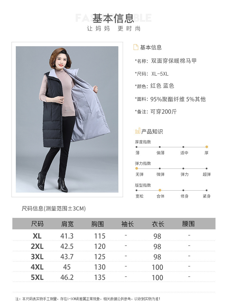 服双面穿马甲女,中长款秋冬背心马夹外套加肥大码 ZQ3366-821